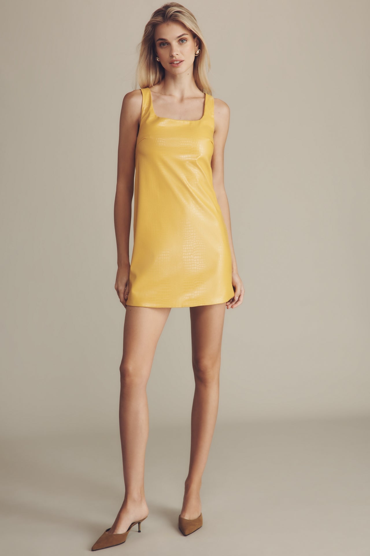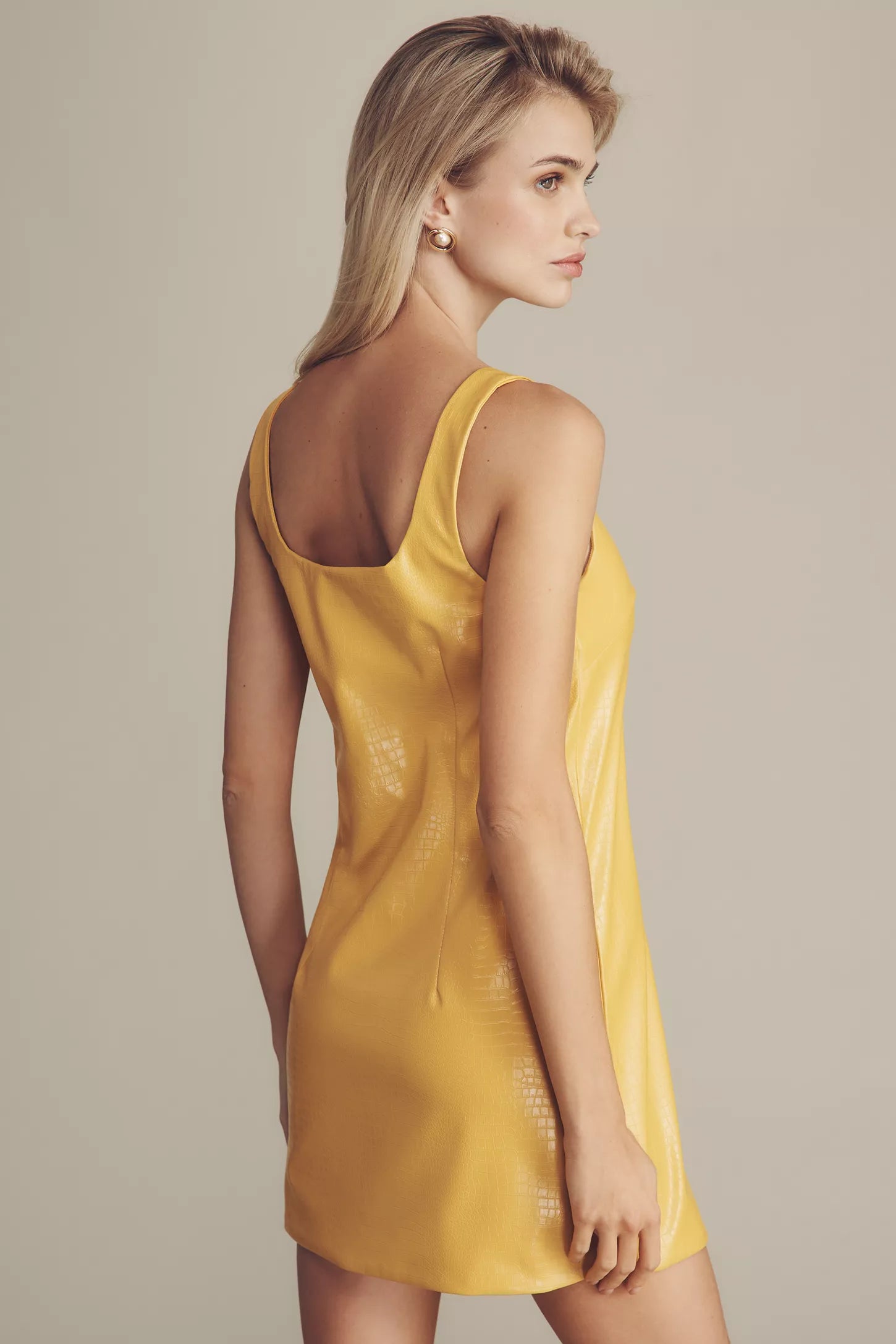 Details: The silhouette offers a sleek, modern edge with its square neckline and short length. A vibrant color and subtle texture adds visual interest. This dress ensures a standout look for a night out or special occasion.