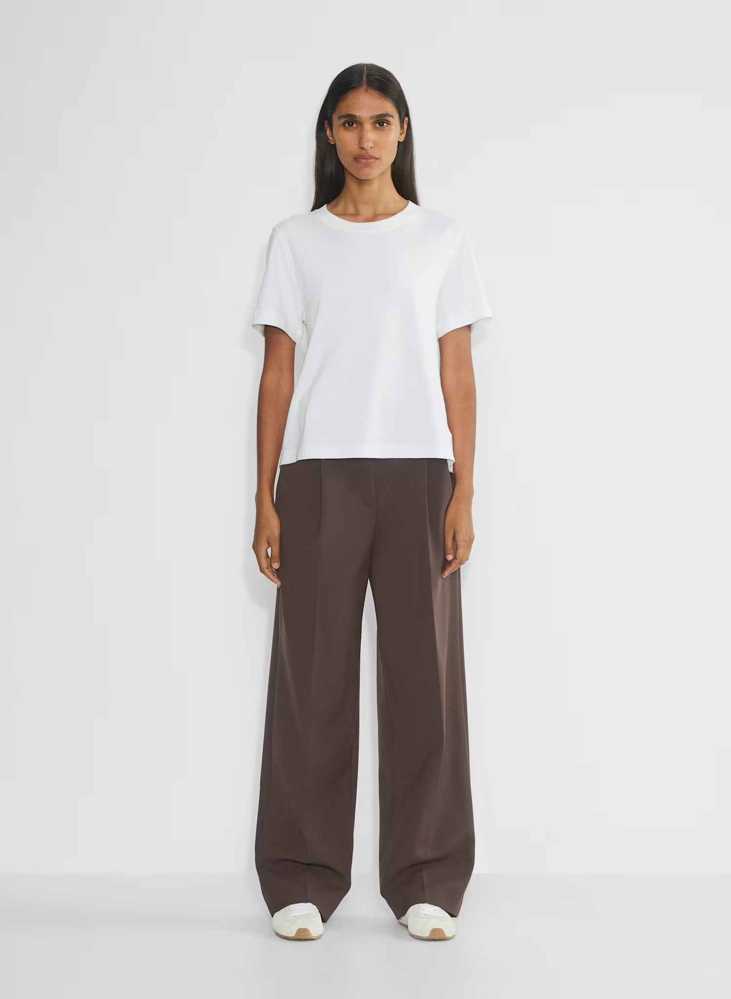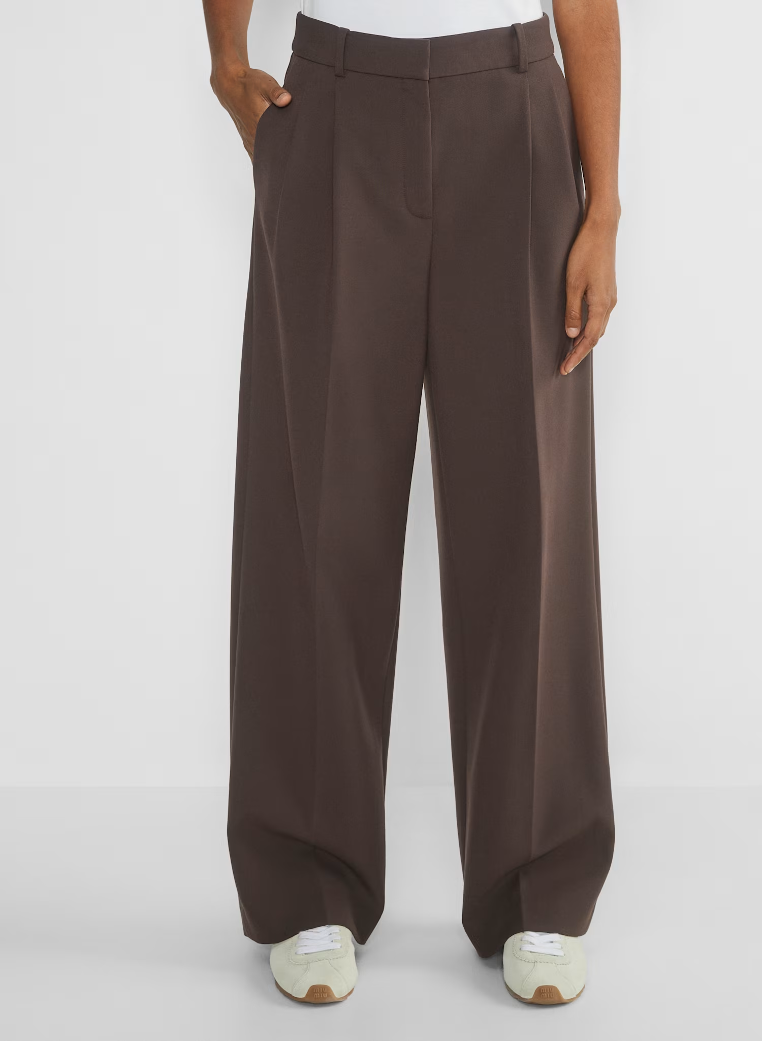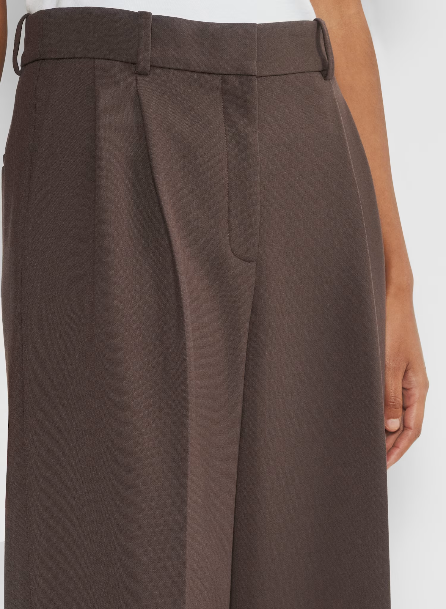 These are high-rise pants with a relaxed fit, a pleated front and slash hand pockets. They’re expertly tailored with (Re)ssential — softly structured stretch fabric that holds its form while you move easy.