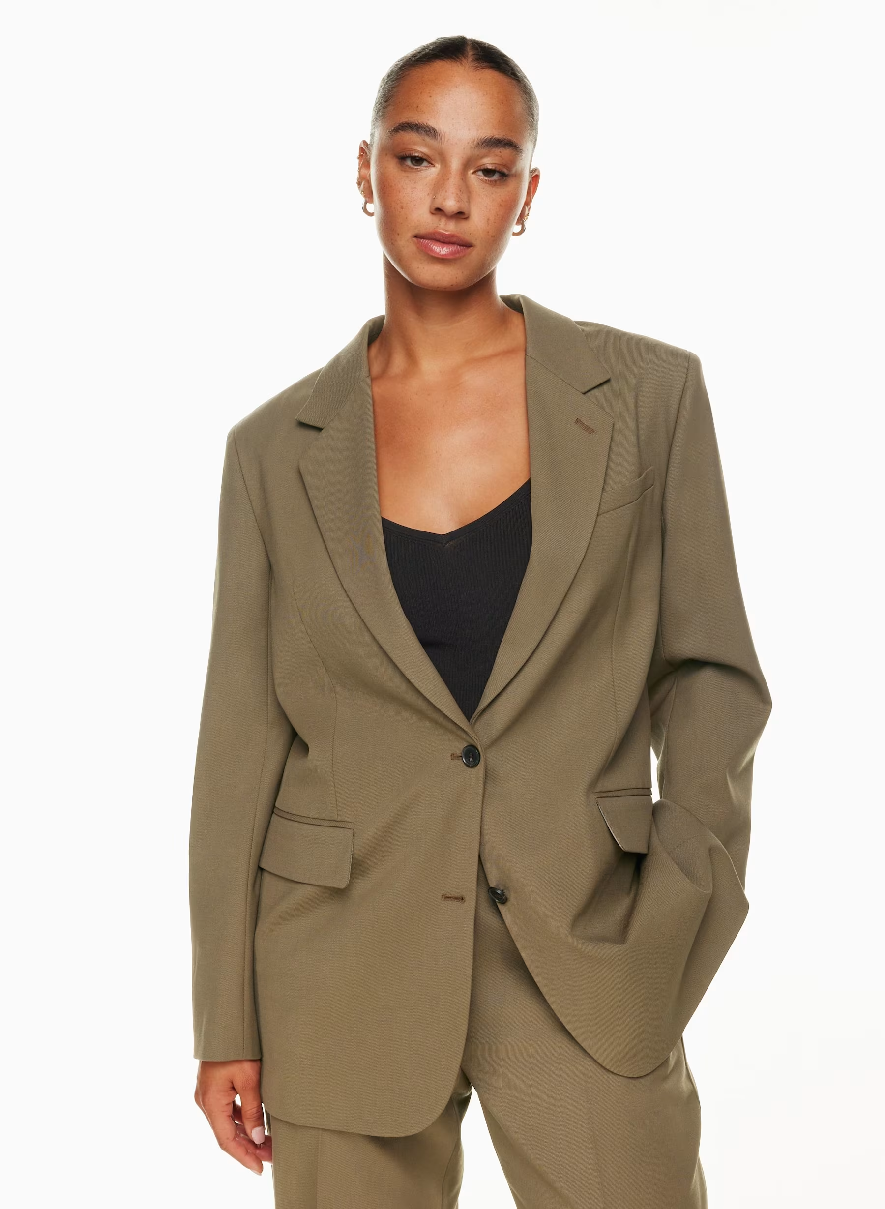 Details: This is a relaxed single-breasted blazer with a notched lapel and darts for shaping. It’s expertly tailored with City Wool — softly structured stretch wool twill for all-season, all-city wearability.