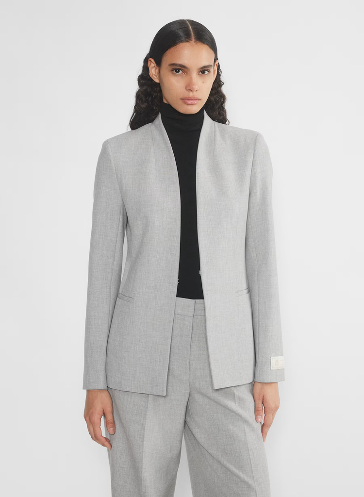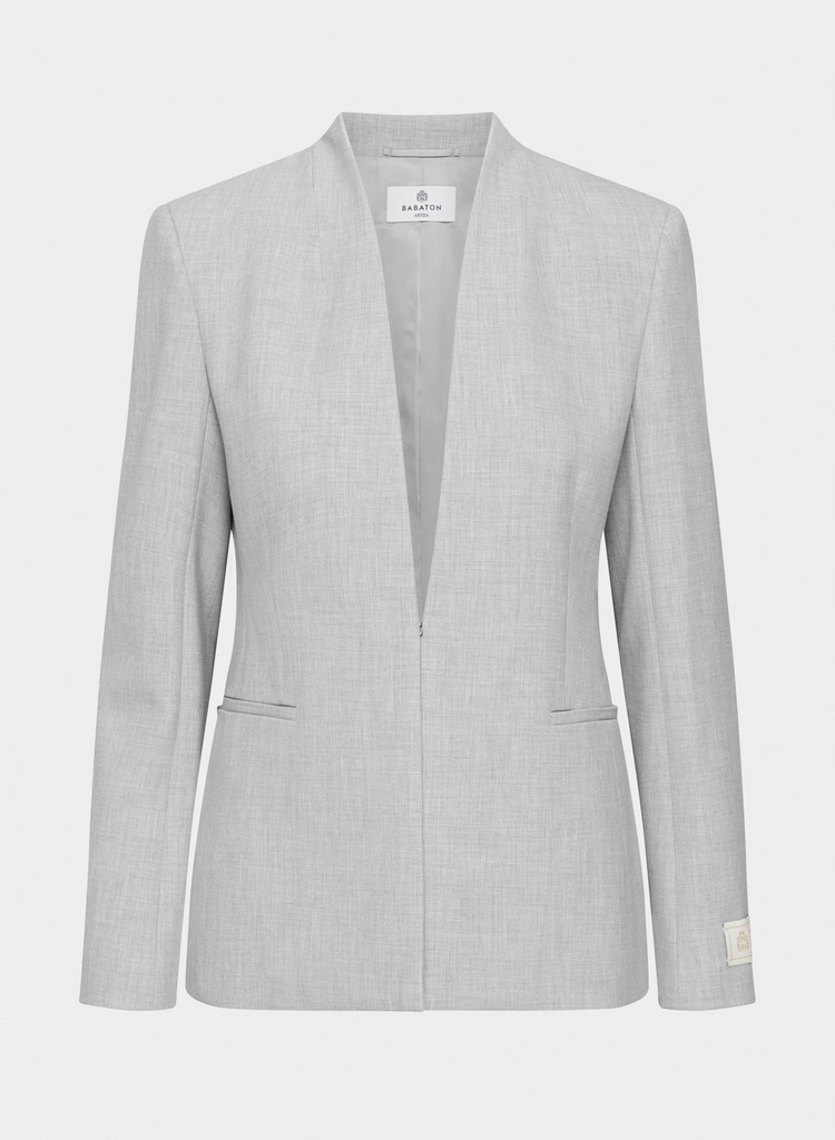 Details: This is a slim-fit blazer with an open front, darted waist and princess seams for shaping. It’s expertly tailored with (Re)ssential — softly structured stretch fabric that holds its form while you move easy. This fabric is sourced from a premier Portuguese mill and made with recycled polyester and LENZING ECOVERO Viscose.
