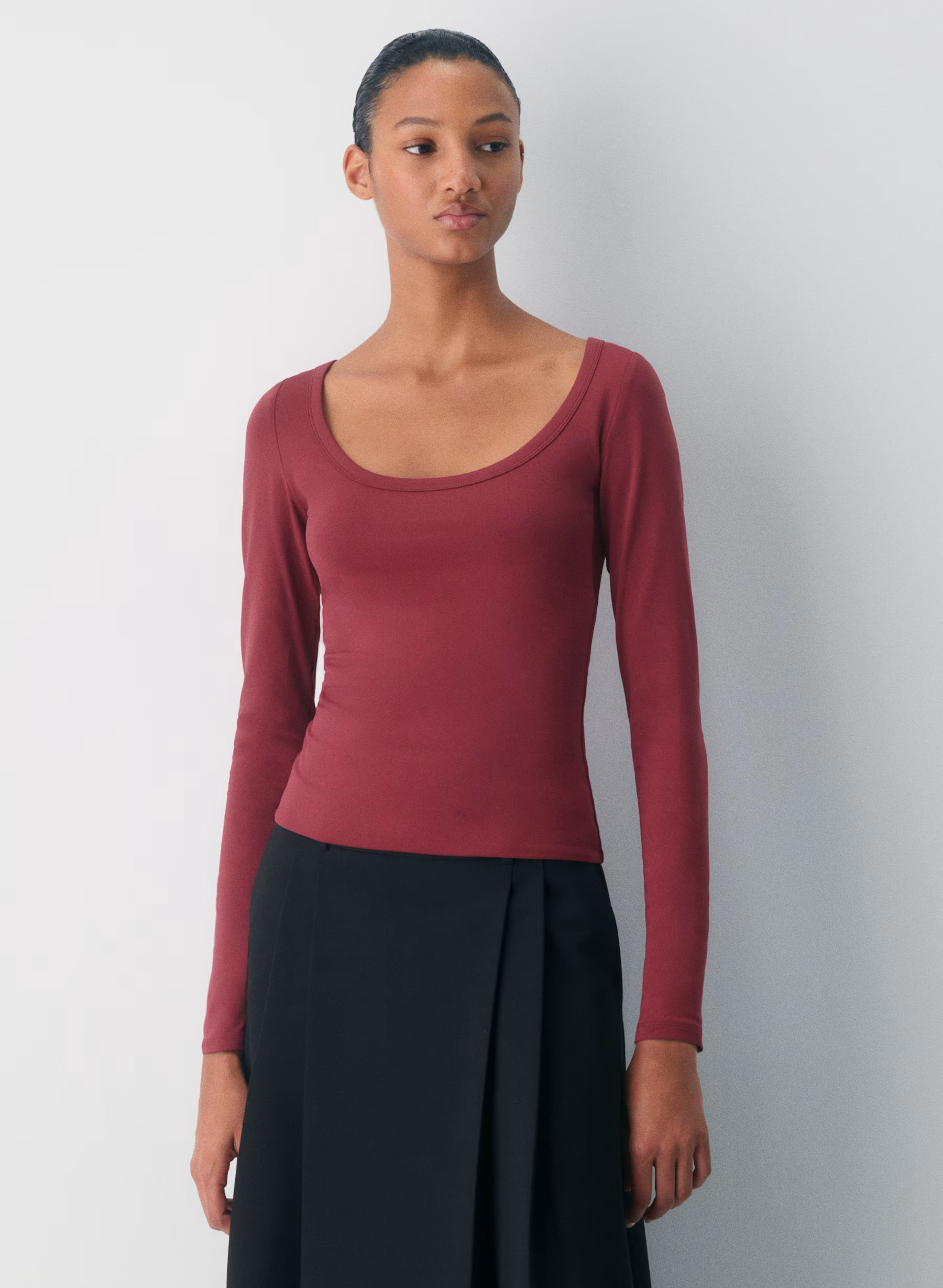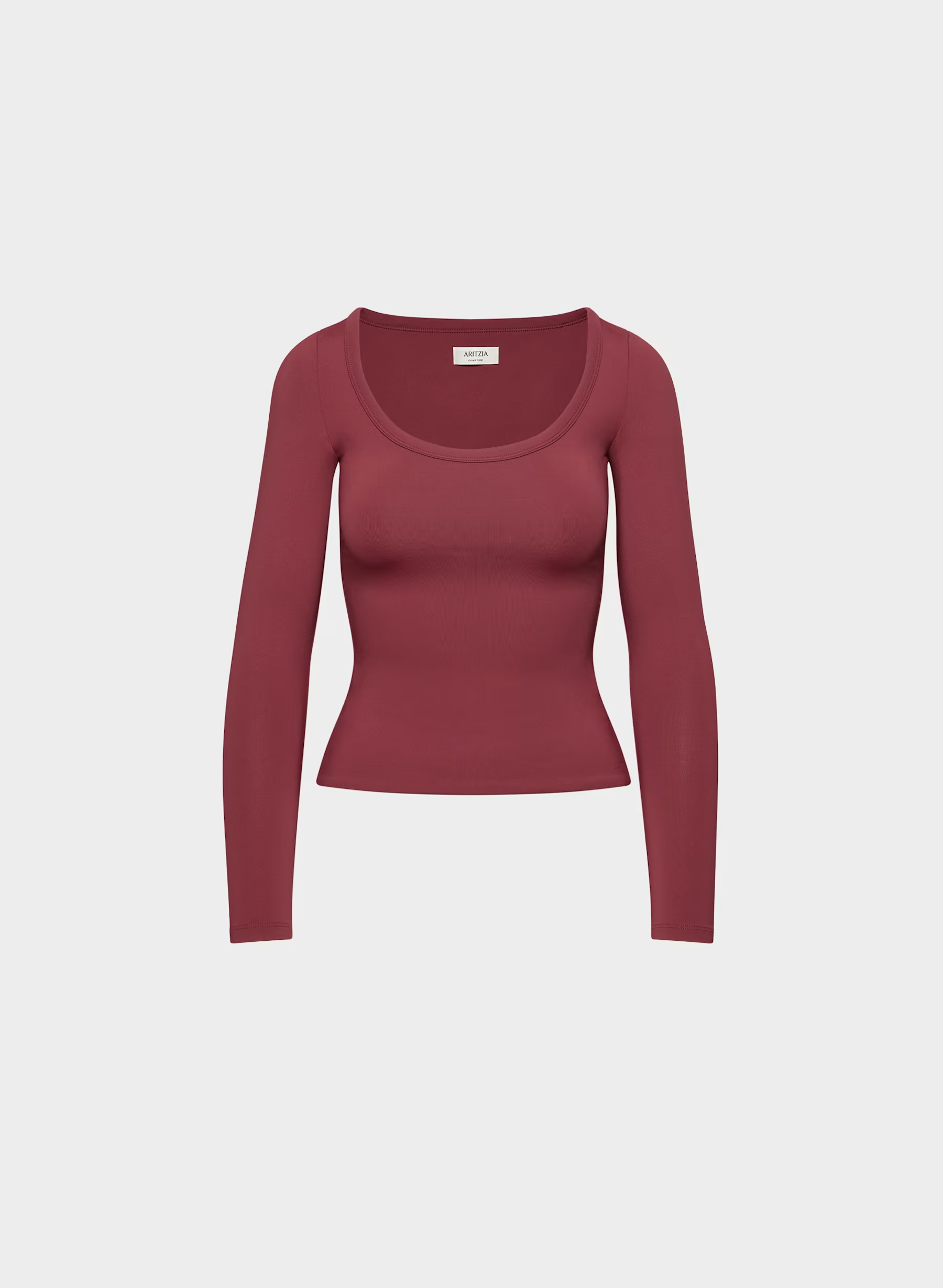Details: This is a scoopneck longsleeve with double-layer fabric for a supportive fit. It’s made with Aritzia’s Original Contour — luxe, ultra-flattering fabric coveted for its smoothing effect and second-skin feel. Nothing more essential.