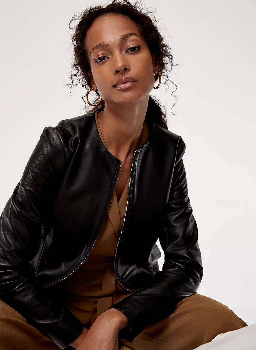 Details: Supple leather, minimalist lines Taking a more minimalist approach to the leather jacket, the Jett is designed with clean lines and streamlined pockets. It's cut from the world's finest sheepskin leather: supple, strong and made to last a lifetime. Over time, the leather will soften and develop a lived-in feel β just like a true classic. The body is lined in a breathable cotton blend for comfort.