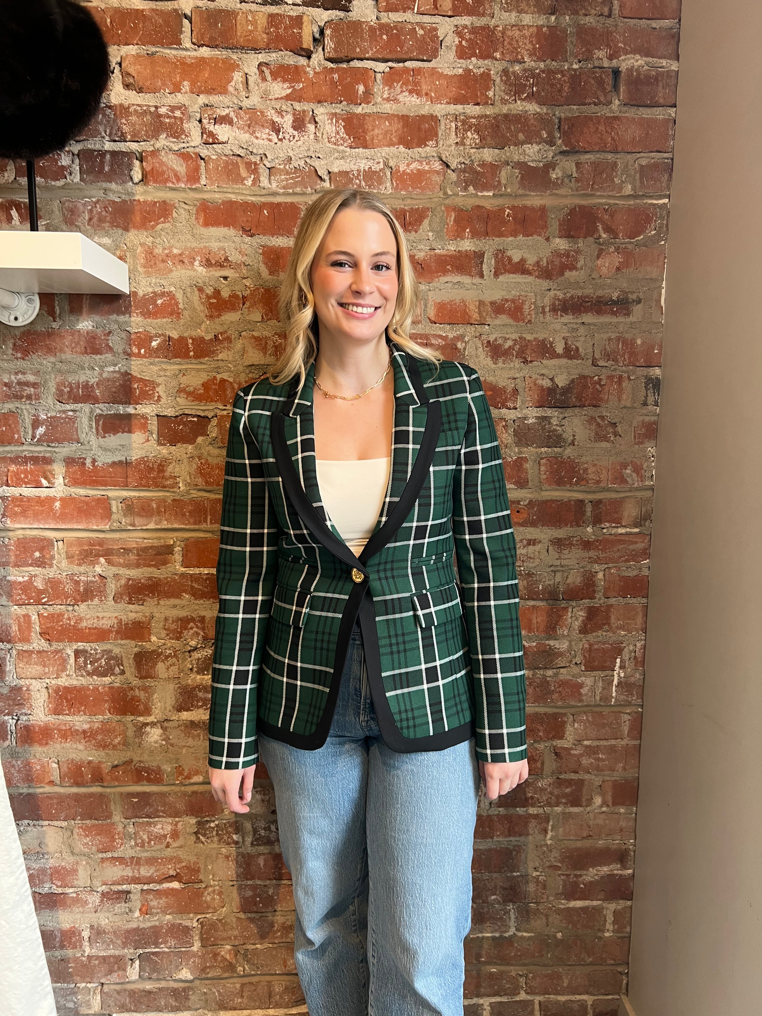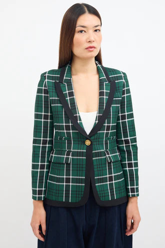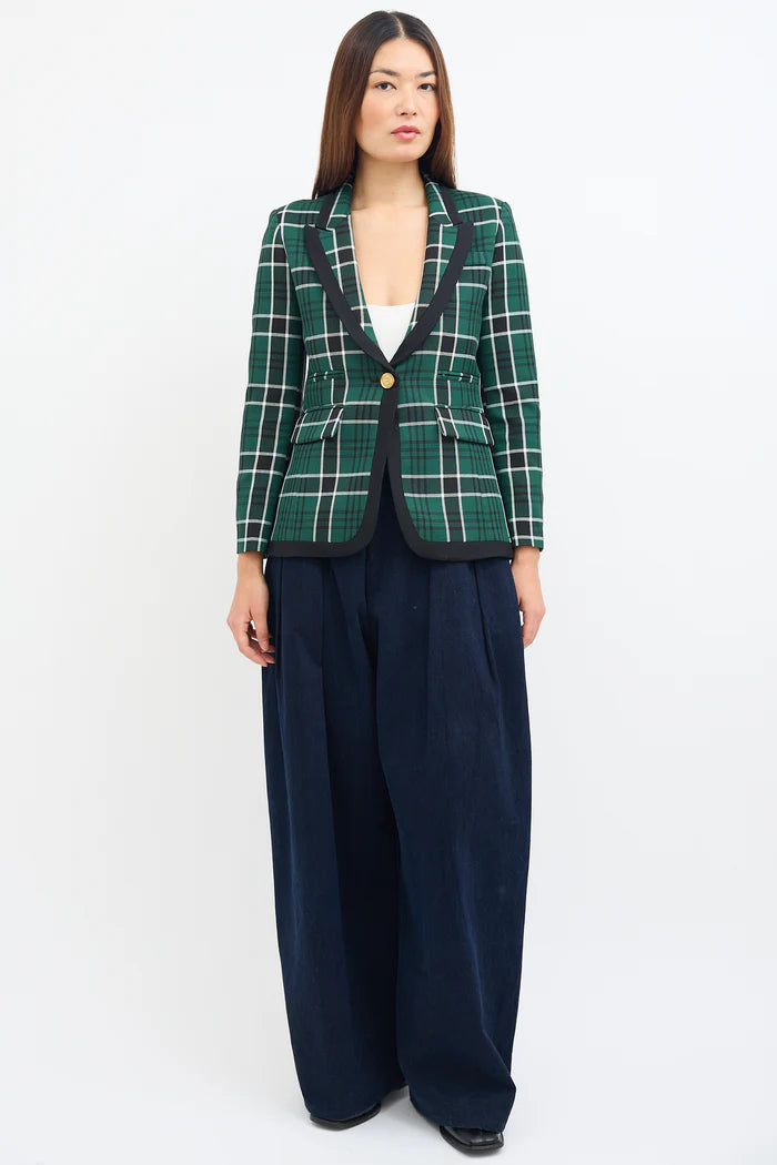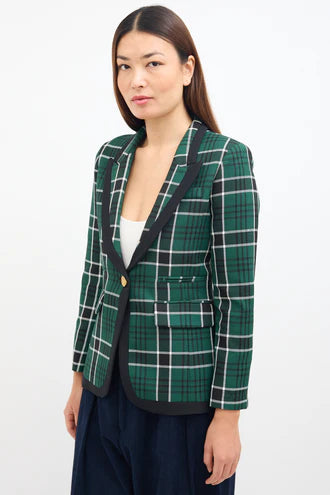 (XS) Check Taped Peaked Lapel Blazer