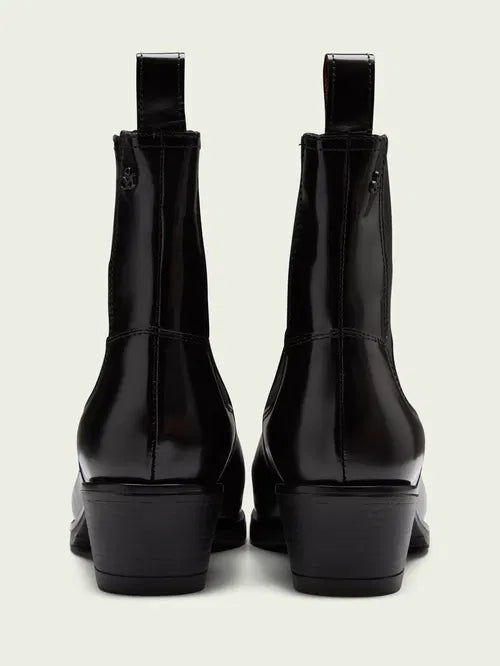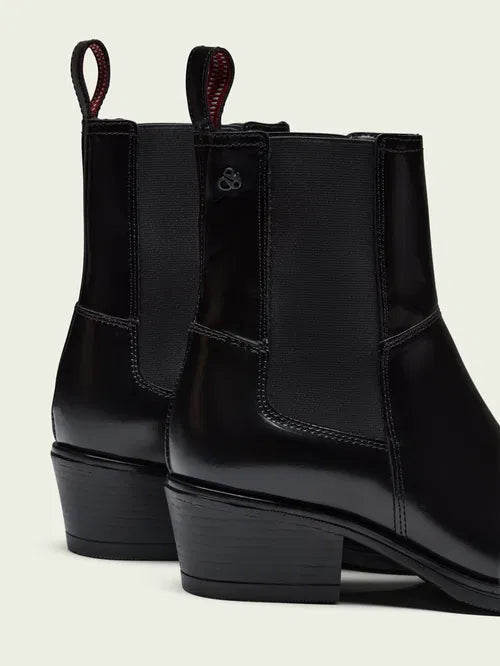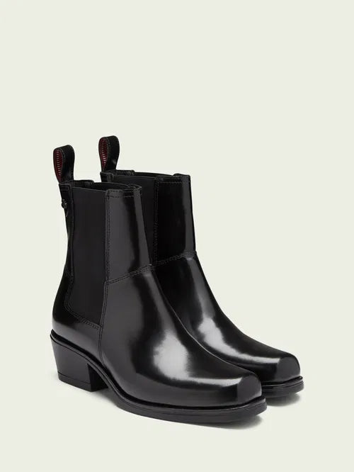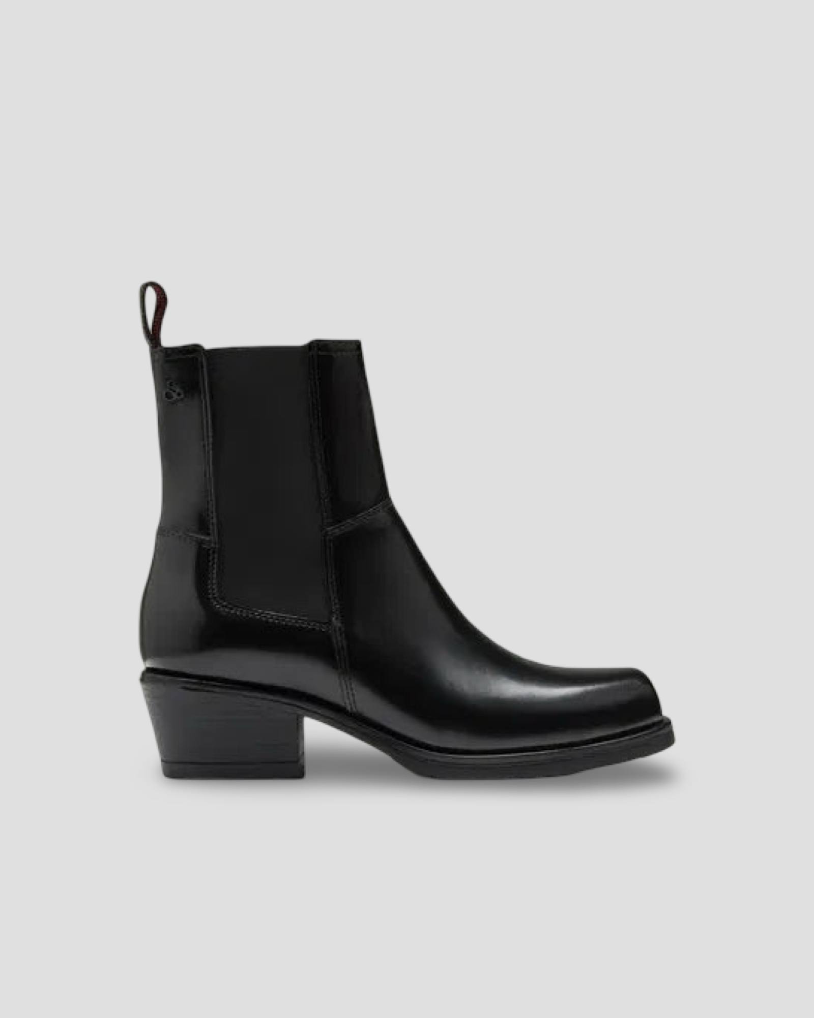 Details: The Sheila is an innovative Chelsea boot with narrow shaft and fashionable square-toe. The body is made of certified leather and has elastic inserts with a pull-on loop for easy entry.