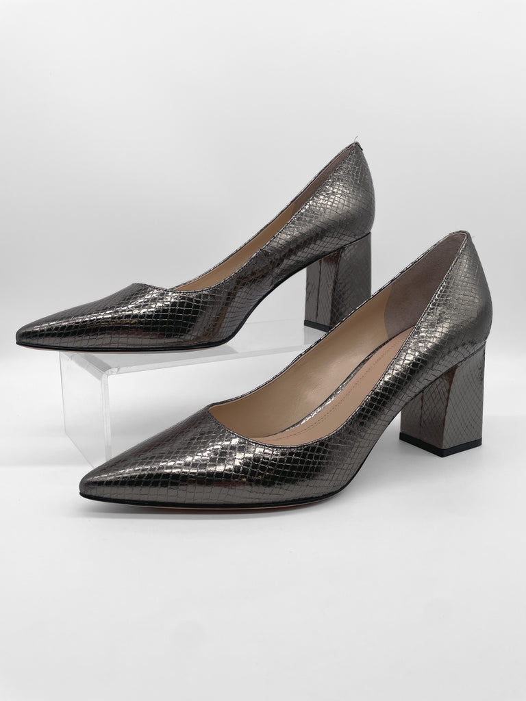 Details: Clean lines highlight the timeless appeal of a classic pointy-toe pump lifted by an on-trend, structural block heel.