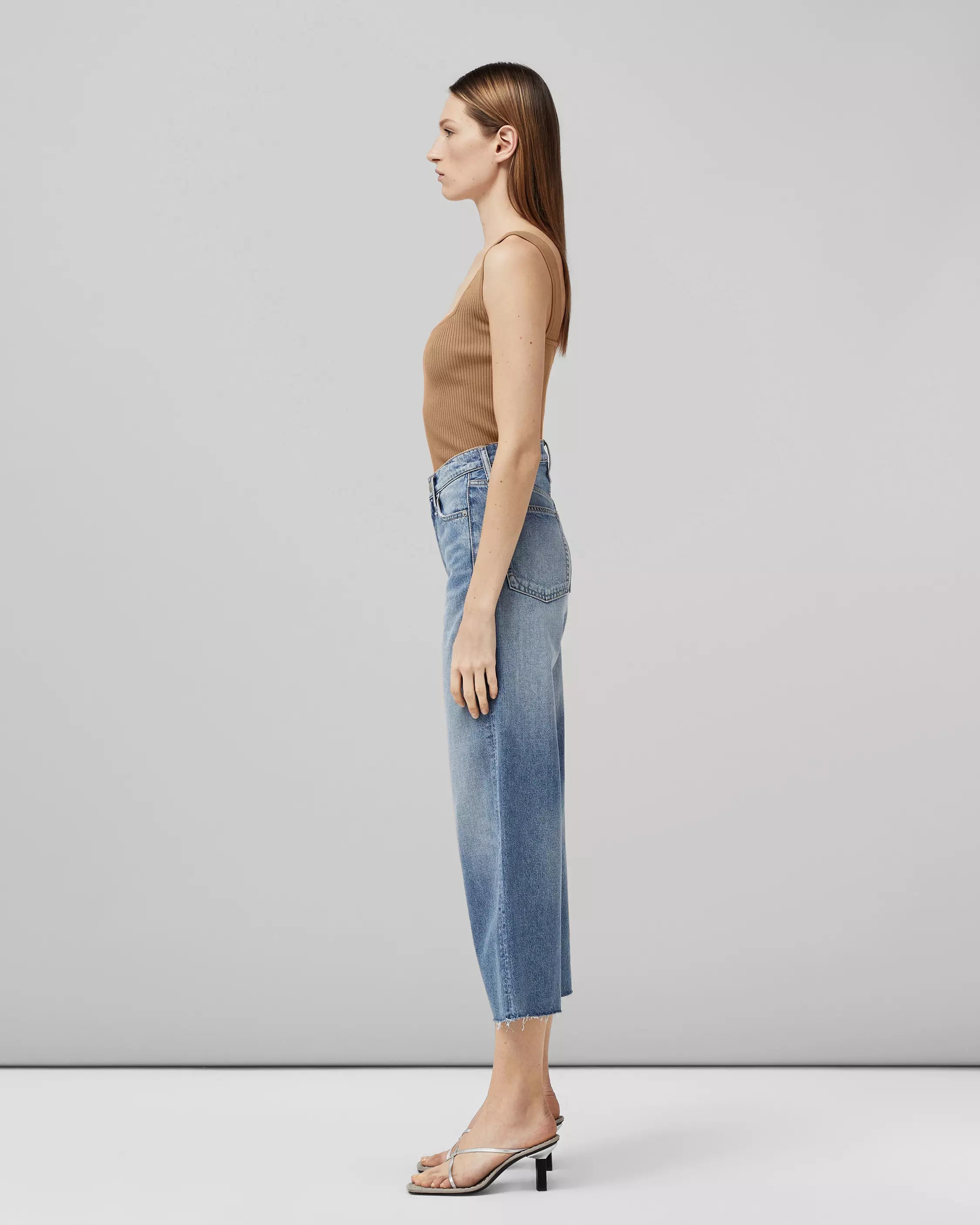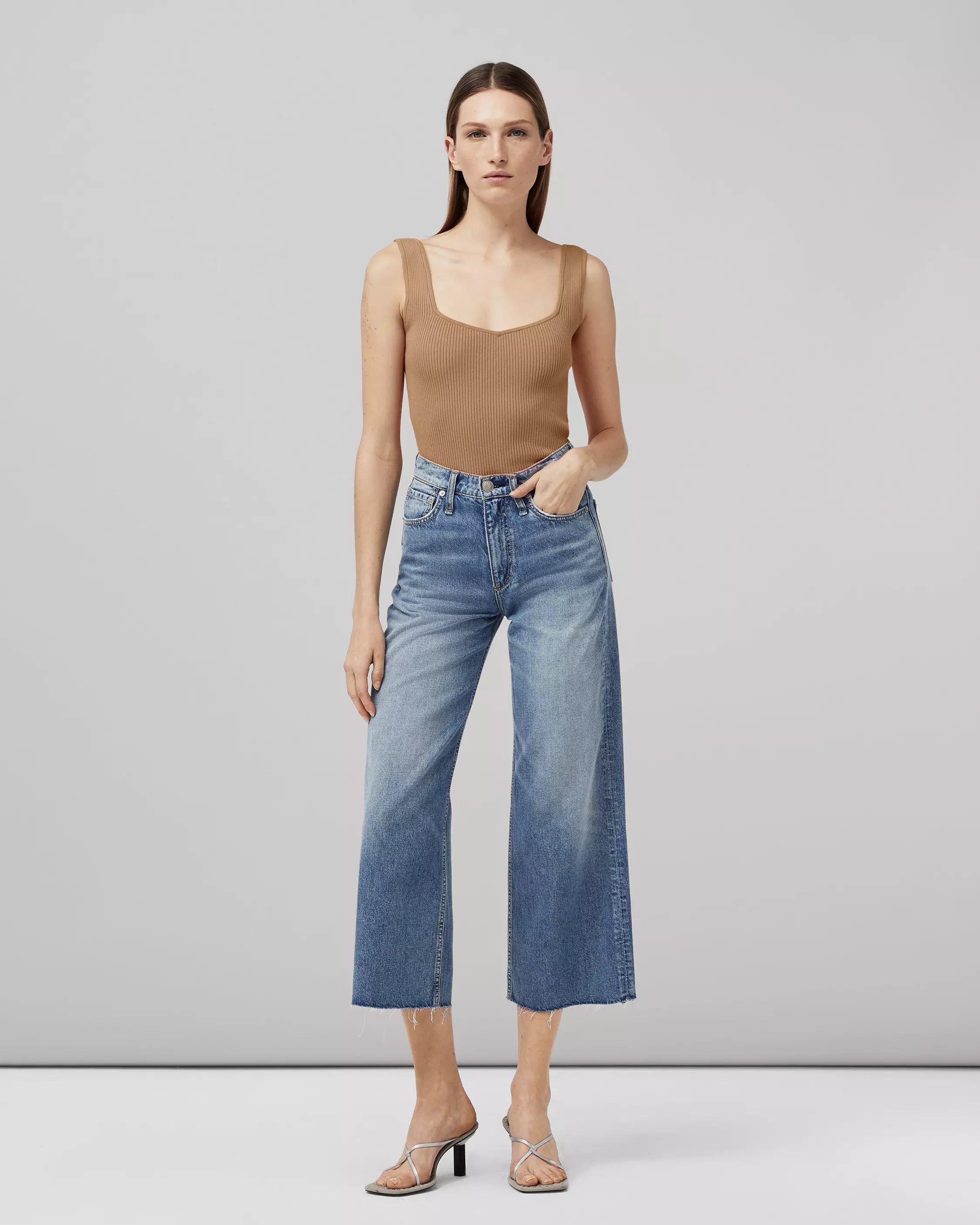 Details: Andi is a wide-leg, high-rise jean that hits the ankle and is slim through the hip. Made from a rigid fabric.