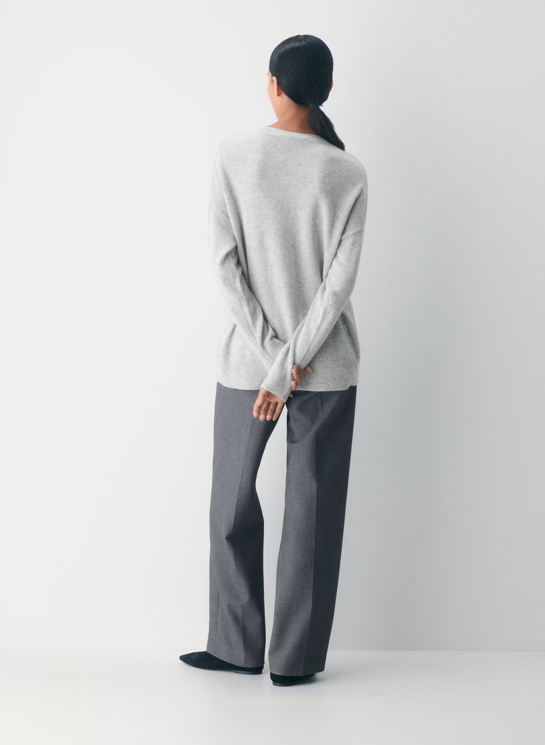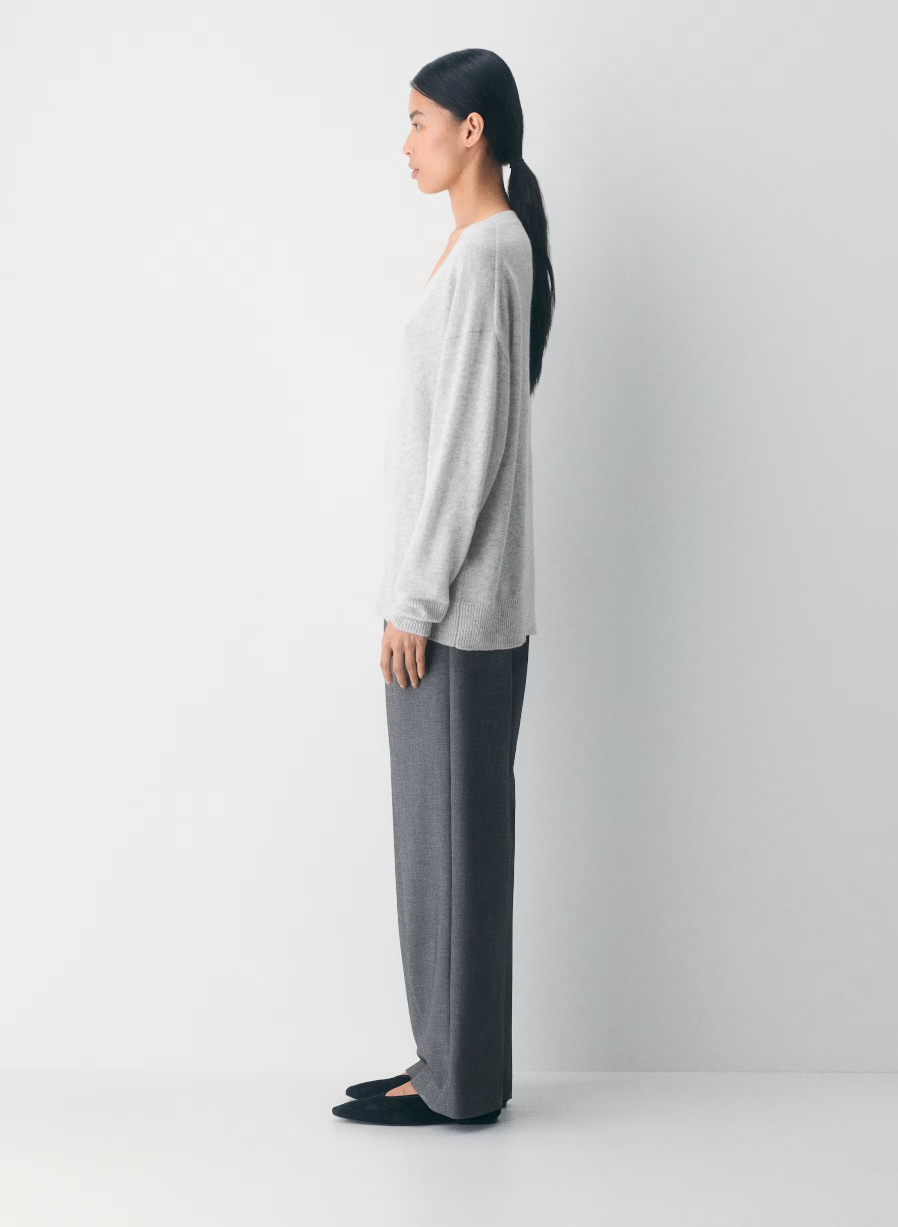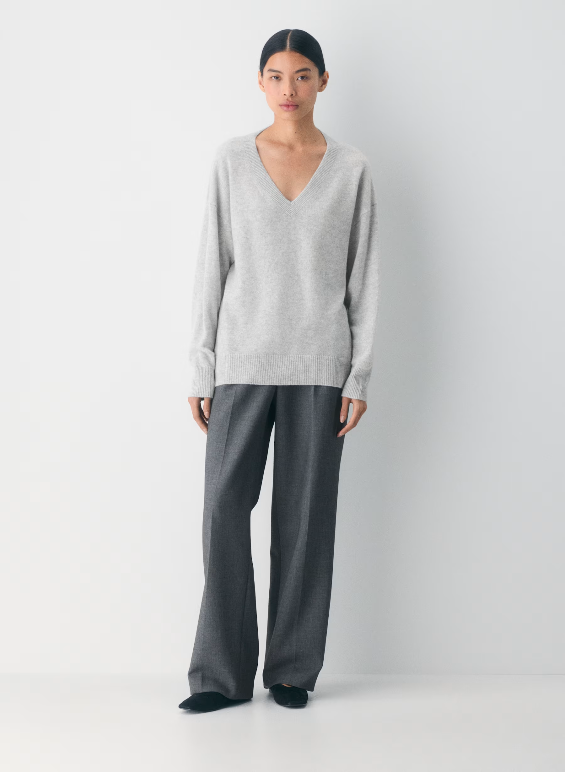 Details: This is a fully fashioned V-neck sweater with a relaxed fit. It’s knit with Aritzia’s Feather Cashmere — feathery-light 100% cashmere yarn coveted for its signature softness. It’s loosely knit to achieve an airy, all-season feel. The finest available. This cashmere is verified to The Good Cashmere Standard. This version is constructed with a Jersey stitch for a soft drape and a smooth, flat feel.