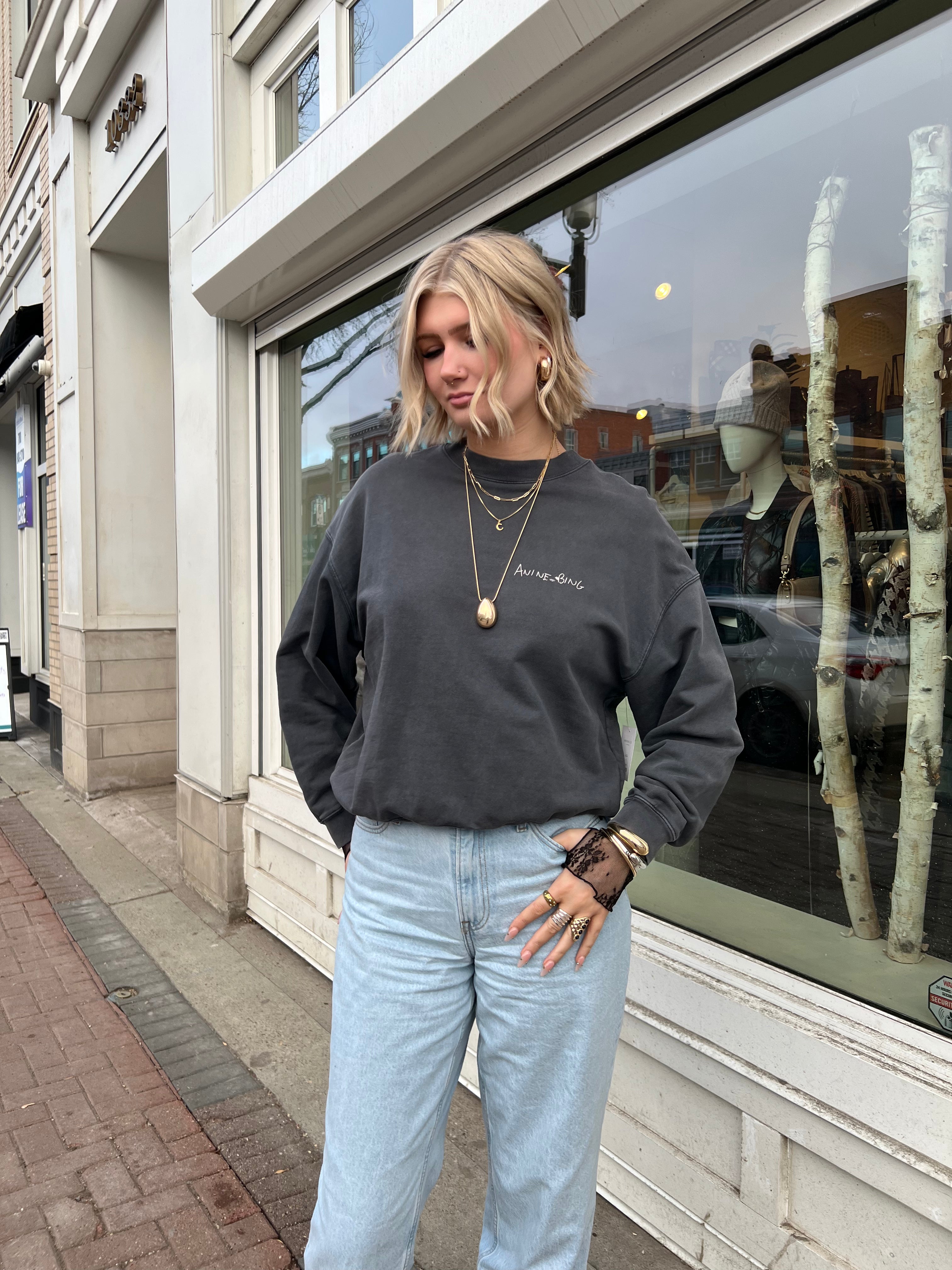 The Jaci Sweatshirt is cut for an oversized, relaxed fit with a slightly wider body and sleeves.