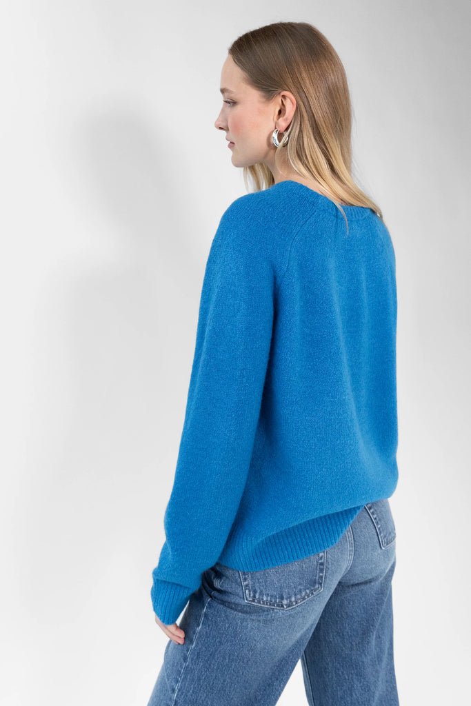 Details: This crewneck sweater is spun in a relaxed fit in an imperial blue. A lush blue to add a pop of colour to your looks this season. Style yours with any trousers to over a satin slip dress on a special occasion.