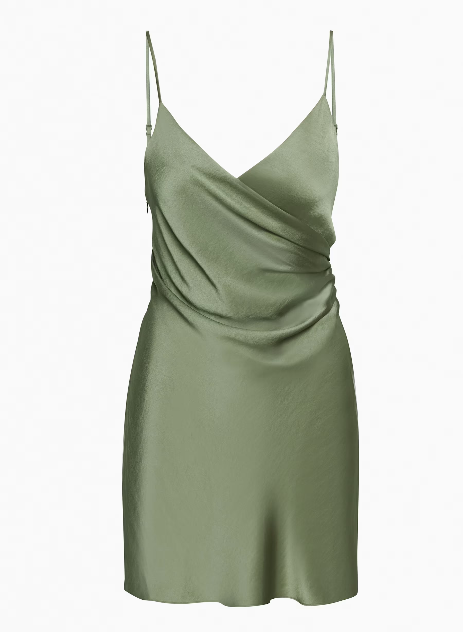 Details: This is a gathered mini dress with adjustable straps and faux wrap construction. It's made from Effortless Satin — drapey, lightweight Japanese satin with a glossy look and feel.