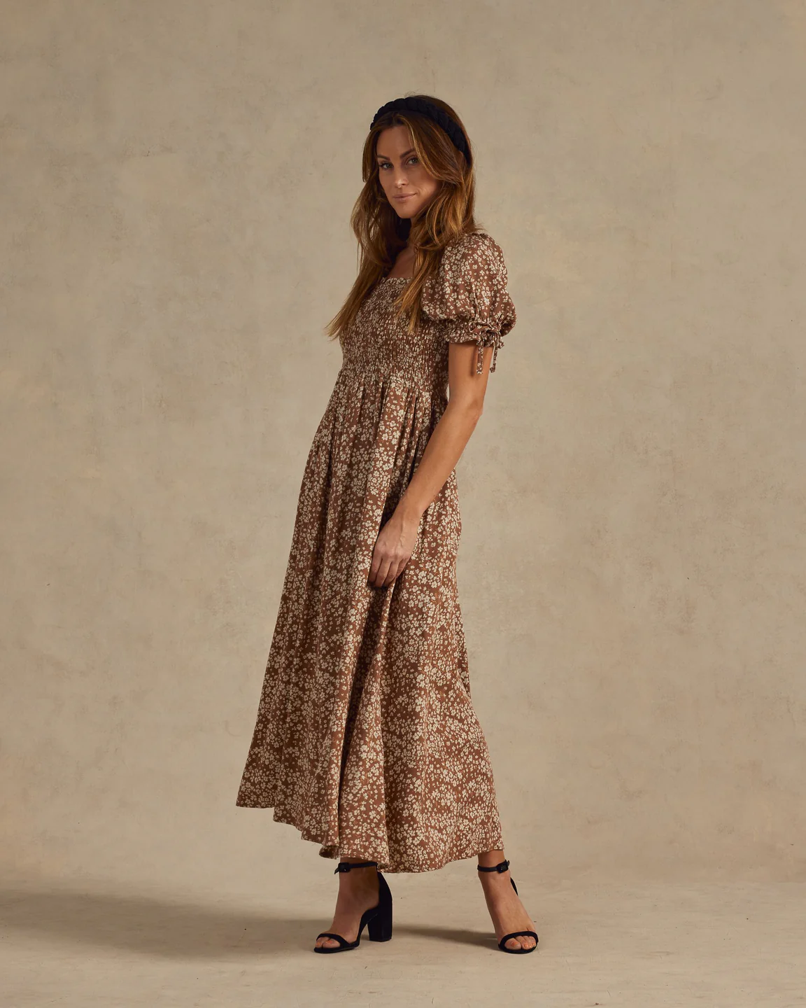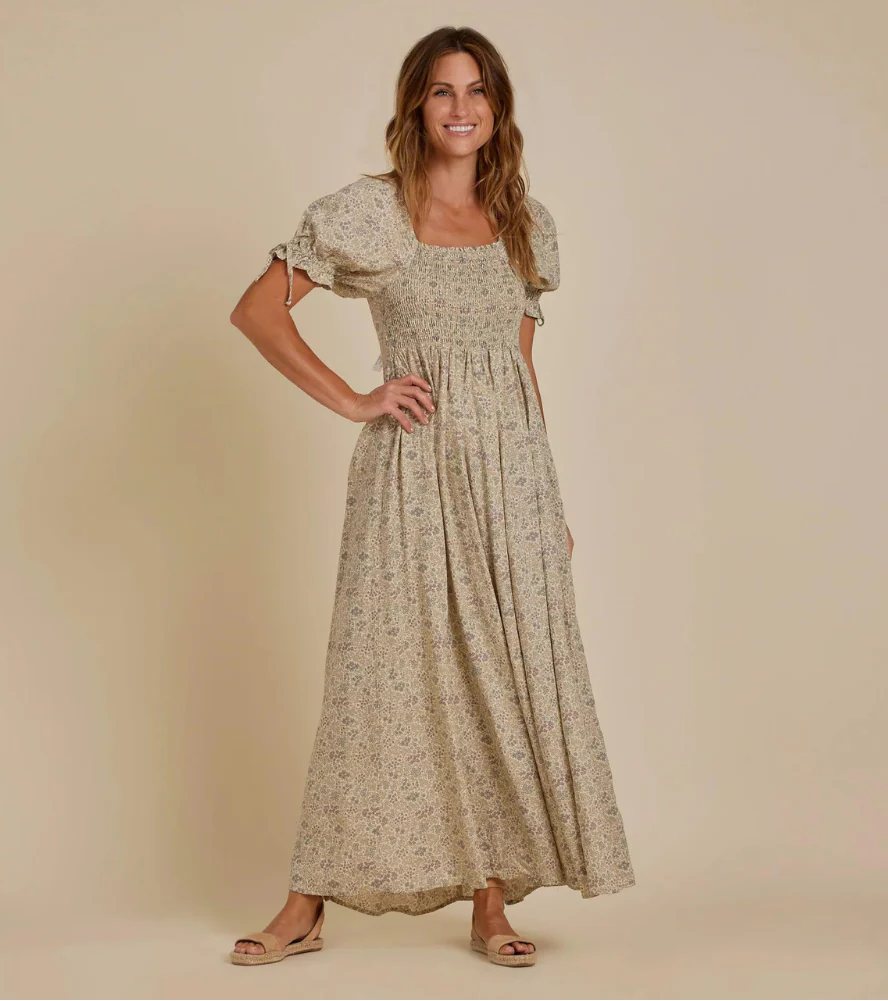 Details: Rylee & Cru's Womens collections are underscored by a breezy bohemian spirit. The Dallas Dress features a smocked bodice, puff sleeves with fixed ties, and a full skirt.