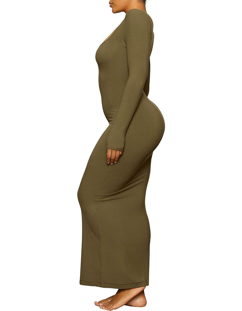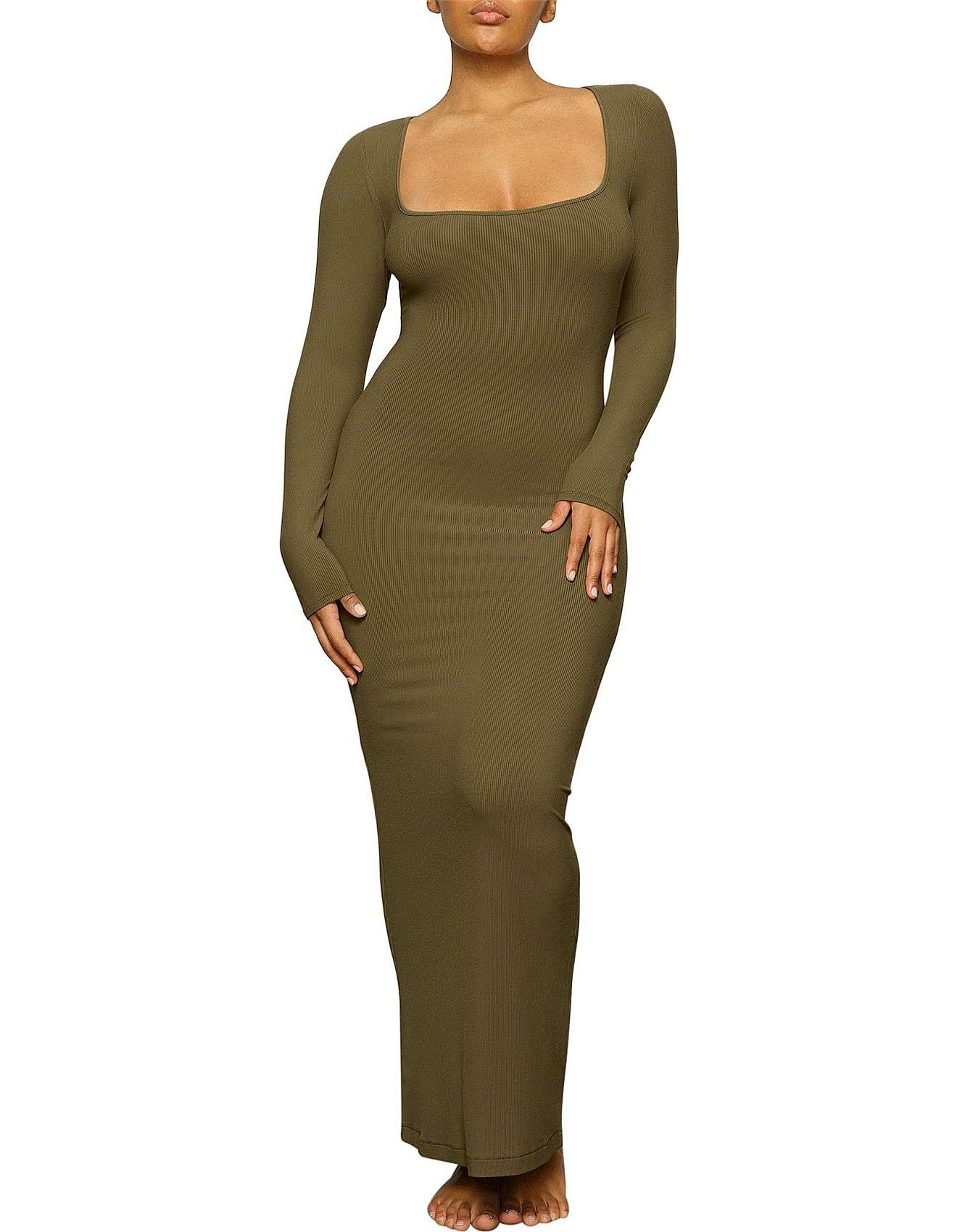 Details: The iconic Soft Lounge dress you know and love, but now with sleeves. Embrace every single one of your curves with its slinky silhouette, ultra-flattering square neckline, and drapey long slip. Seasonal update to their most- coveted Soft Lounge Slip Dress, Designed with Long Sleeves for fall-time easy styling, Front square neckline, Maxi length, Comfortable, body-hugging fit, Ribbed fabric detail.