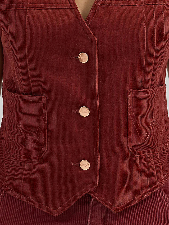 Details: Cozy, cool, and packed with texture, this Femme Corduroy Vest will become your favourite fall look. It features a slim fit that looks strong on its own or layered over tees on cooler days. This versatile statement piece is made complete with two lower patch pockets and branded hardware for a touch of Wrangler® authenticity.