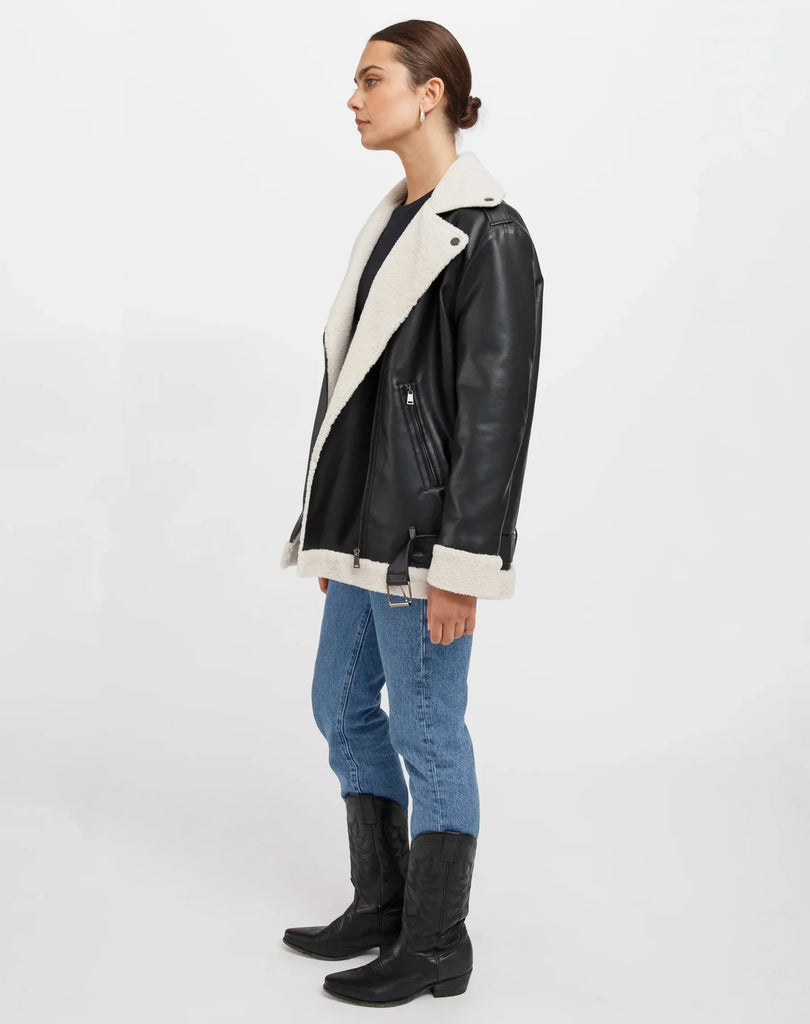 (L/XL) Florence Shearling Vegan Leather Jacket