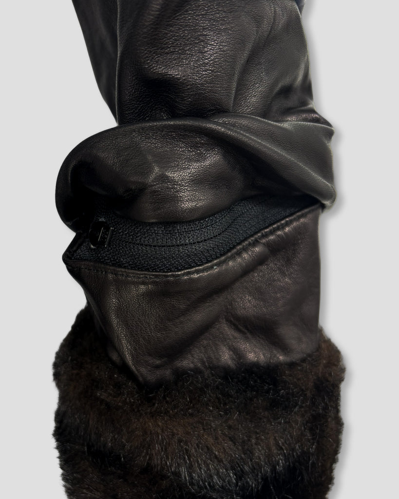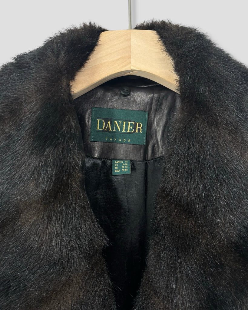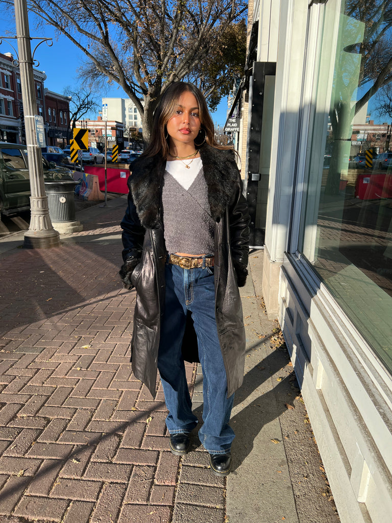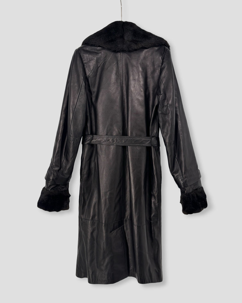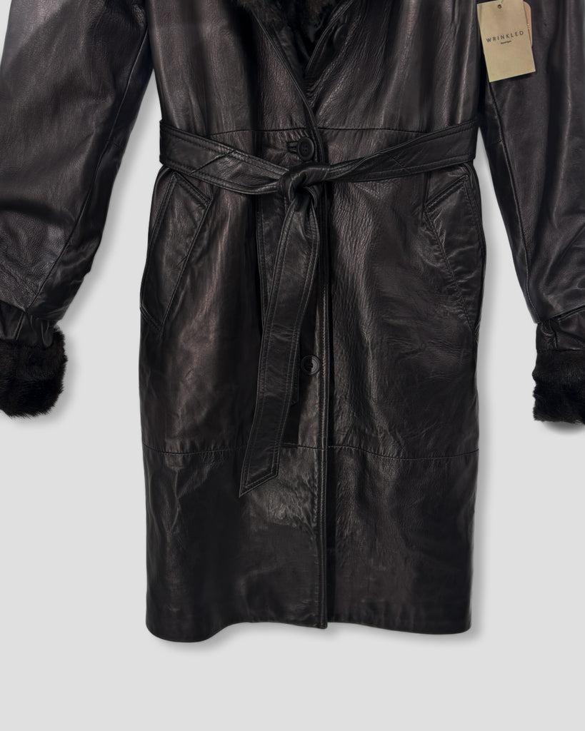 (XS) Vintage Belted Leather Trench w/ Fur Trim