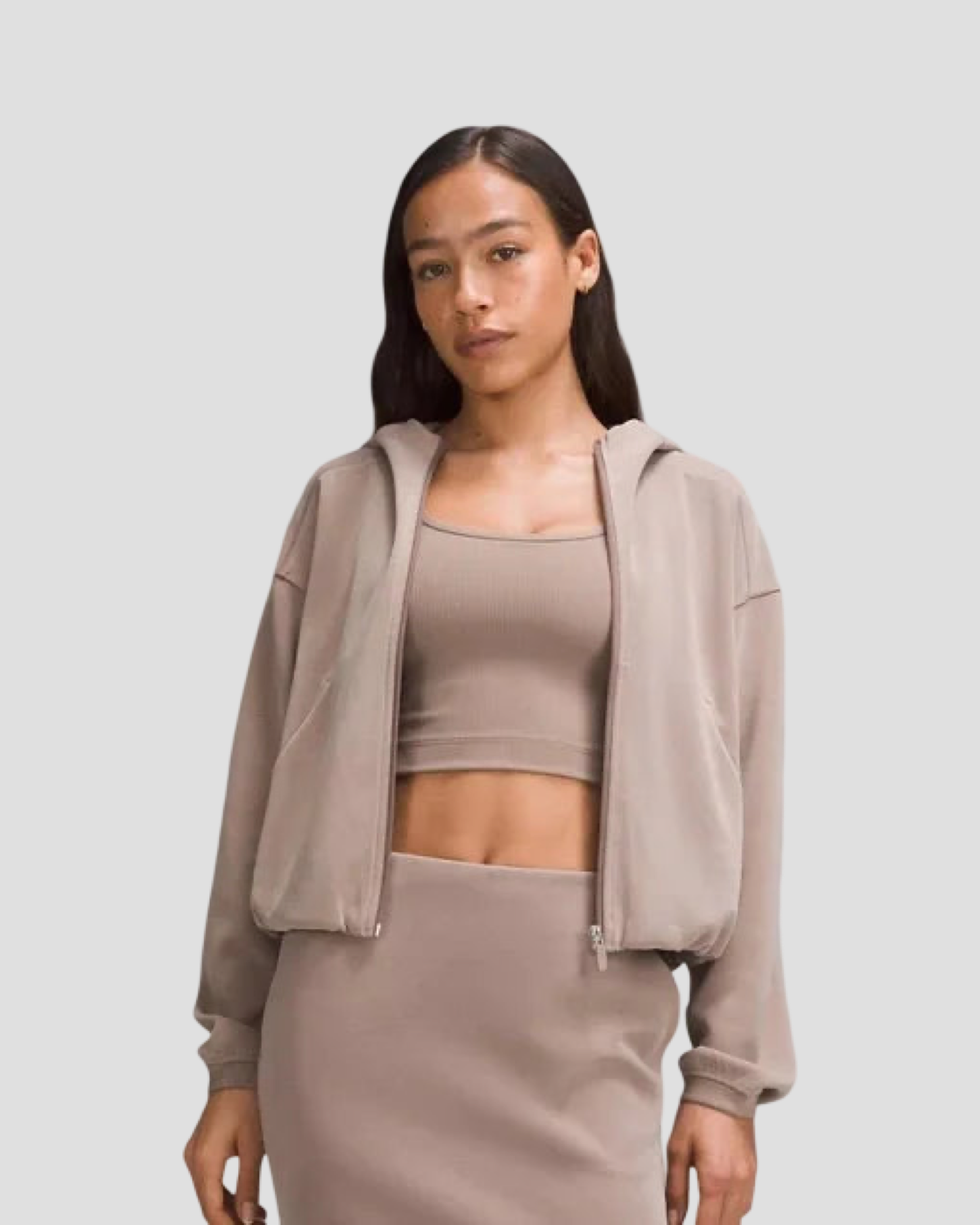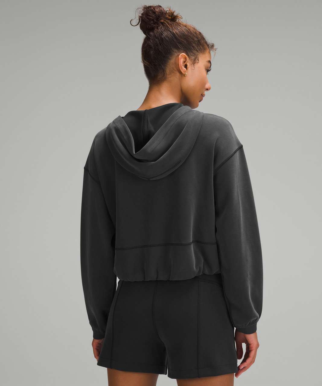 Details: Lend some luxe to your weekend look. Feel-it-to-believe it Softstreme fabric brings slinky softness to this hoodie while the gathered bubble hem adds a playful pop of volume.