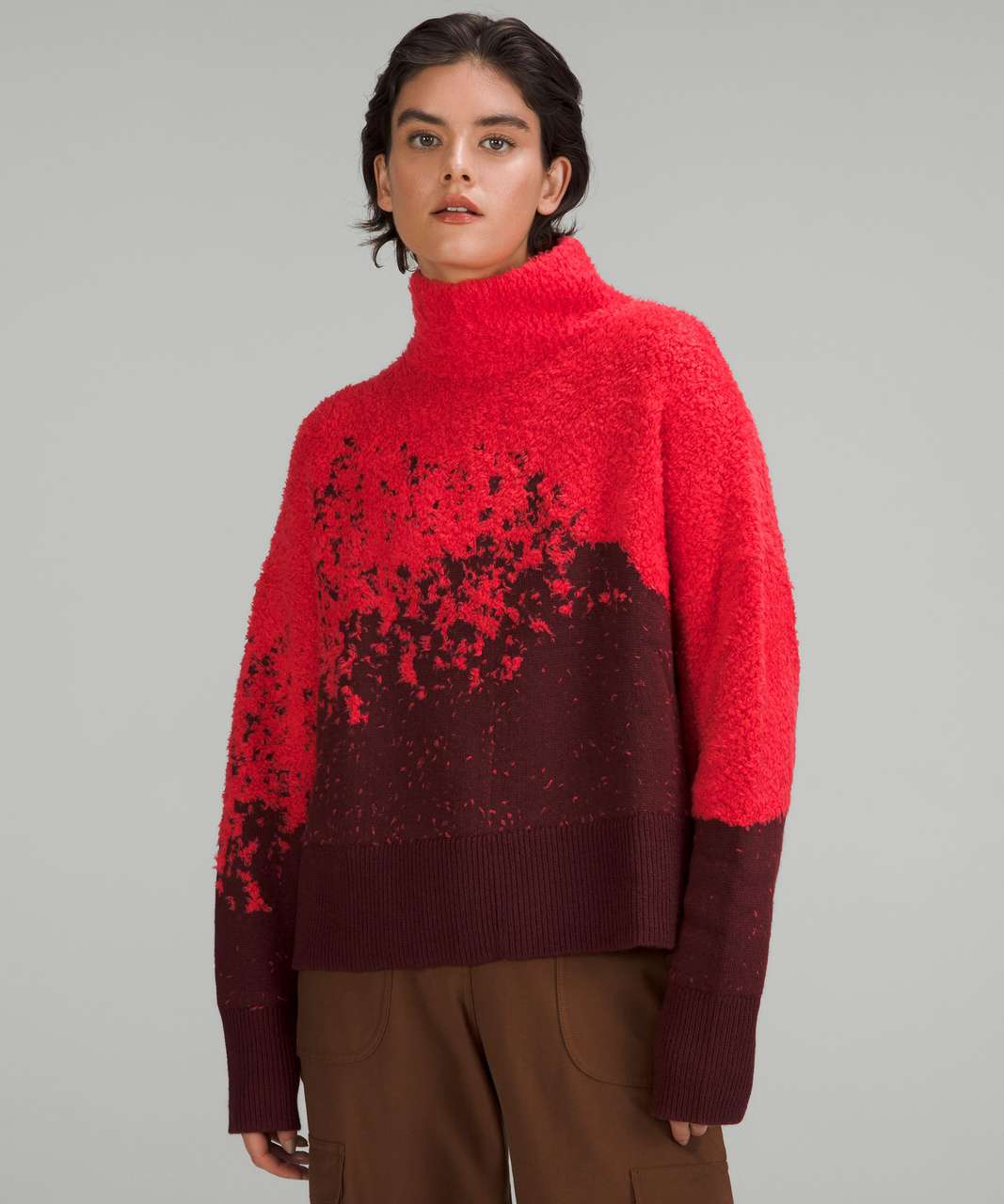 Texture lovers, this one's for you. We mixed ultra-soft high-pile yarns with a classic merino wool-blend knit on this cozy turtleneck—you won't be able to keep your hands off it.