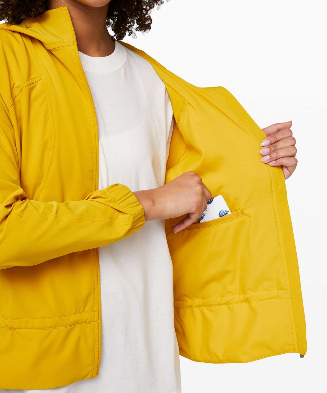 Details: When the weather's temperamental, this jacket has your back. Its DWR-treated fabric helps keep you dry, and it packs into itself for easy storage when the rain stops.