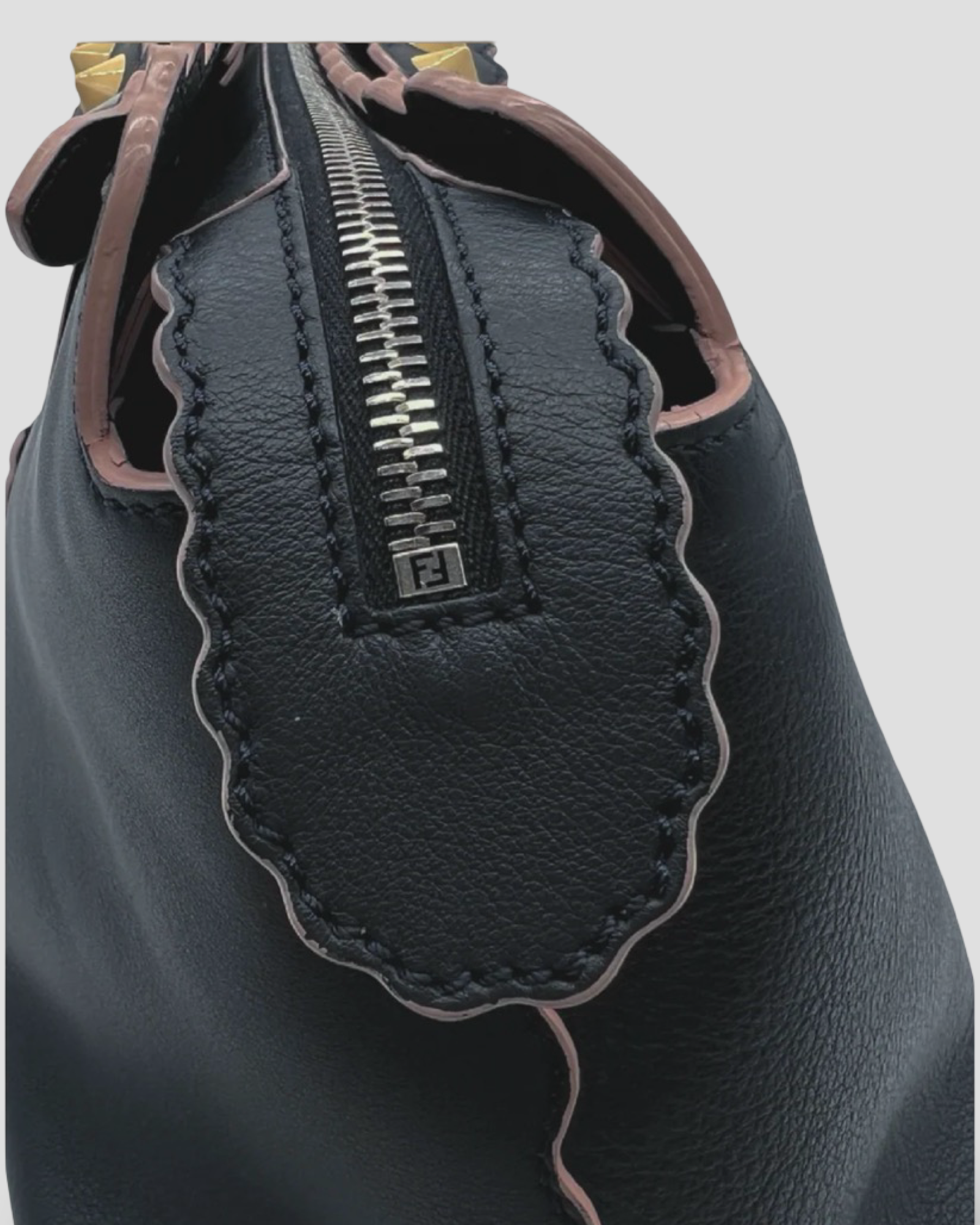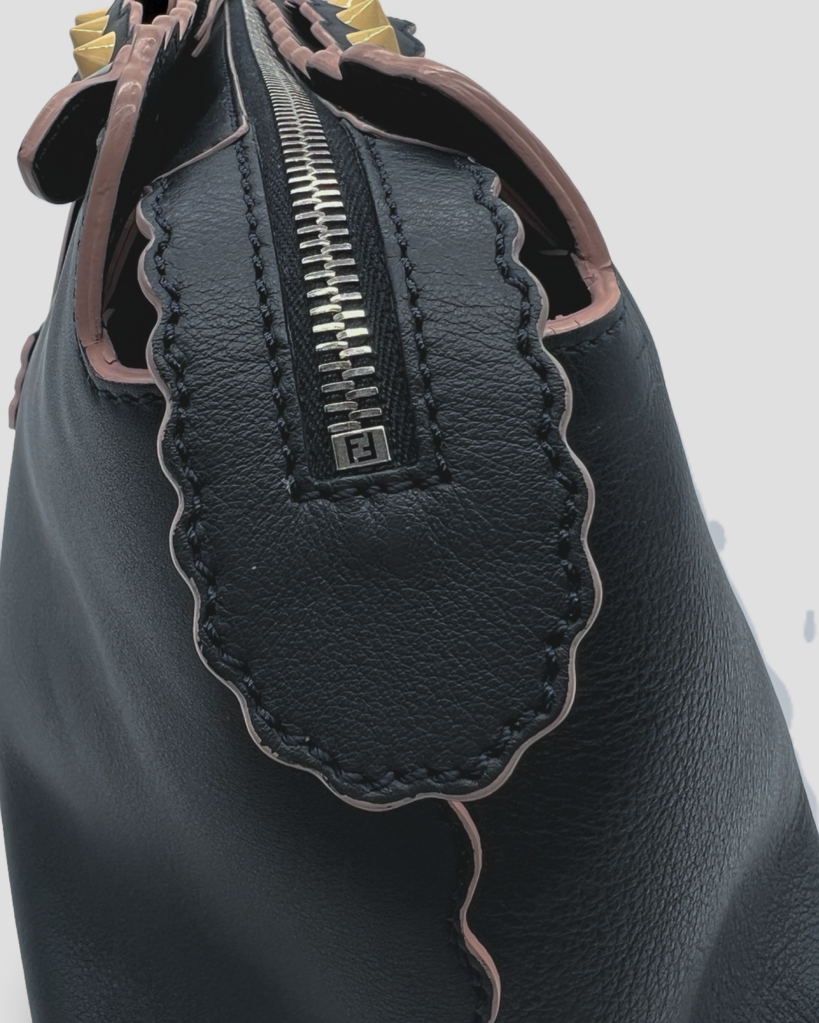 Customisable charm and long zip pull with knot in tone-on-tone Cuoio Romano leather.