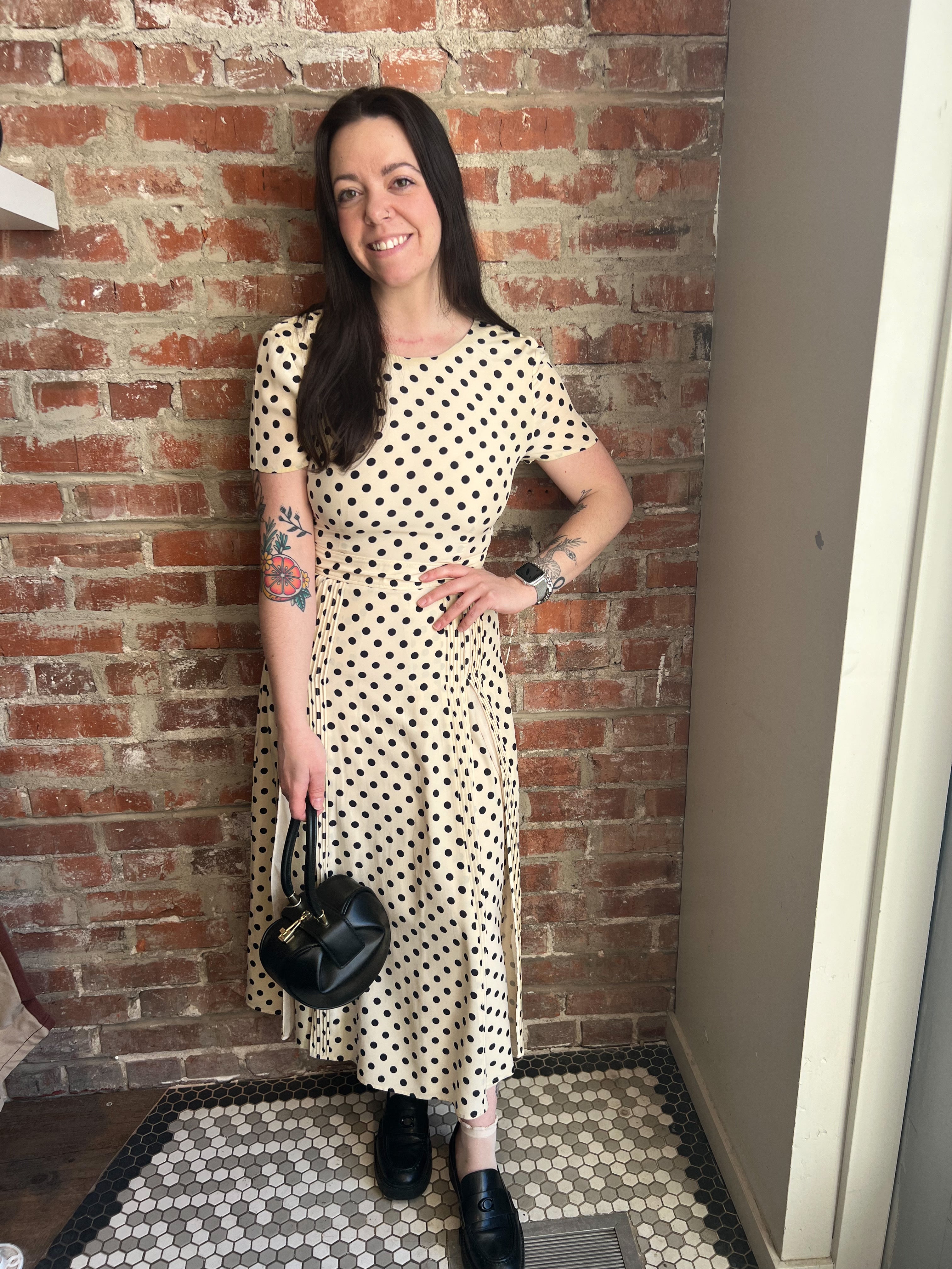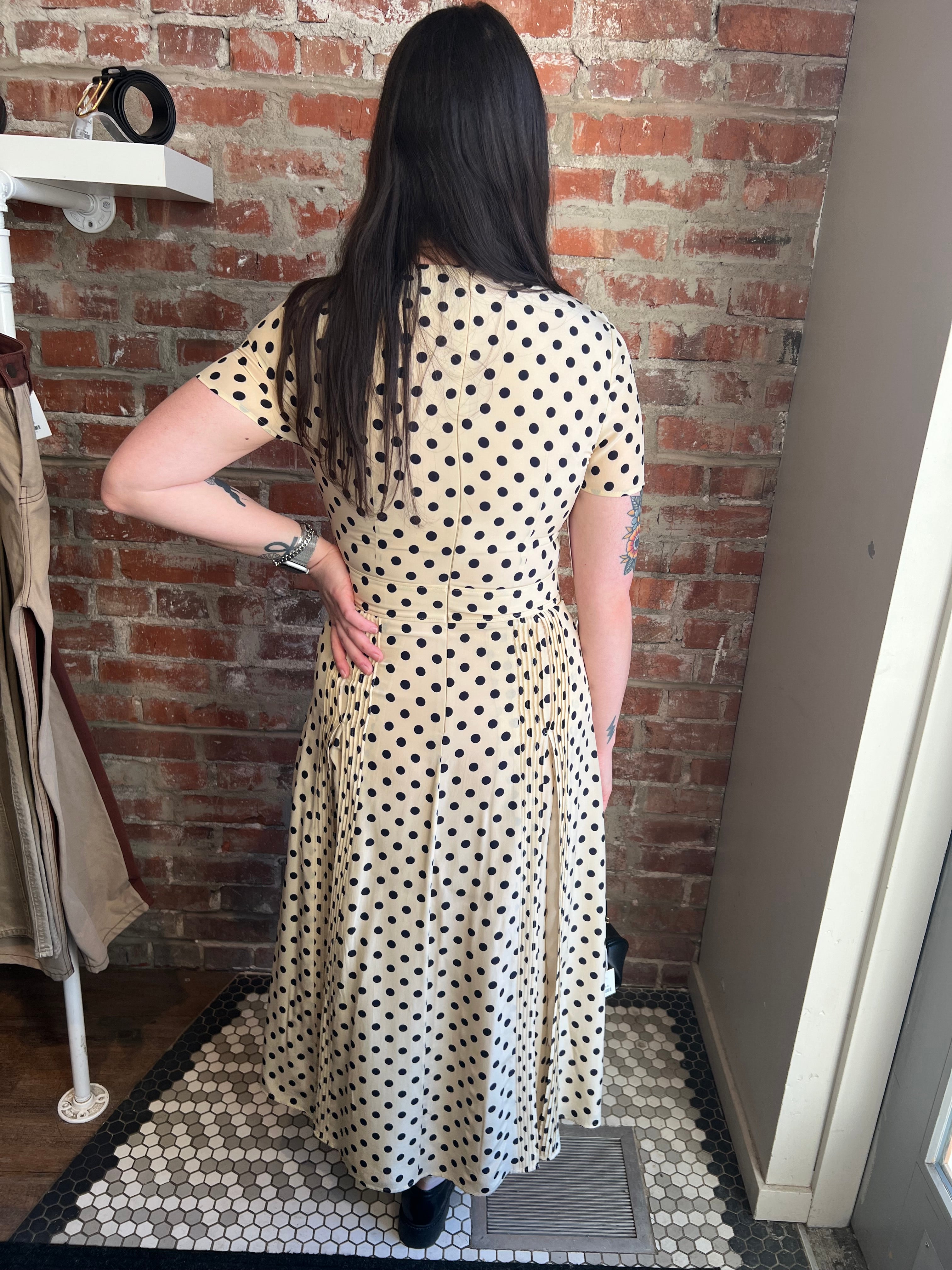 (S) Corin Silk Polka-Dot Dress