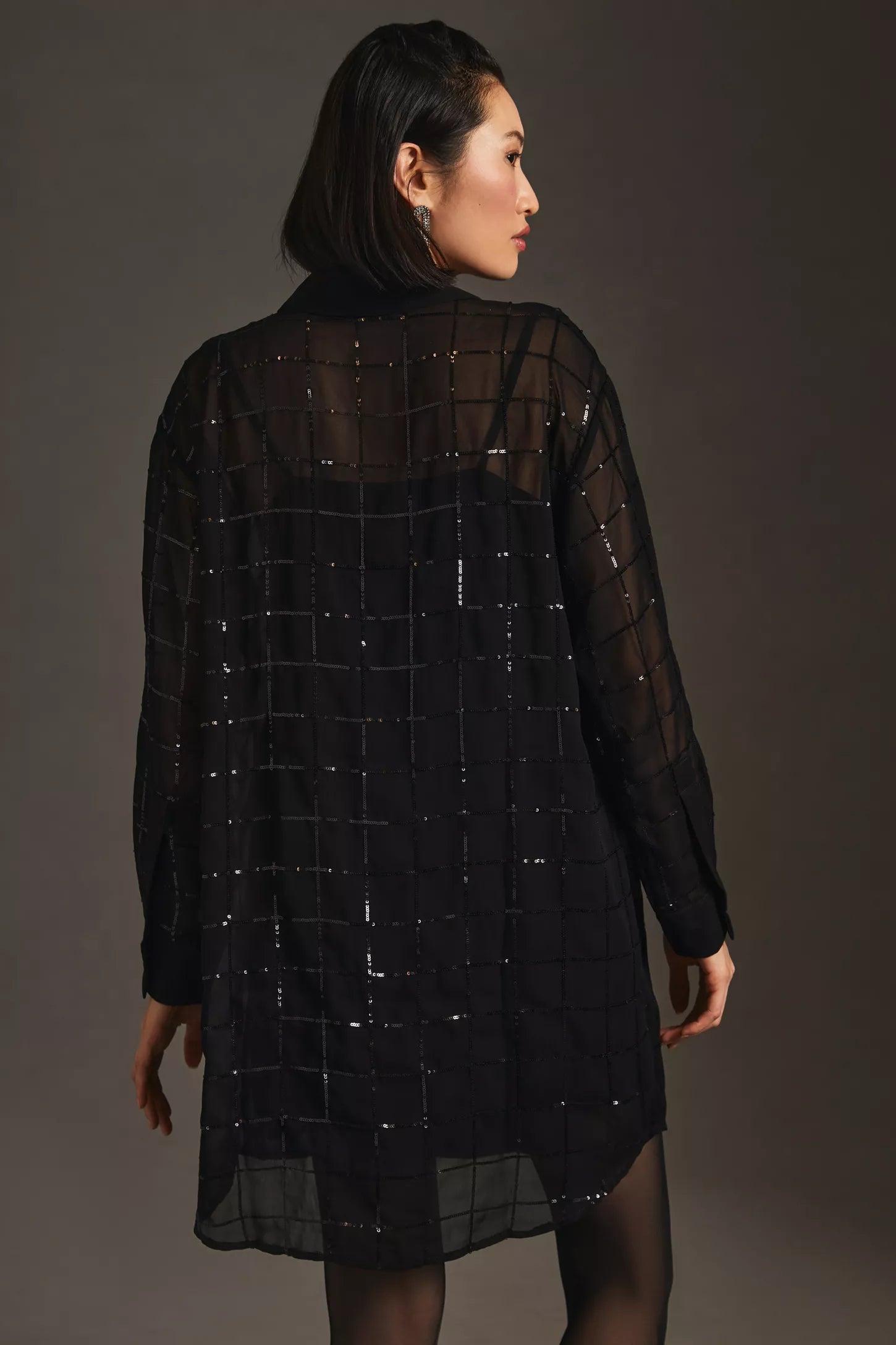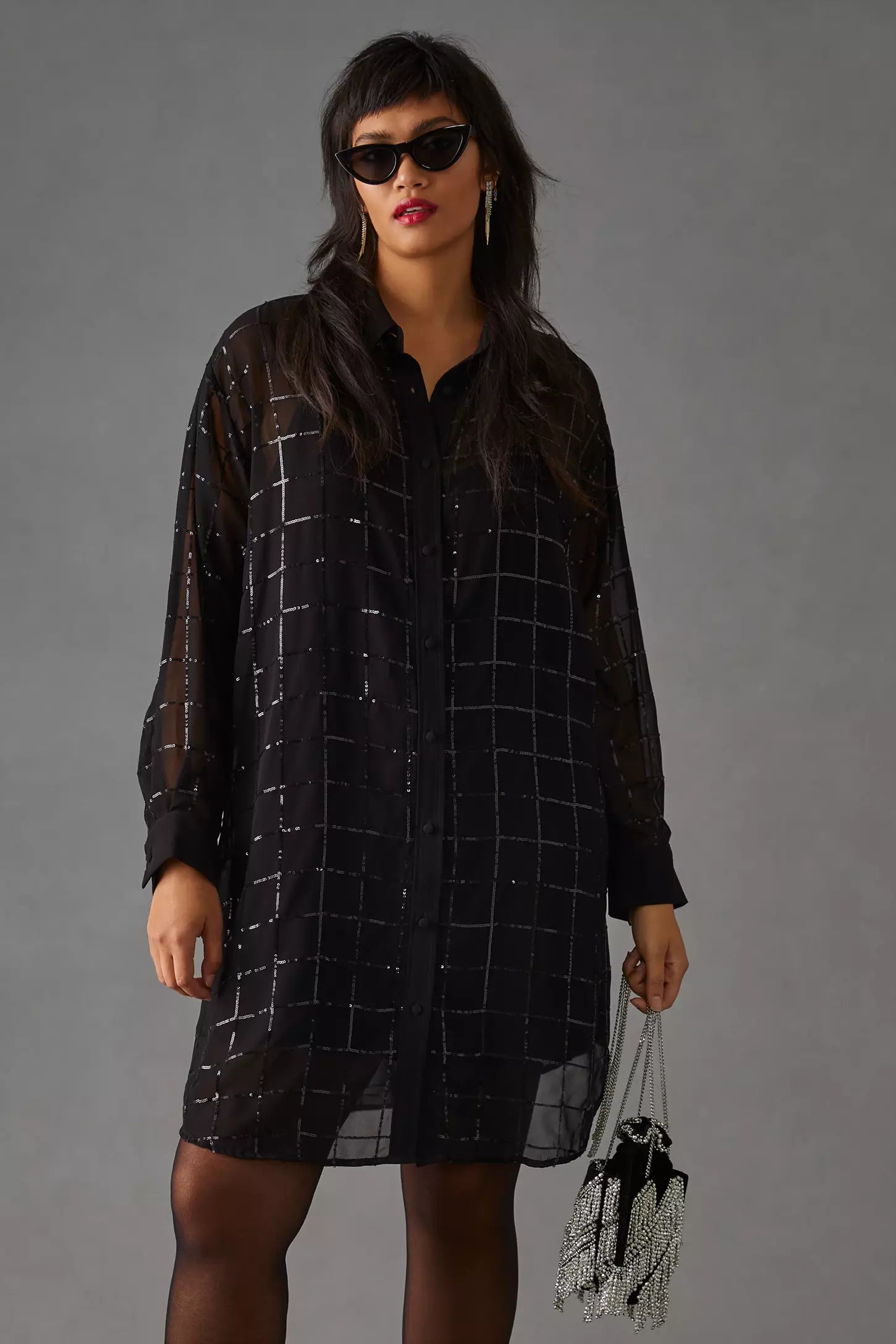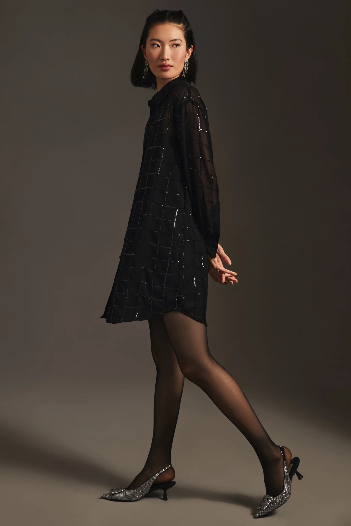 (XS) "Rinku Dalamal" Sequin Shirt Mini Dress