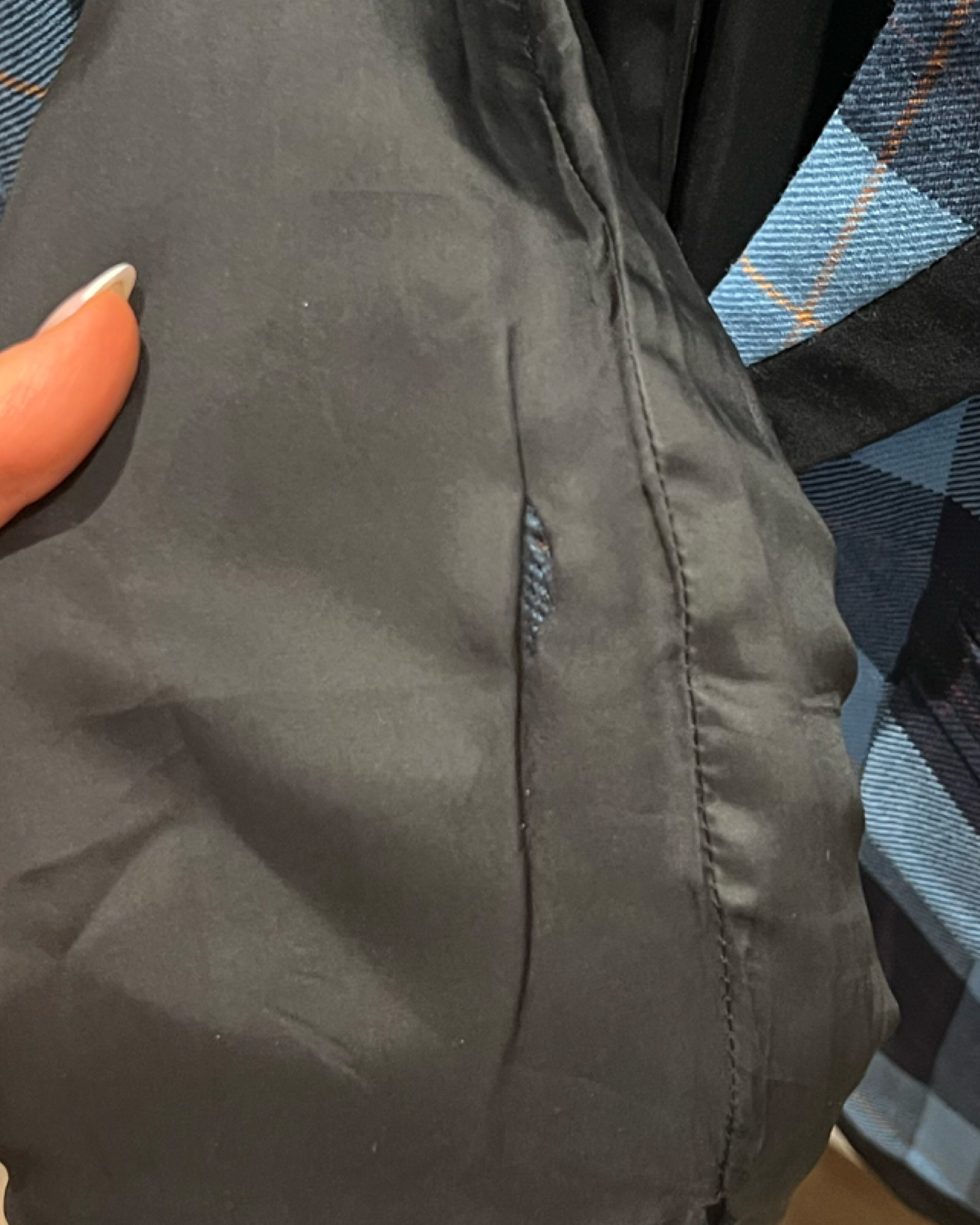 Small rip on inside left arm