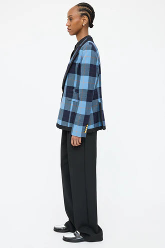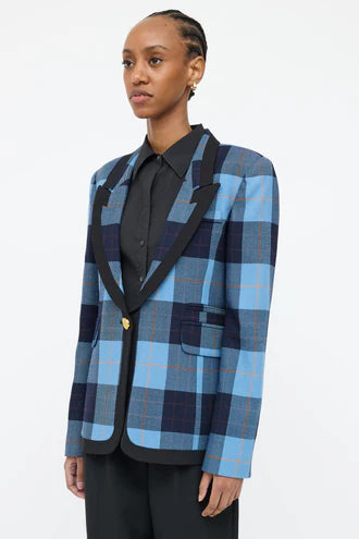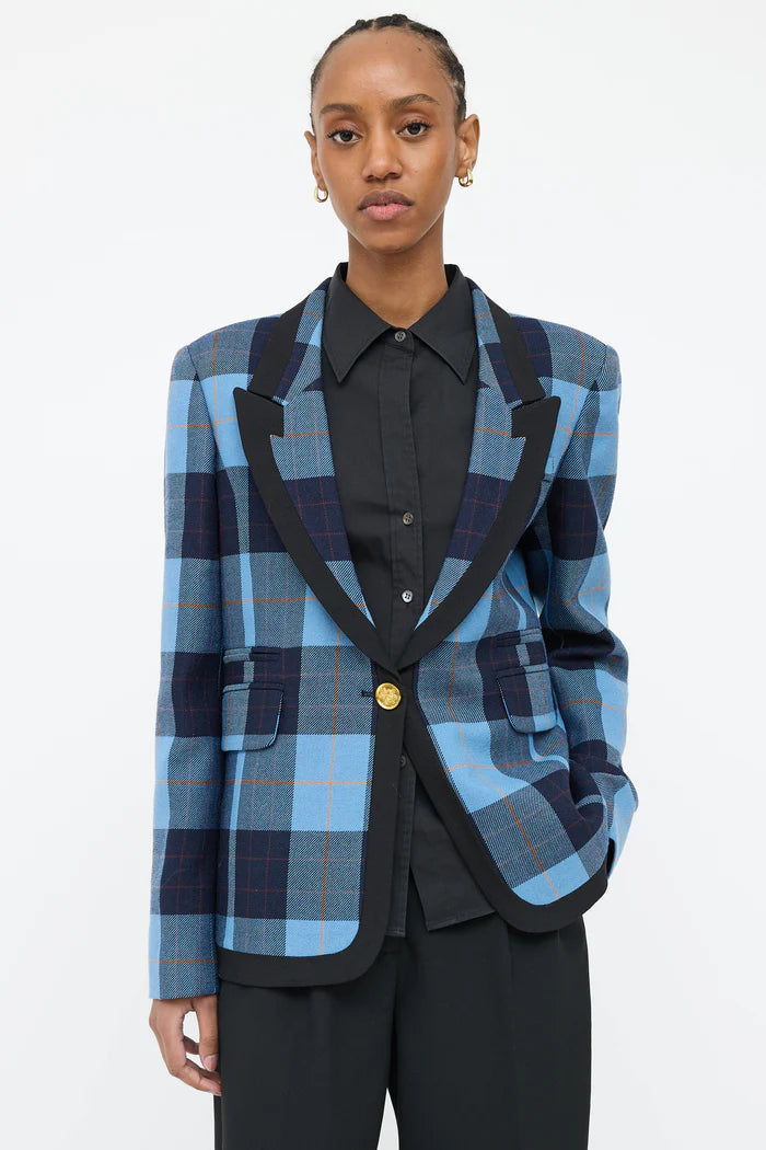 (XS) Check Taped Peaked Lapel Blazer