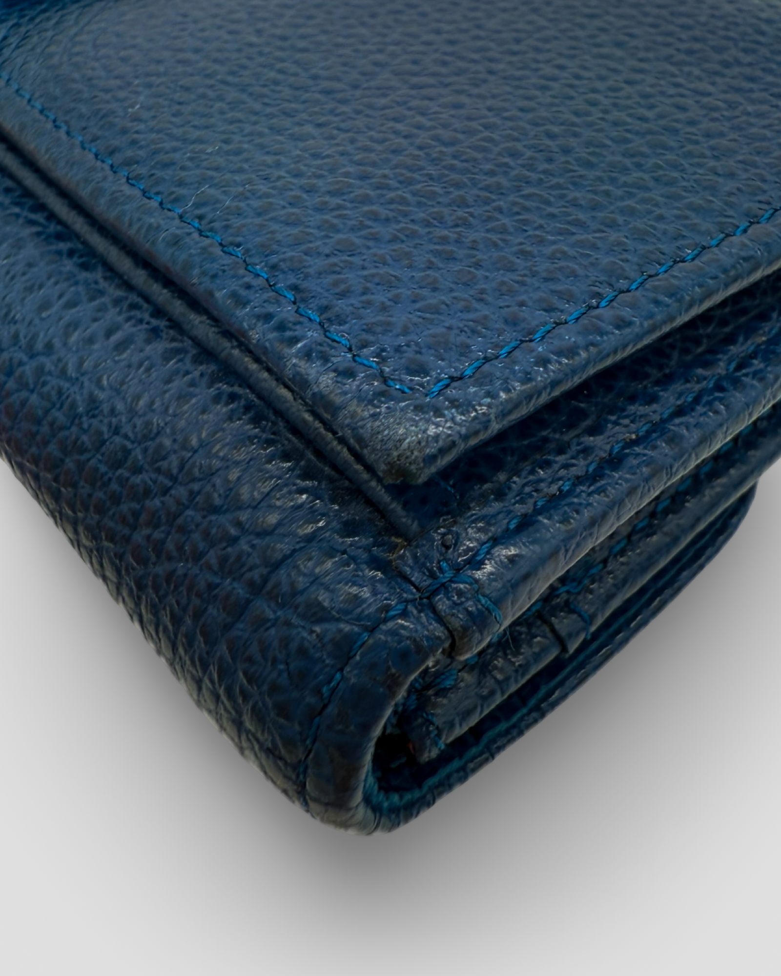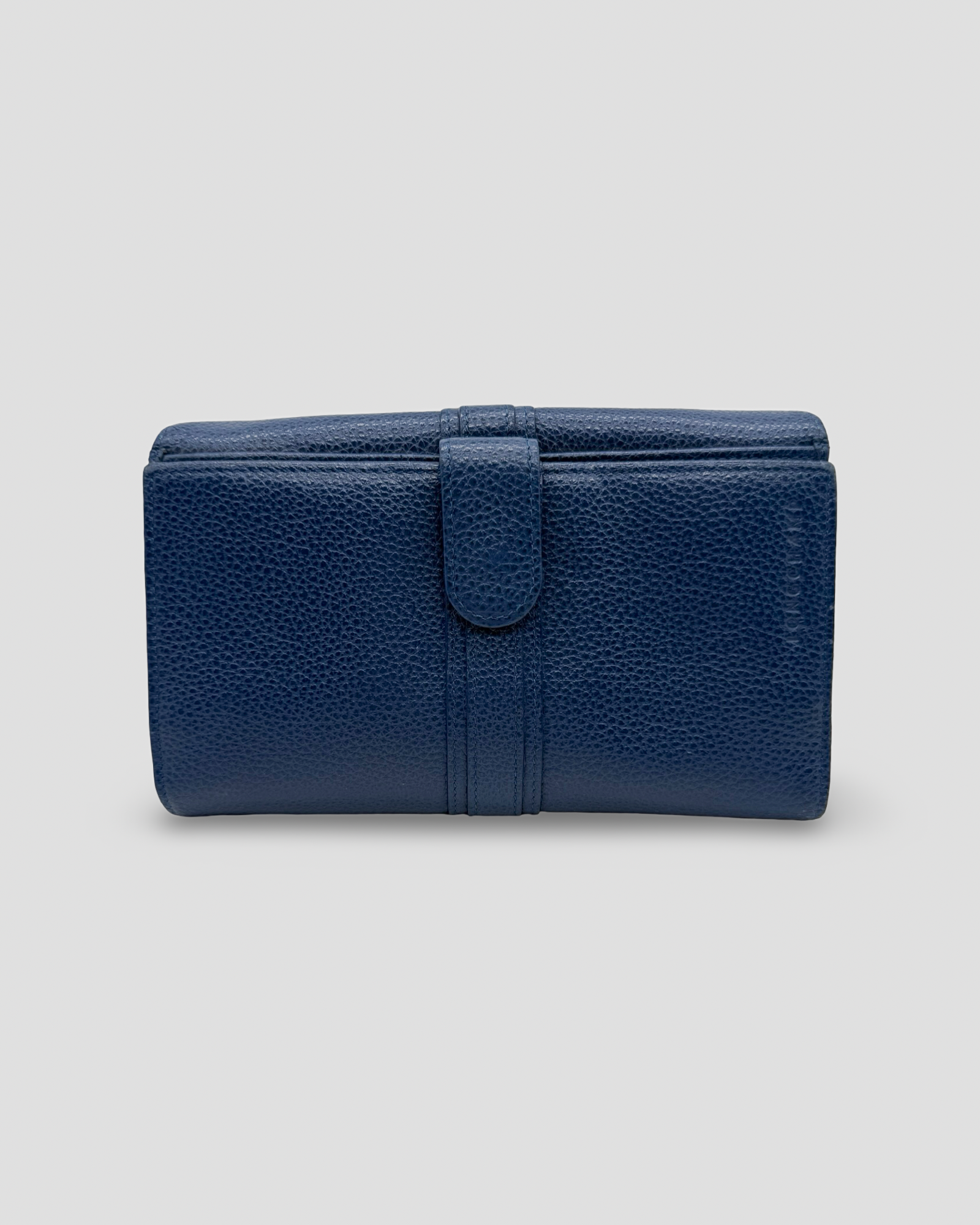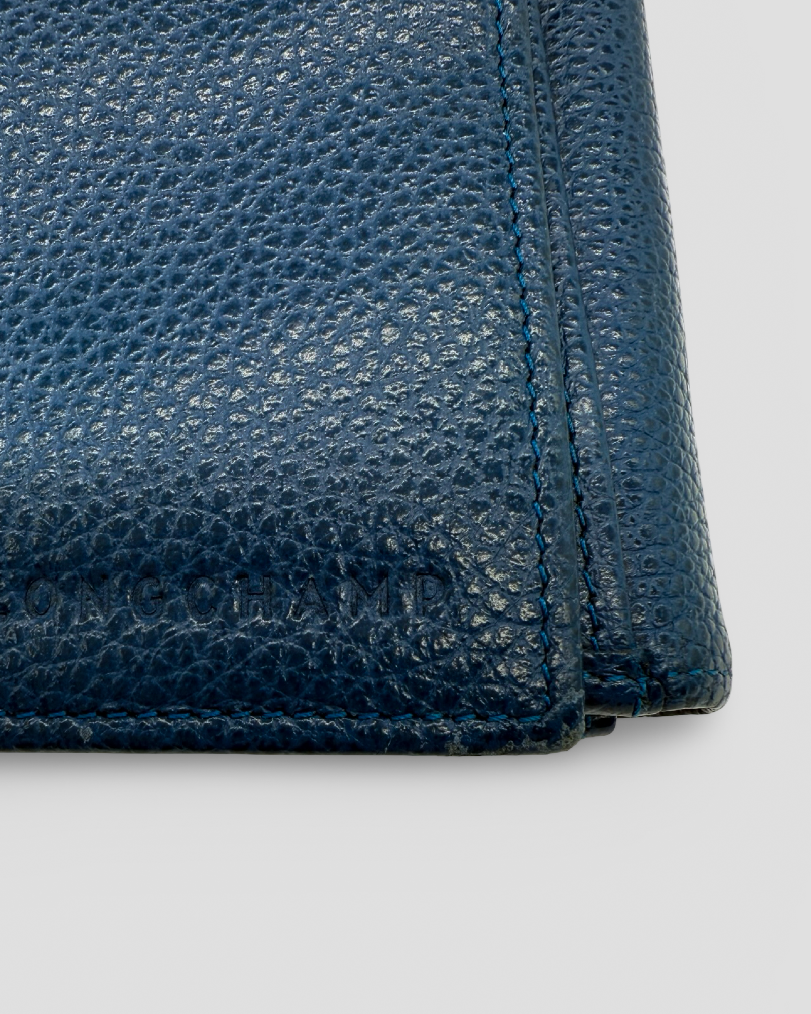 Details: Three in one, Longchamp has designed this multifunctional checkbook holder for its "Le Foulonné" line. Made of grained cowhide leather, it includes a coin purse/wallet compartment.