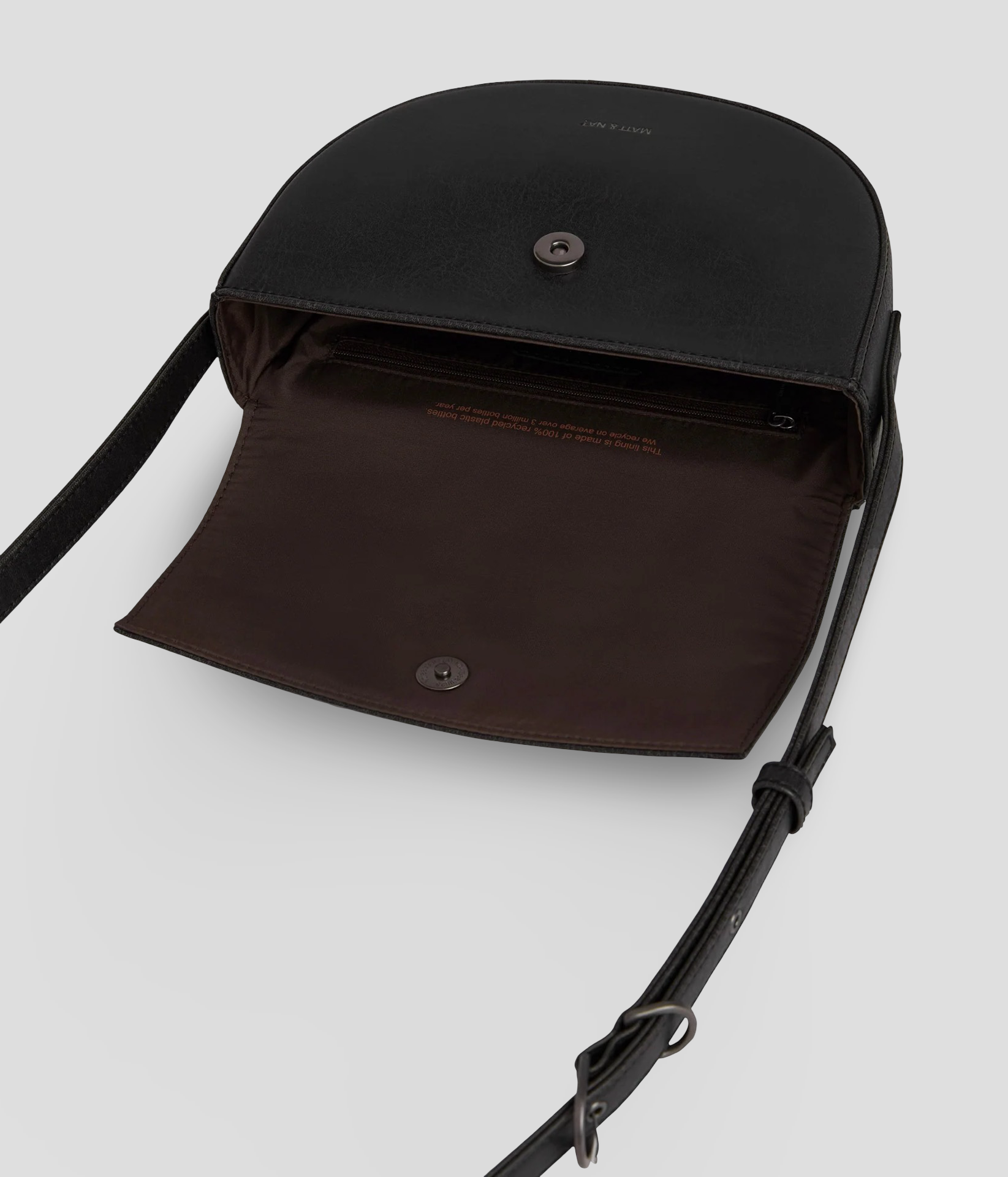 Details: The saddle bag has an adjustable strap, a flap with magnetic snap closure at the main compartment, and a back-gusseted zipper compartment.