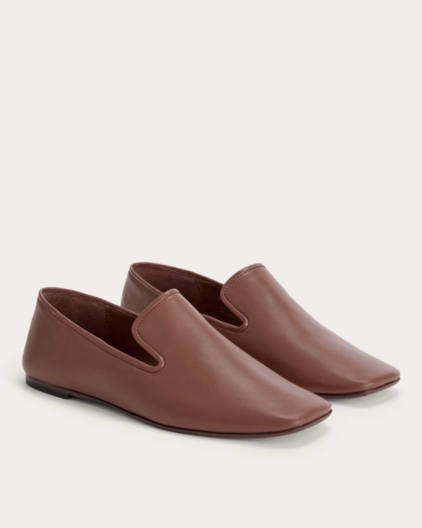 Details: The polish of a loafer meets the comfort of a slipper. The Day Loafer is a modern take on a traditional smoking loafer. Featuring a square toe in our ultra soft, Nappa leather with a comfortable back for easy slip-on and Everlane's signature cushioned insole for all day wearability.