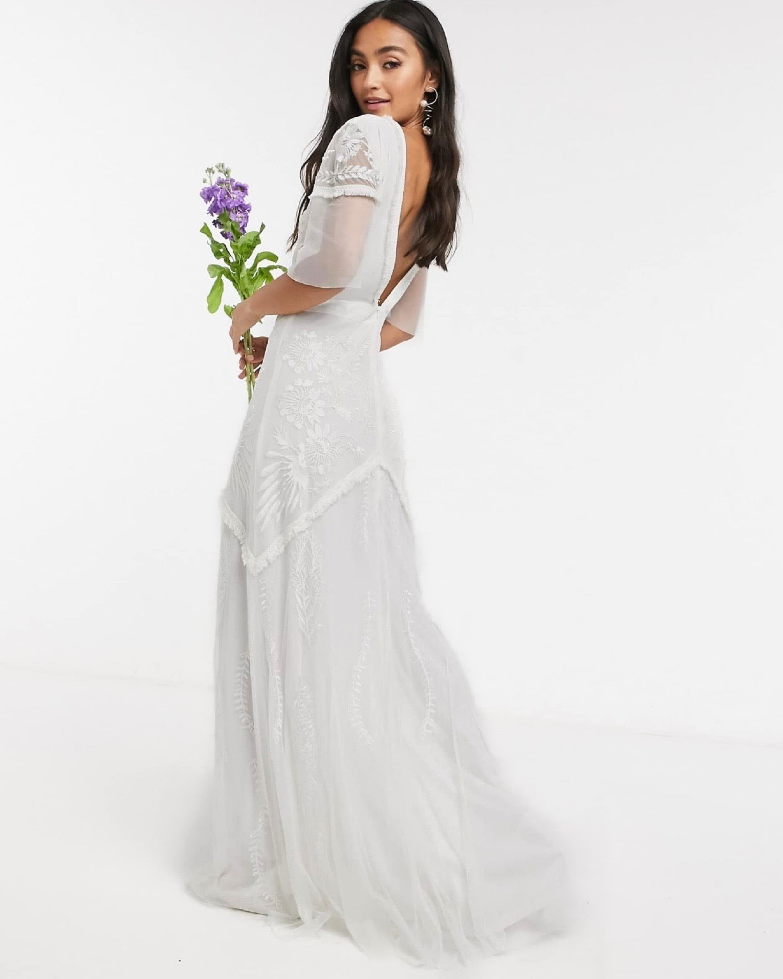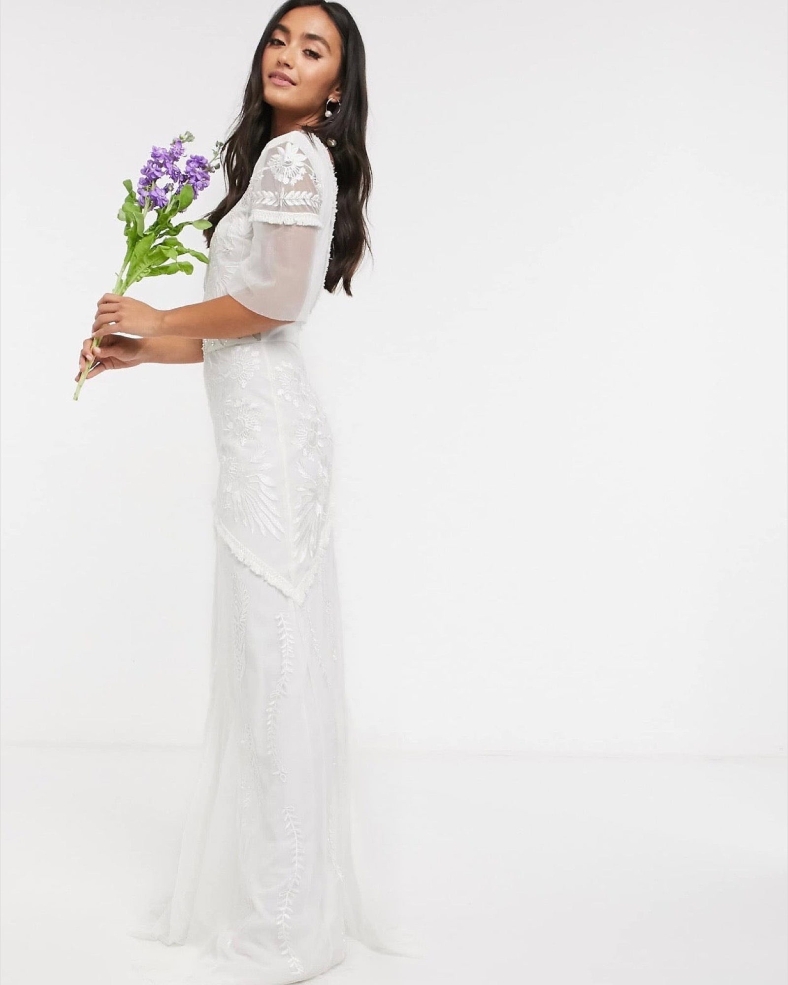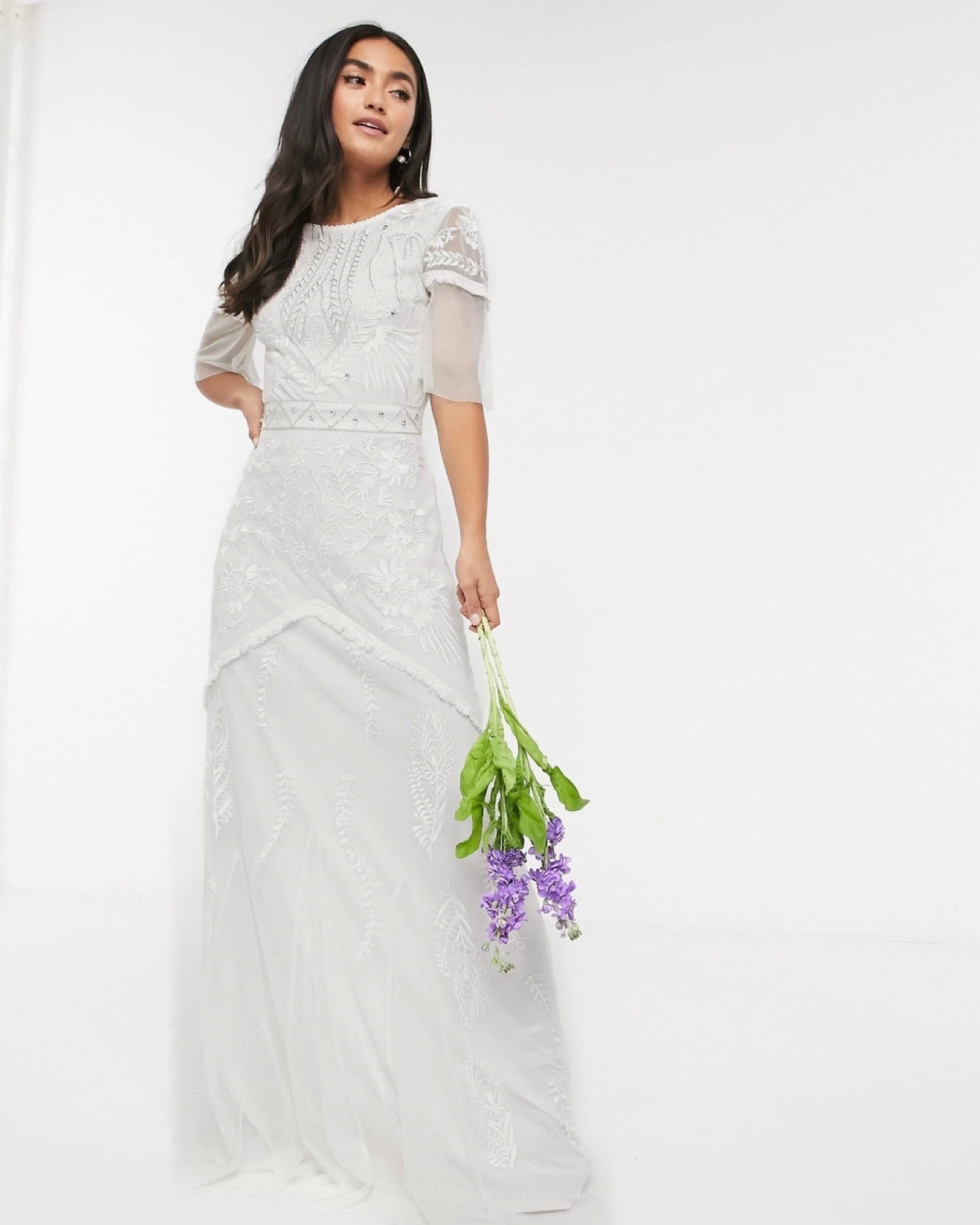 Details: Designed for life's most important occasions, this graceful maxi dress will ensure all eyes are on you. Realized in a delicate ivory hue and overlaid with sheer mesh, this full-length gown is detailed throughout with hand-embellished beadwork.