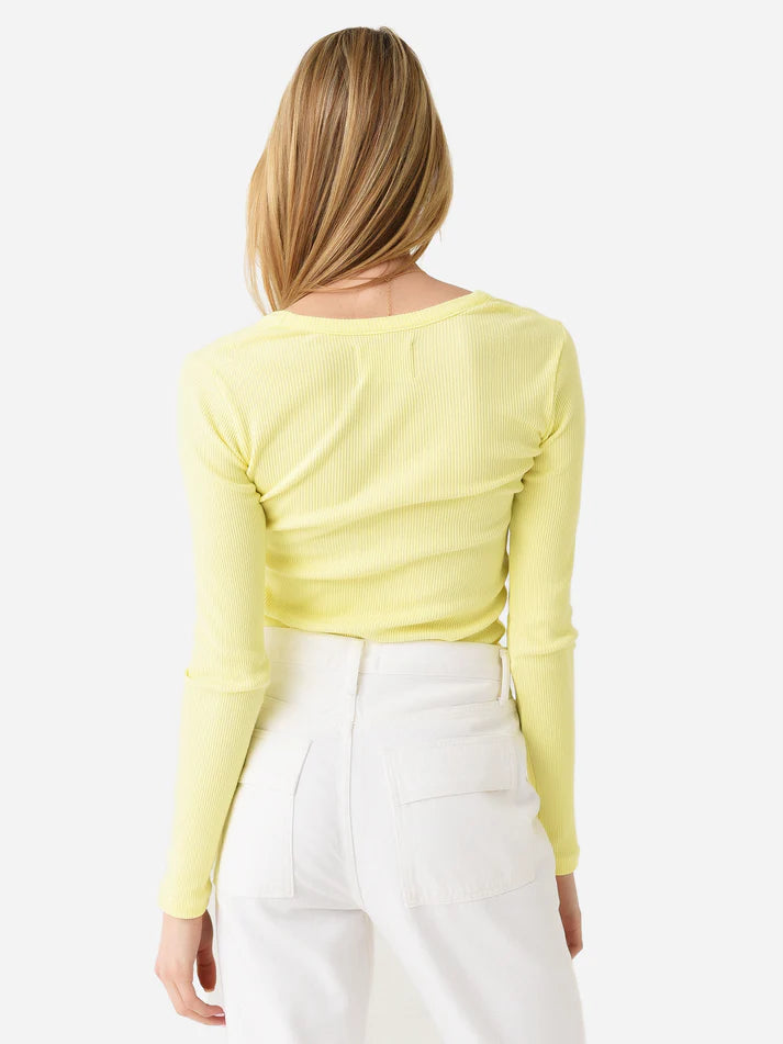 Details: Long-sleeve tee with a rounded v-neckline and sleek silhouette.