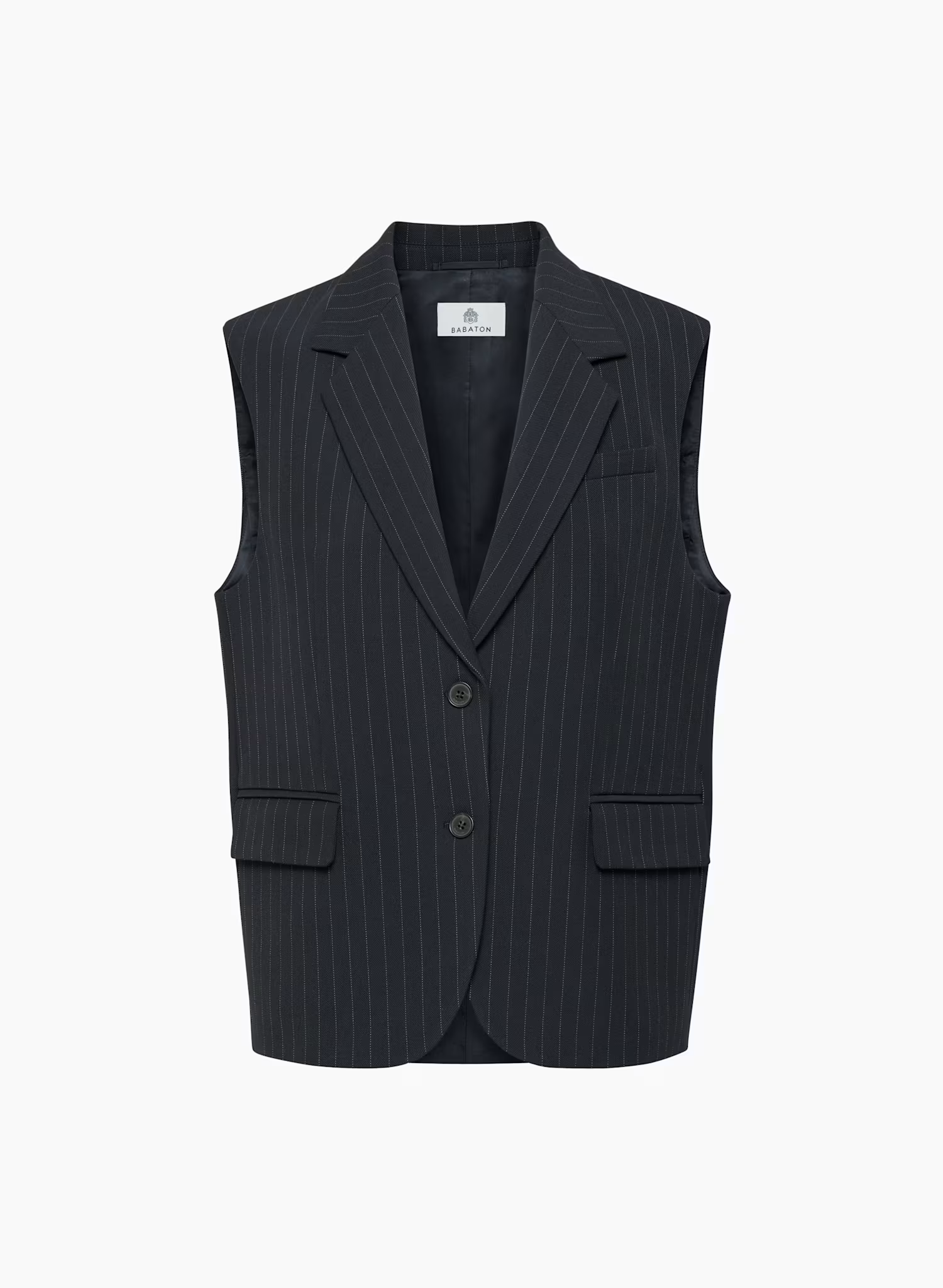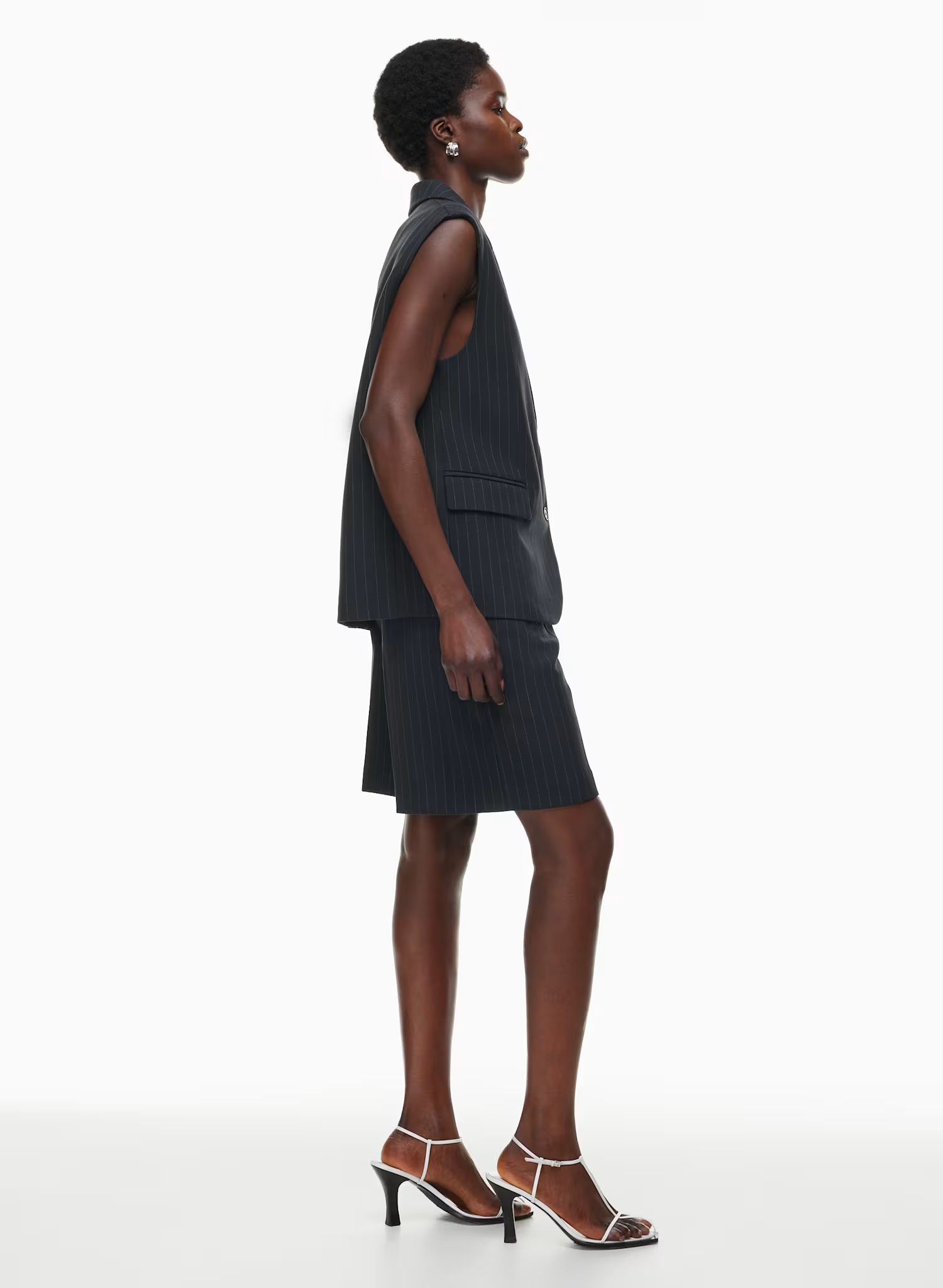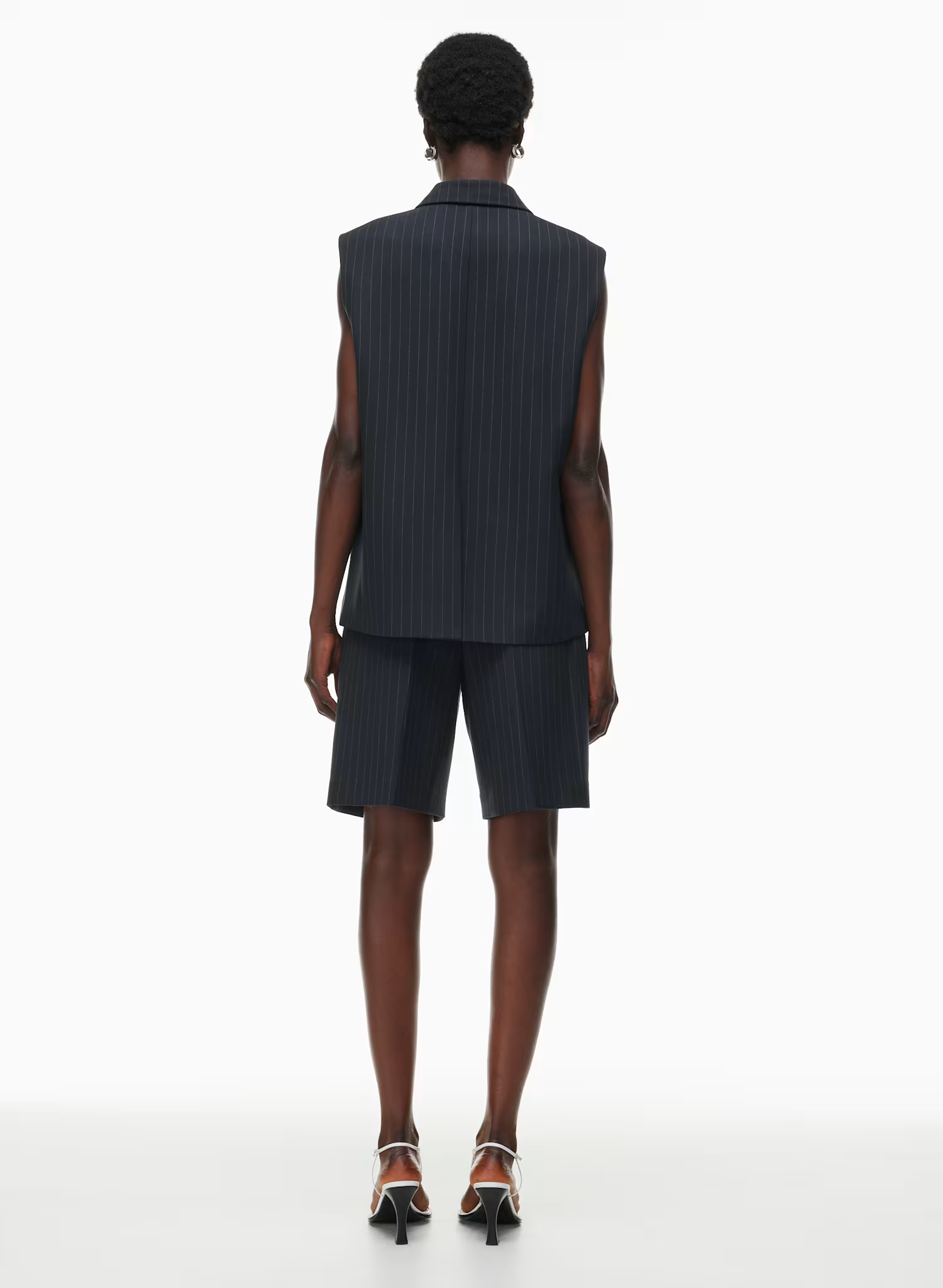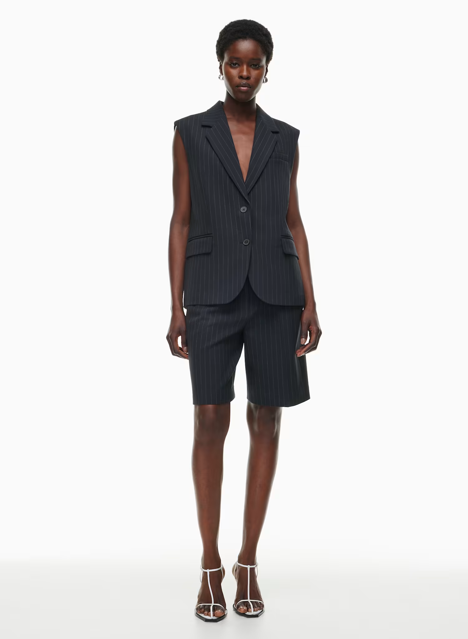 This is a lined single-breasted vest with notched lapels, front welt pockets and princess seams for shaping. It’s expertly tailored with (Re)ssential — softly structured stretch fabric that holds its form while you move easy.