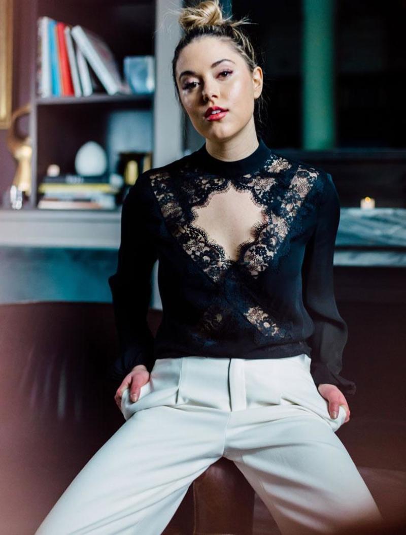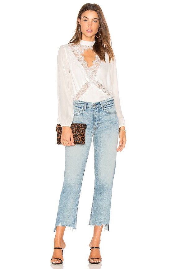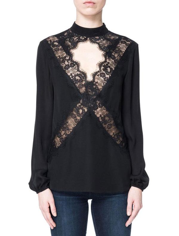 Details: The most elegant, lace-adorned blouse. This gorgeous blouse features a scalloped lace cutout, luscious silk hand and pairs perfectly with trousers or jeans for a day to night look.
