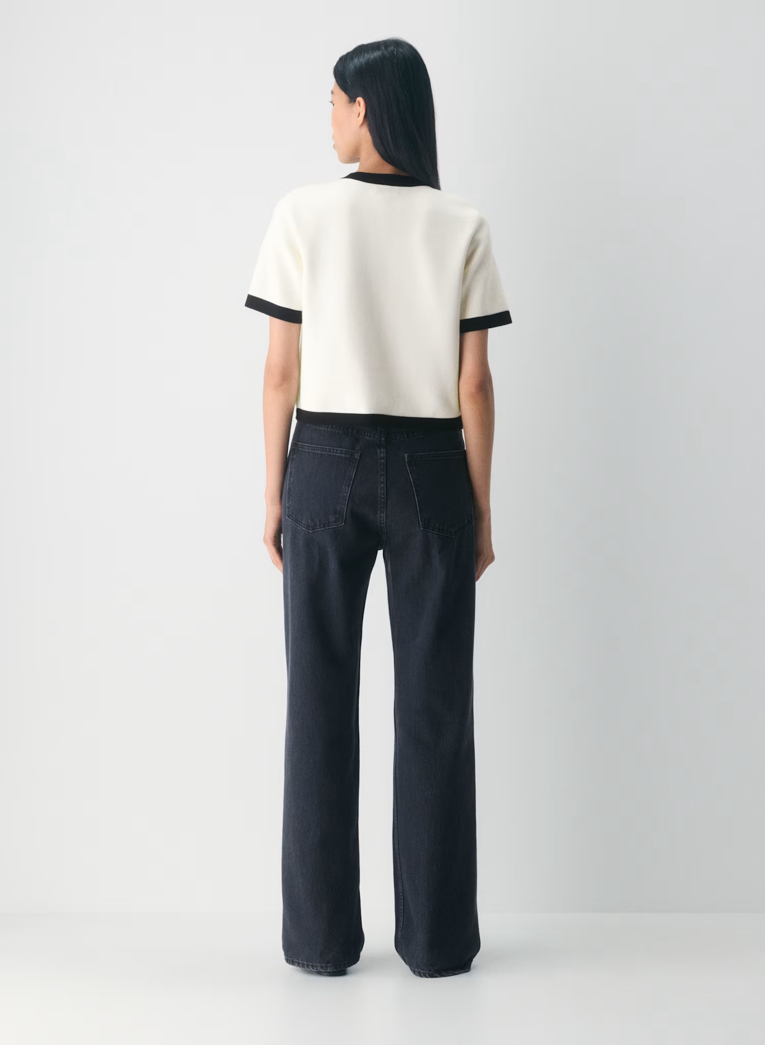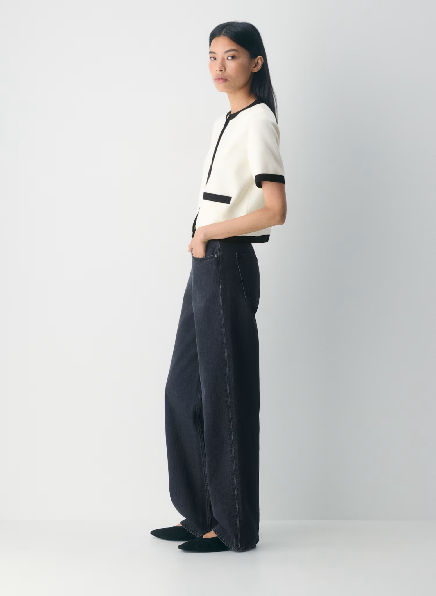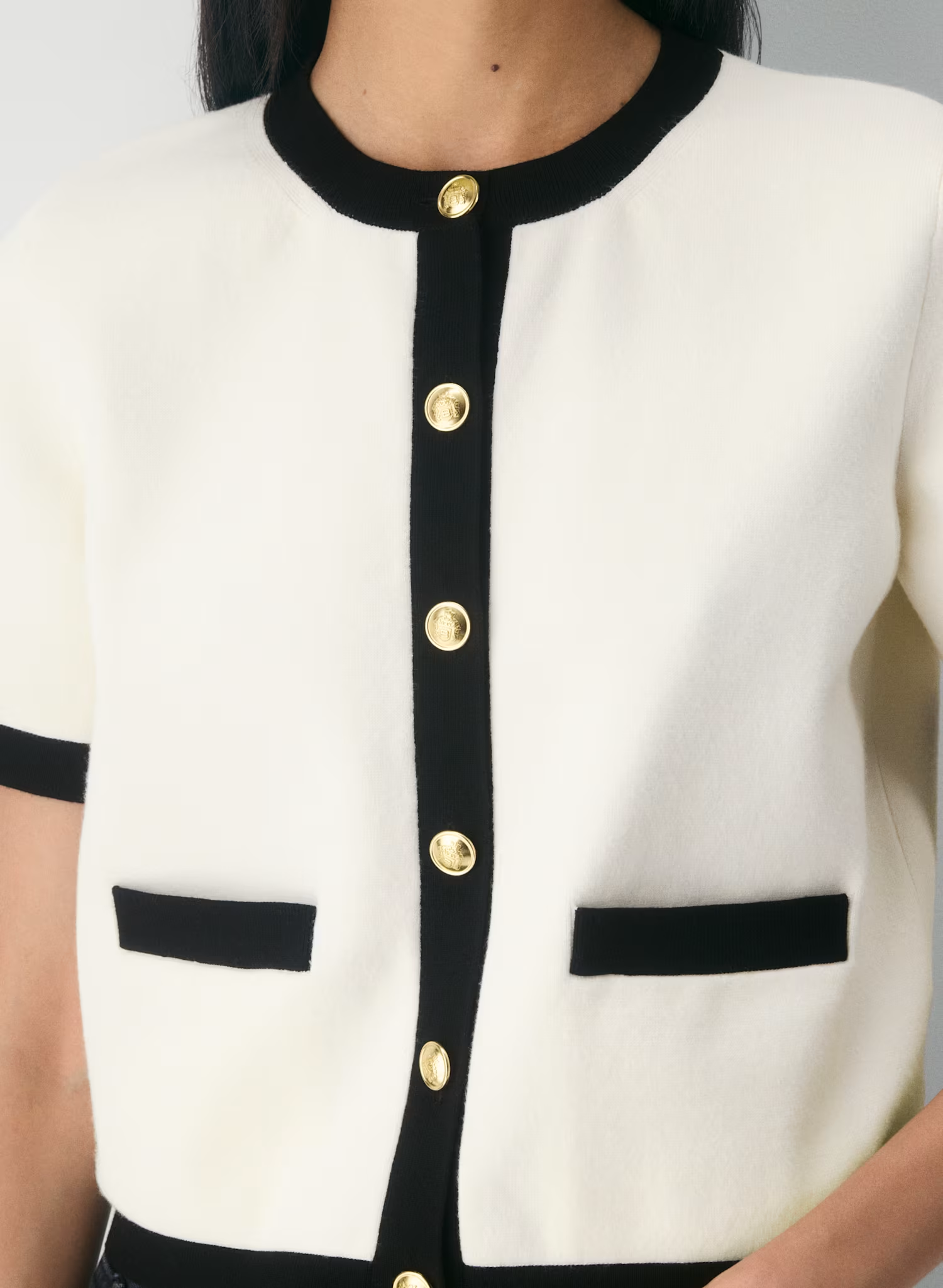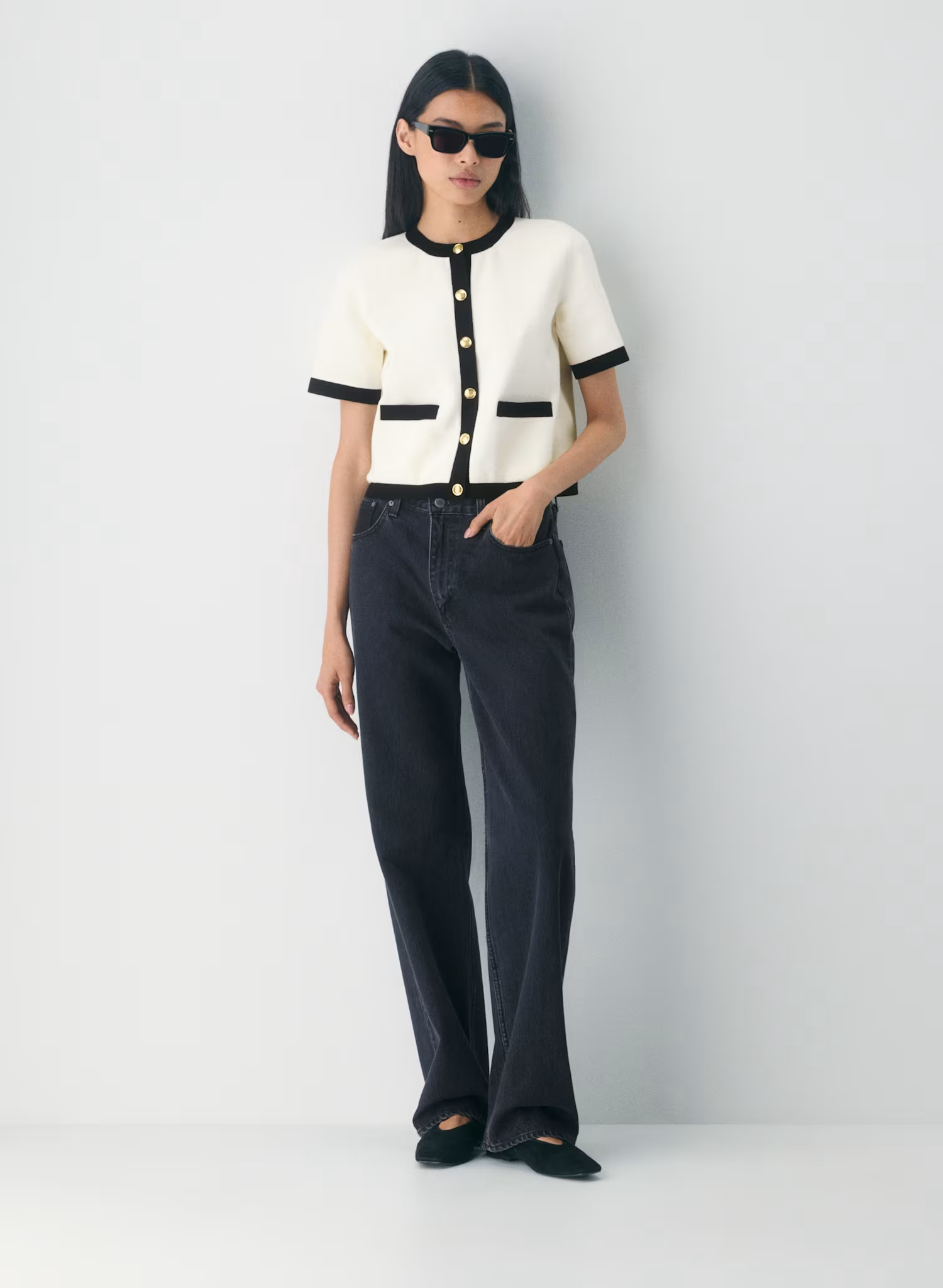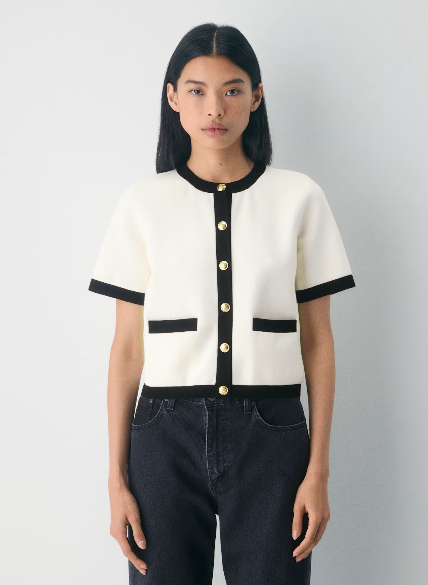 This is a crewneck cardigan with short sleeves and fully fashioned construction. It's knit with Wonder Yarn — the lightweight yarn that lives up to its name. This fabric offers the peachy softness of wool, without the wool. It’s made with LENZING ECOVERO Viscose. This garment is constructed using a Half Milano stitch for structure and a flat, dense feel.