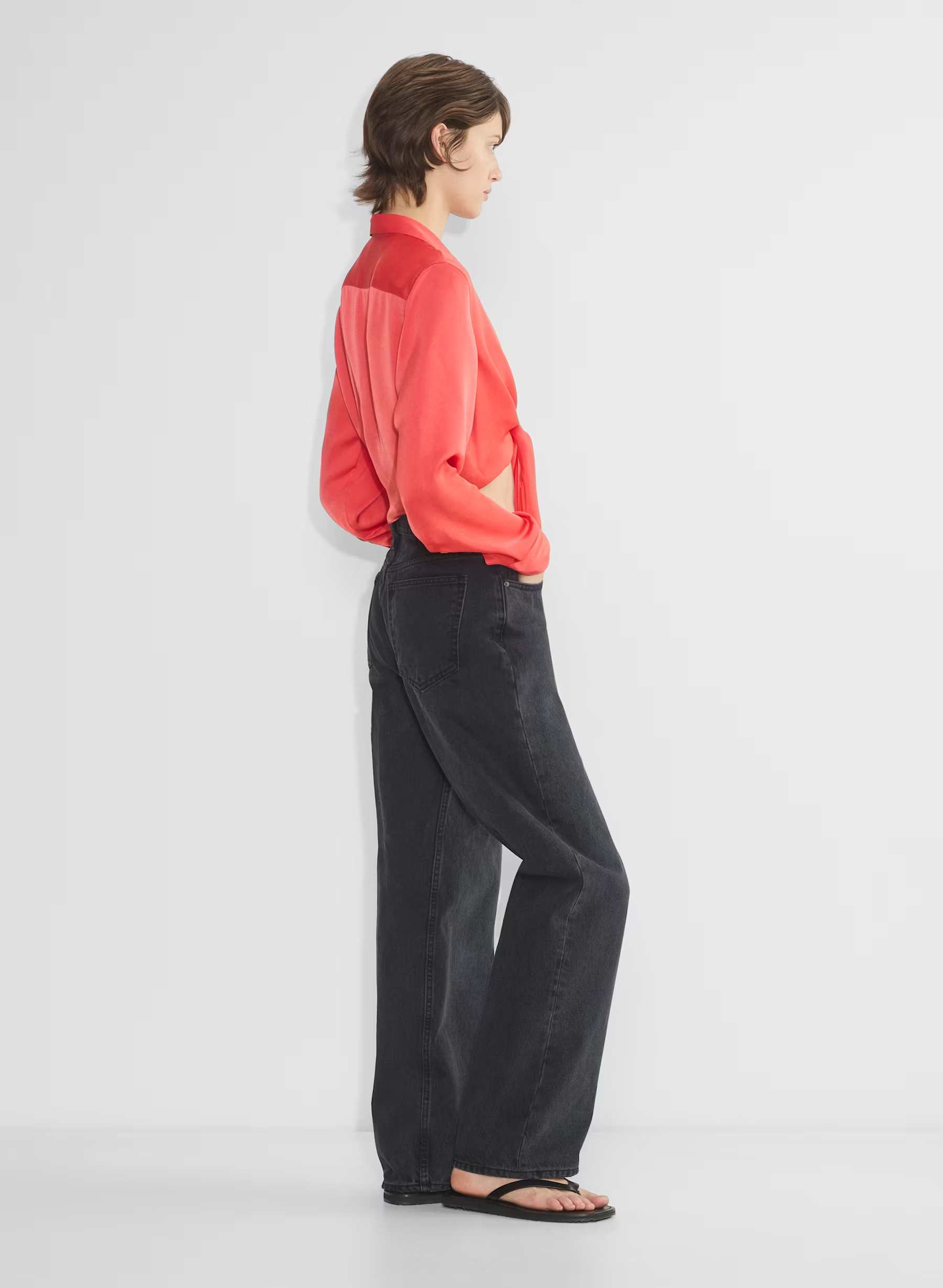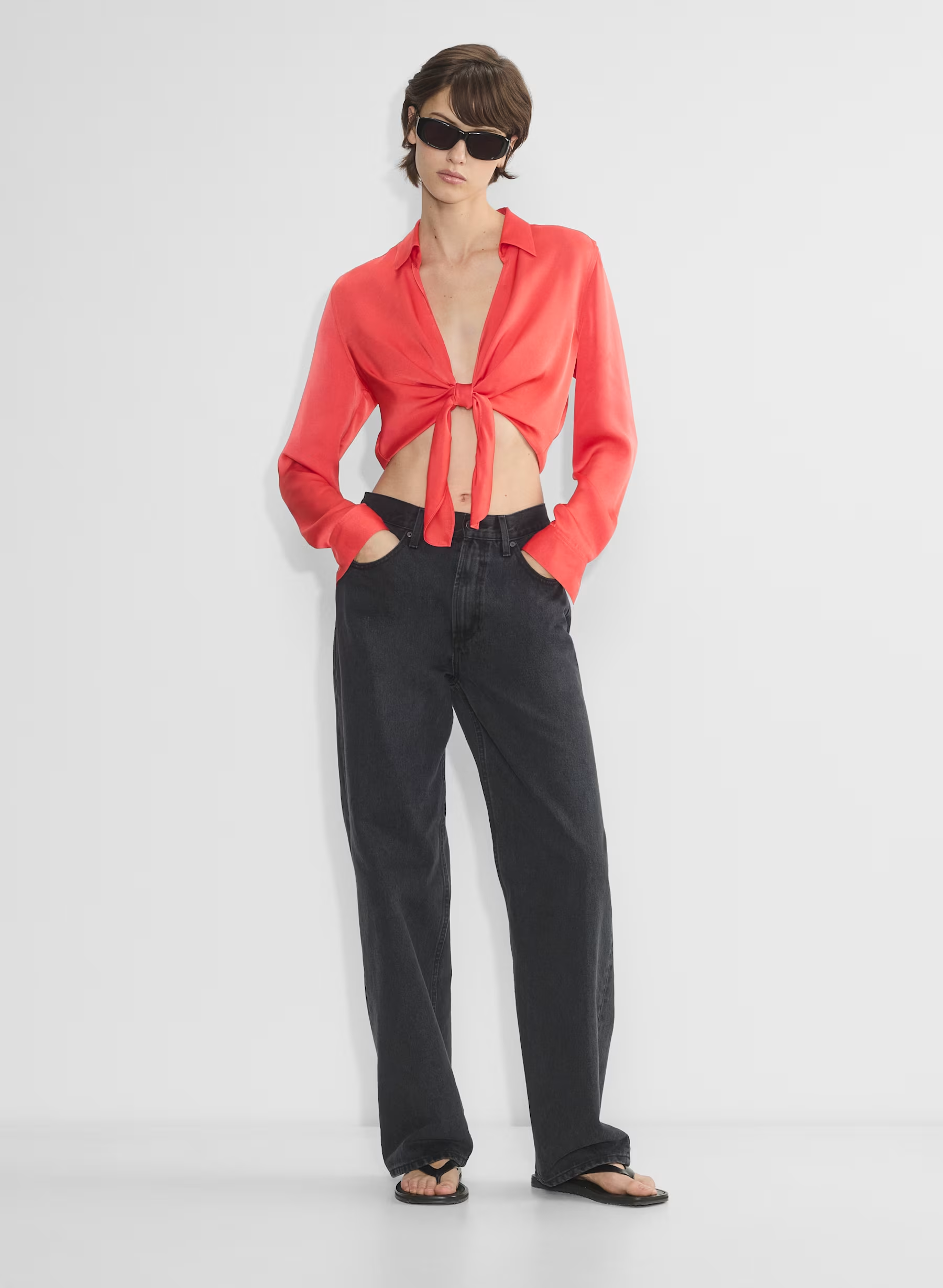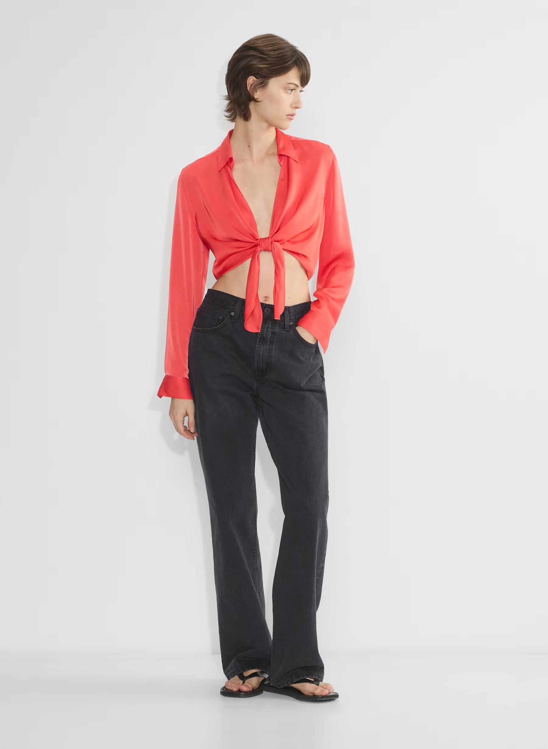 Details: This is a tie blouse with an open front. It's cut from drapey Japanese double-faced satin with a soft sheen and luxurious next-to-skin feel.