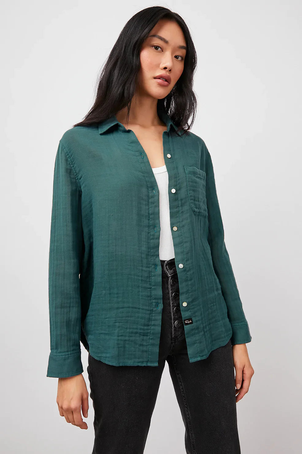 Details: Lightweight, breezy, and breathable, this chic classic is a must-have for everyday elevated comfort. Made from organic cotton gauze, this button-down shirt features a single patch pocket at chest, natural shell buttons and a classic fit.