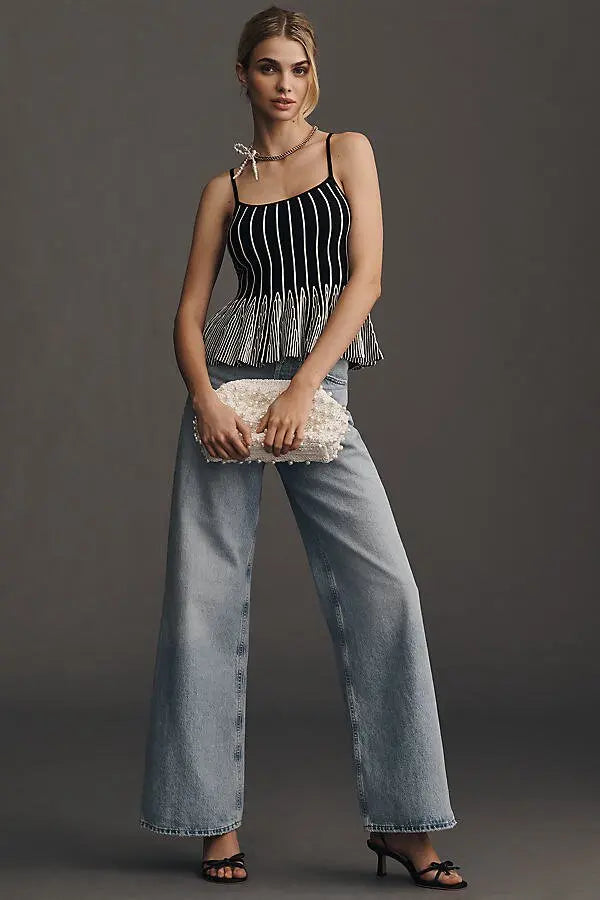 (L) NWT "Maeve" Ruffled Peplum Knit Tank Top