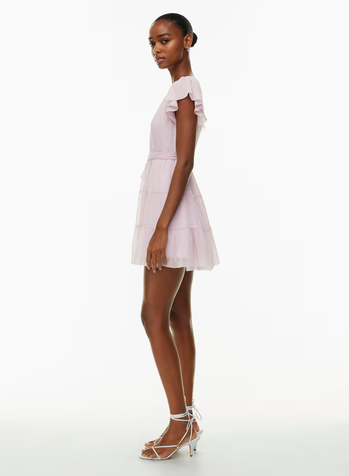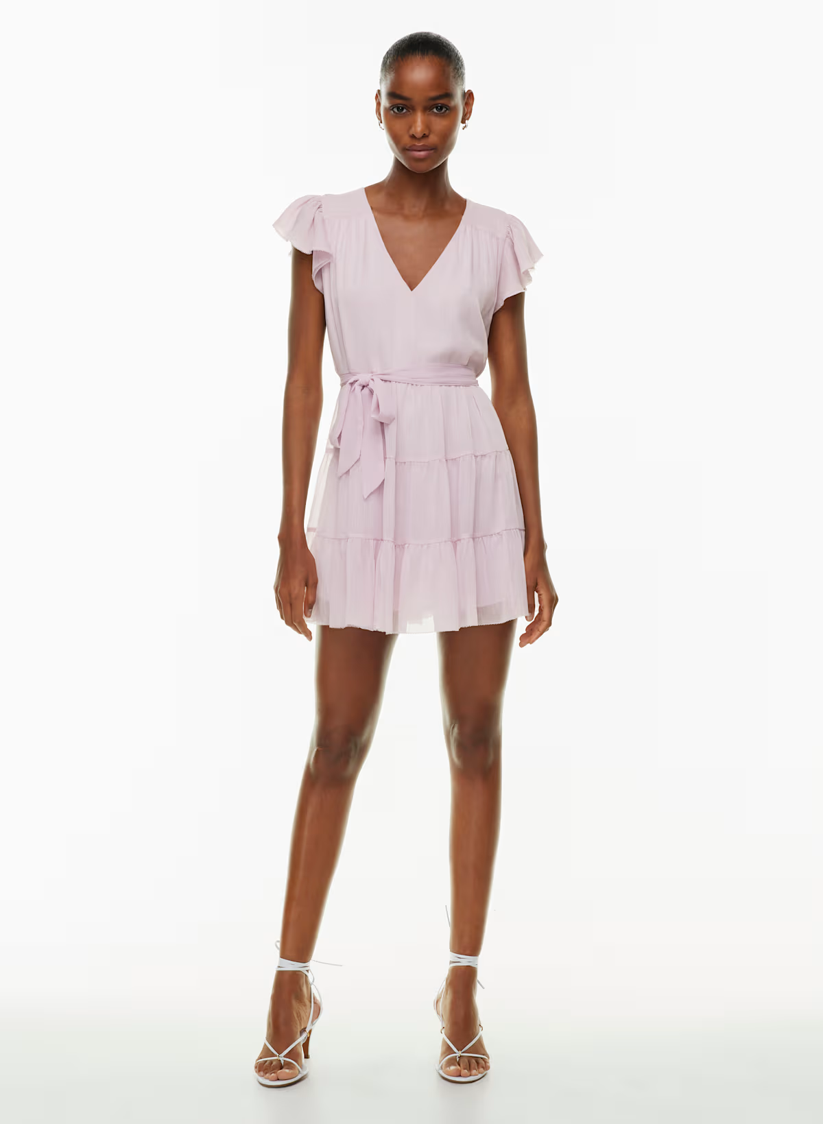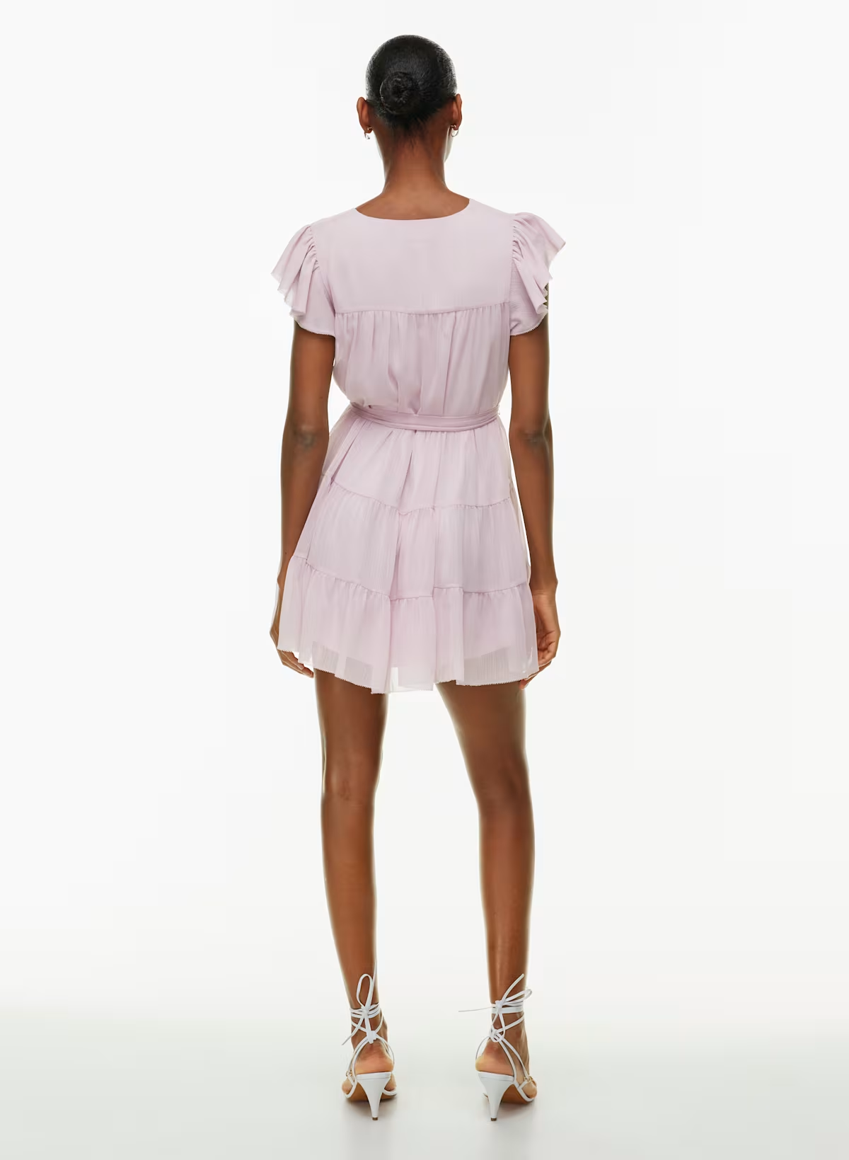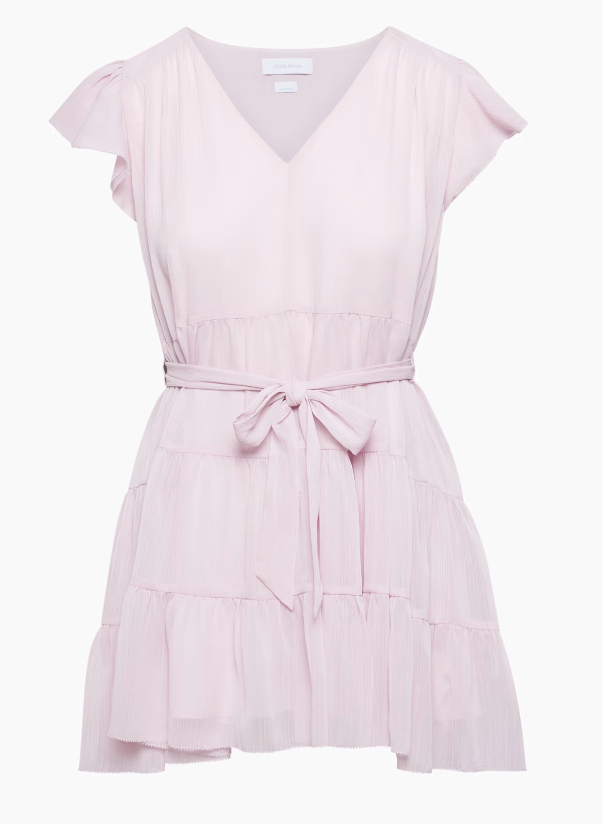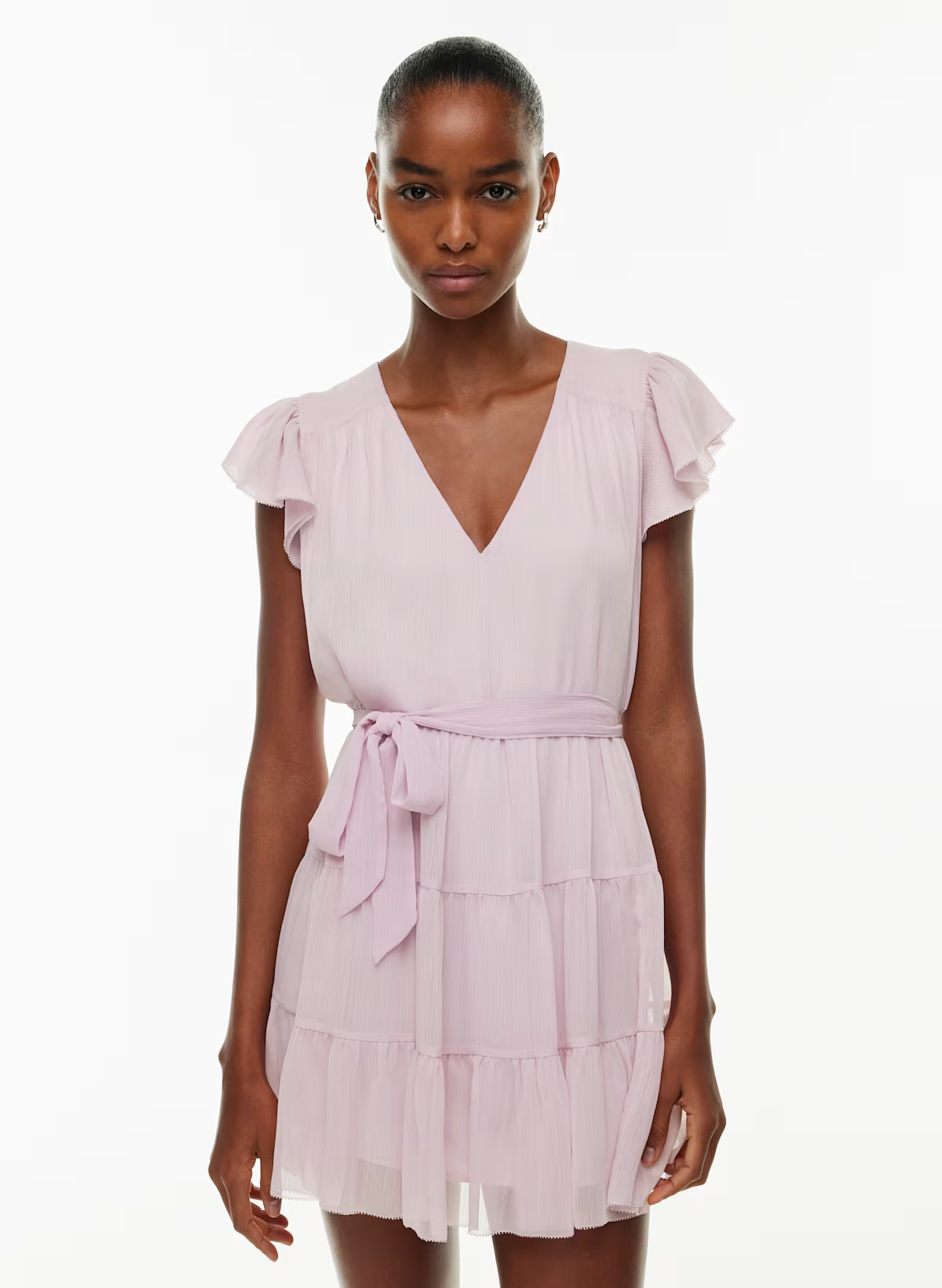 Details: This is a tiered flutter-sleeve mini dress with a removable belt. It's cut from drapey semi-sheer fabric with an airy feel and slight crinkle texture.