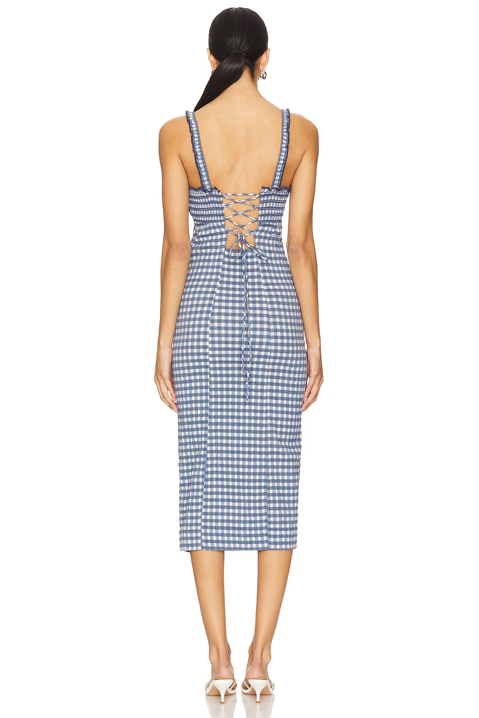- Smocked back with lace-up closure