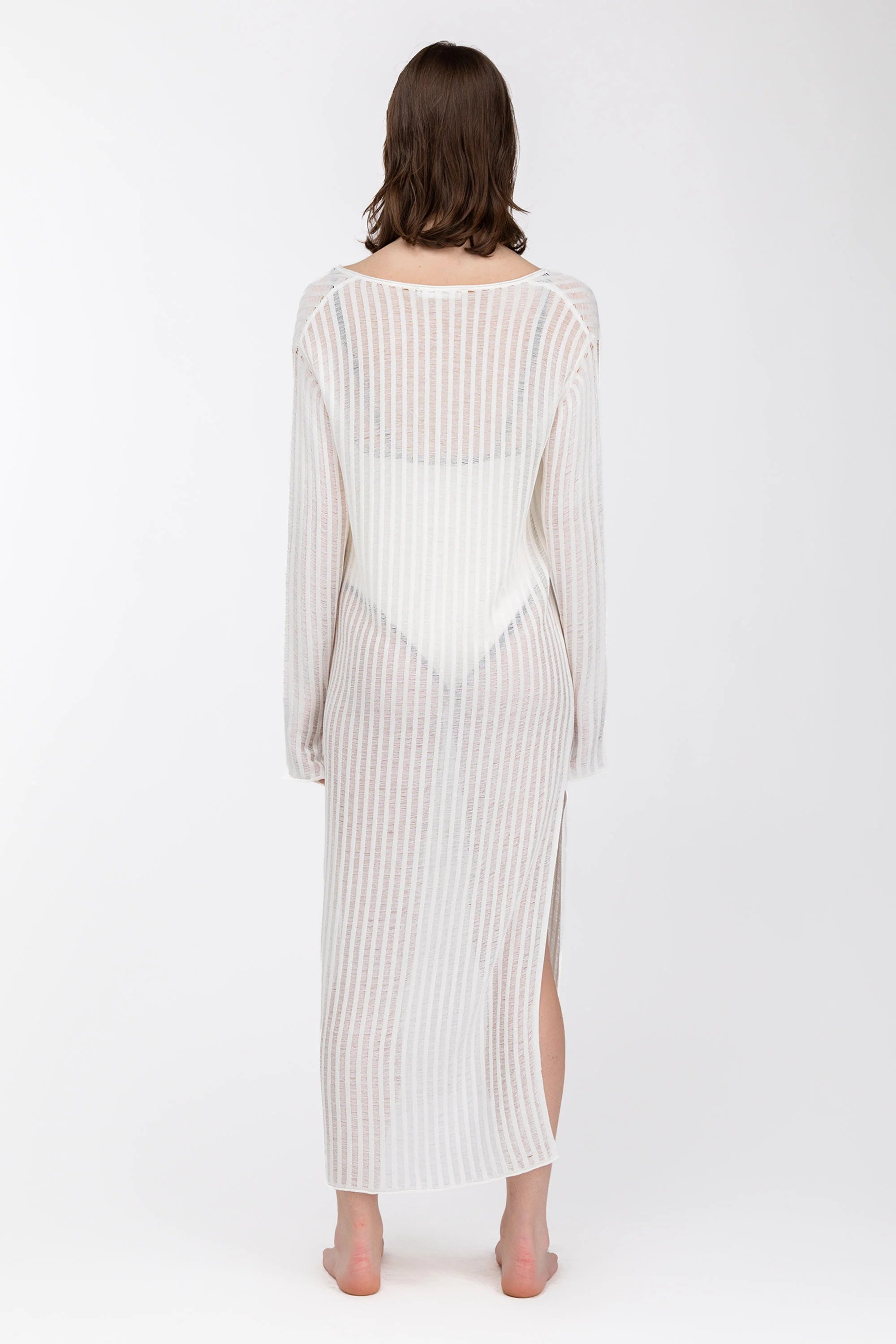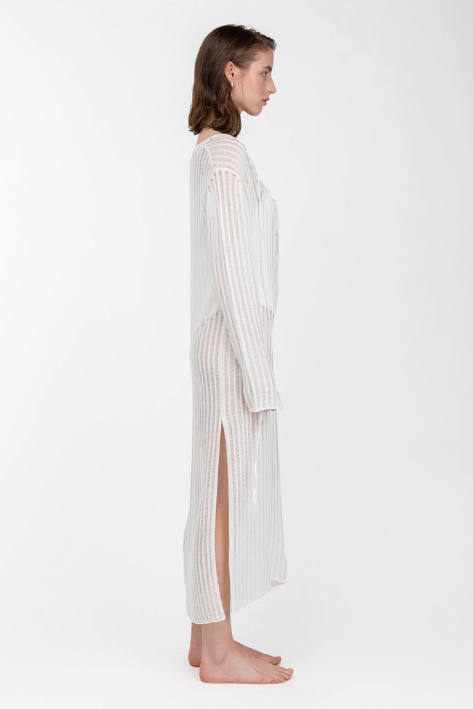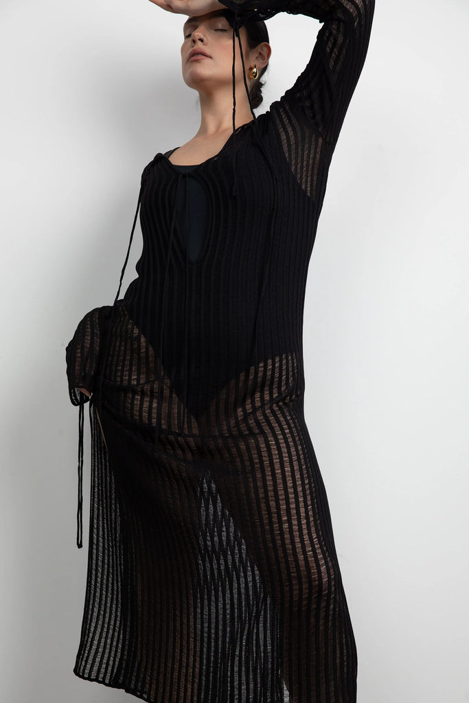 Details: This reversible crochet knit maxi dress coverup is made in a relaxed fit. It's detailed with a deep V-neck with ties and split sides. A versatile piece you can wear with ties at the front or at the back. Take yours on your next vacation.