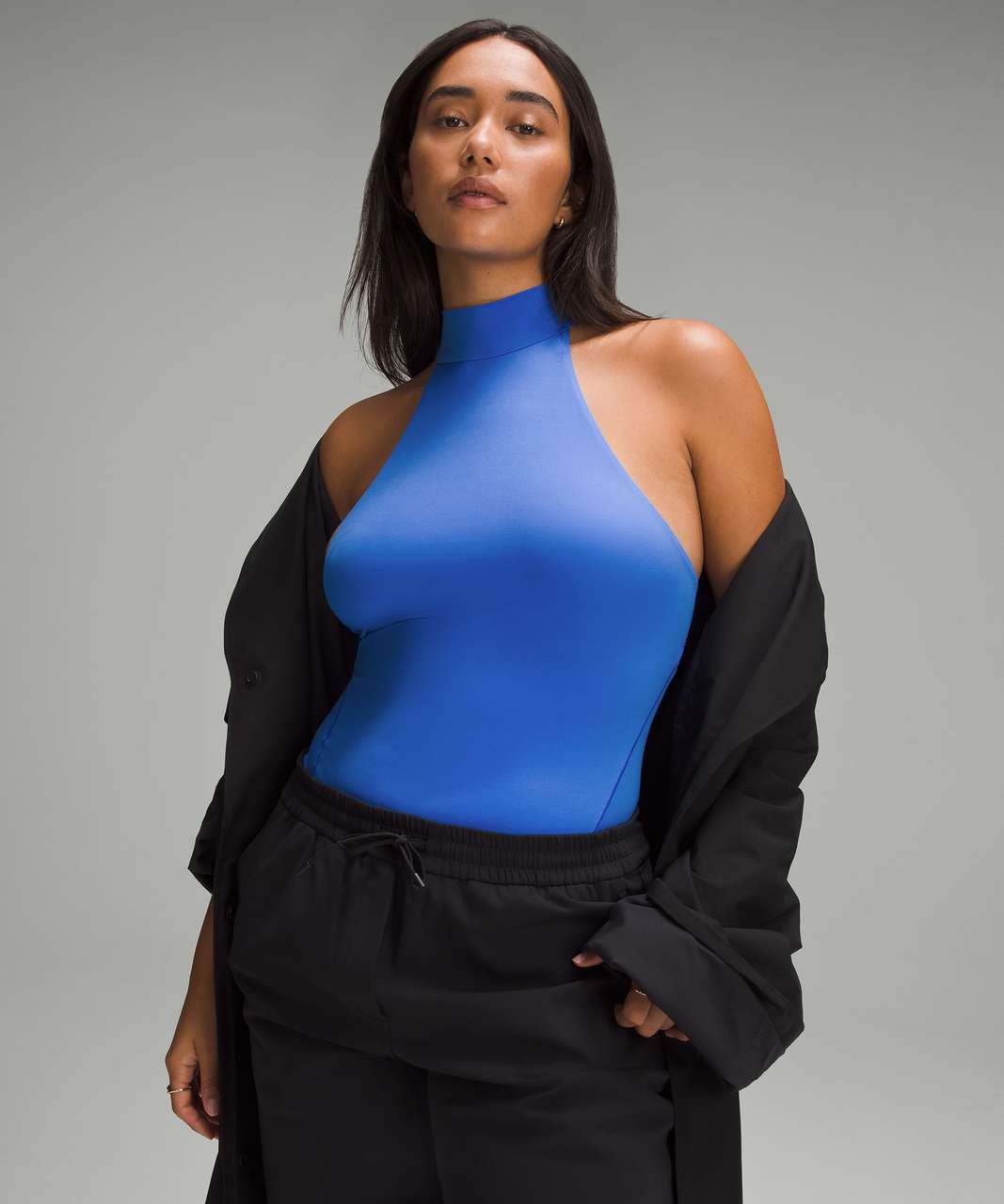 Details: Where elegance meets everyday. This mock-neck bodysuit, made from a peach-fuzz soft version of our Nulu fabric, elevates your look in complete comfort.