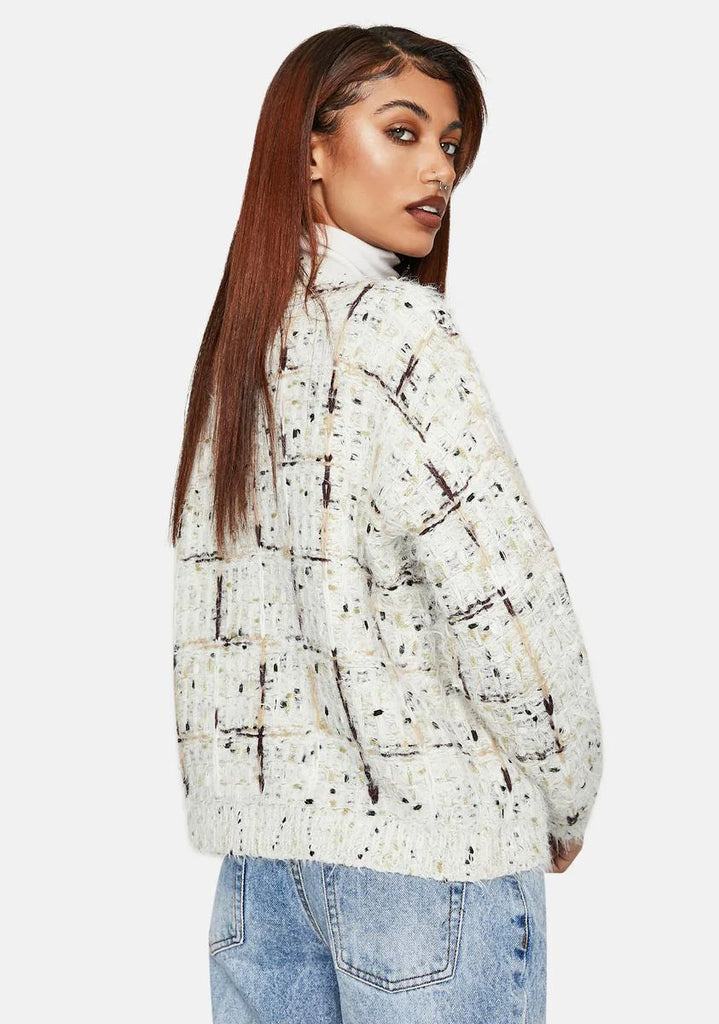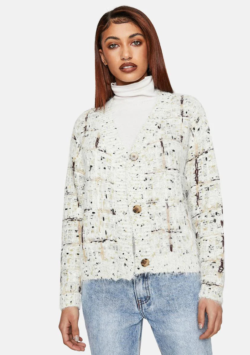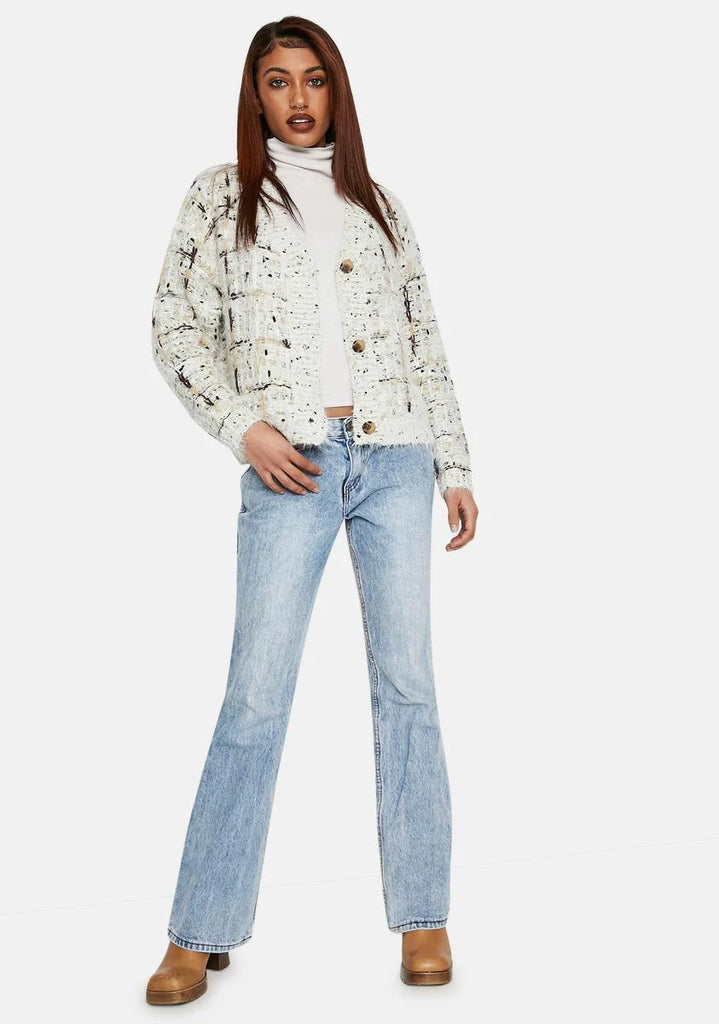 Details: The Kellie cardigan features a knit construction with multi-color yarns, ribbed trim, and front button closures.