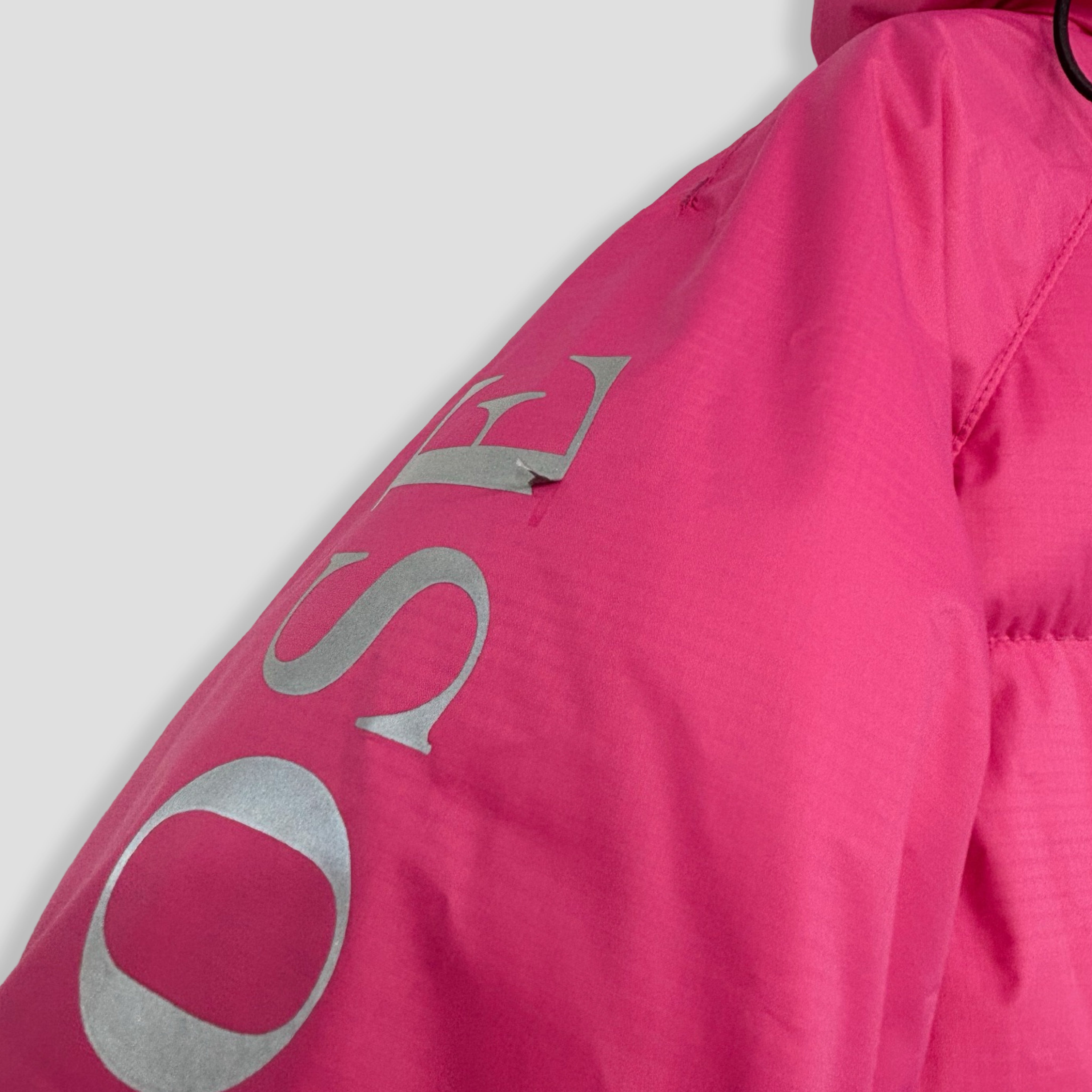 - Discolouration on back, sleeve cuffs and behind hood