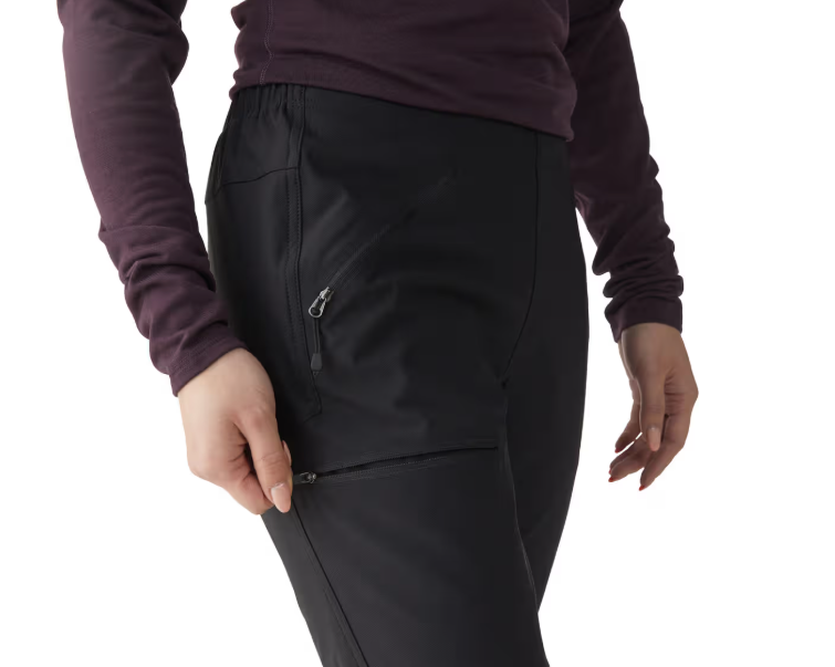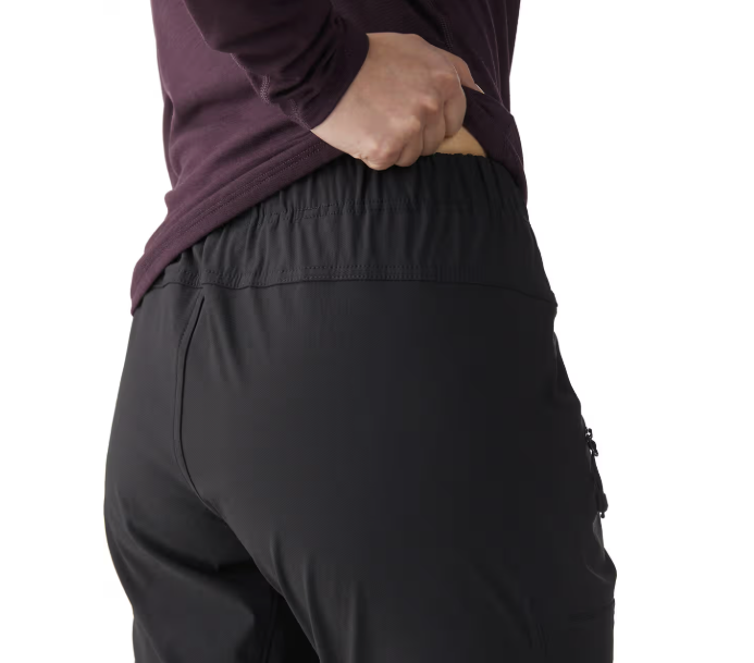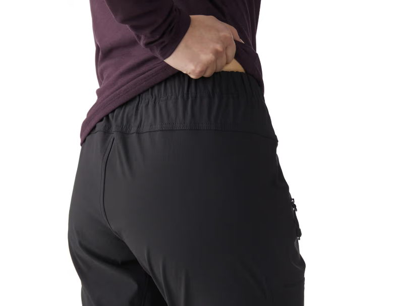 - Flat waistband with an internal drawcord is comfortable under a backpack