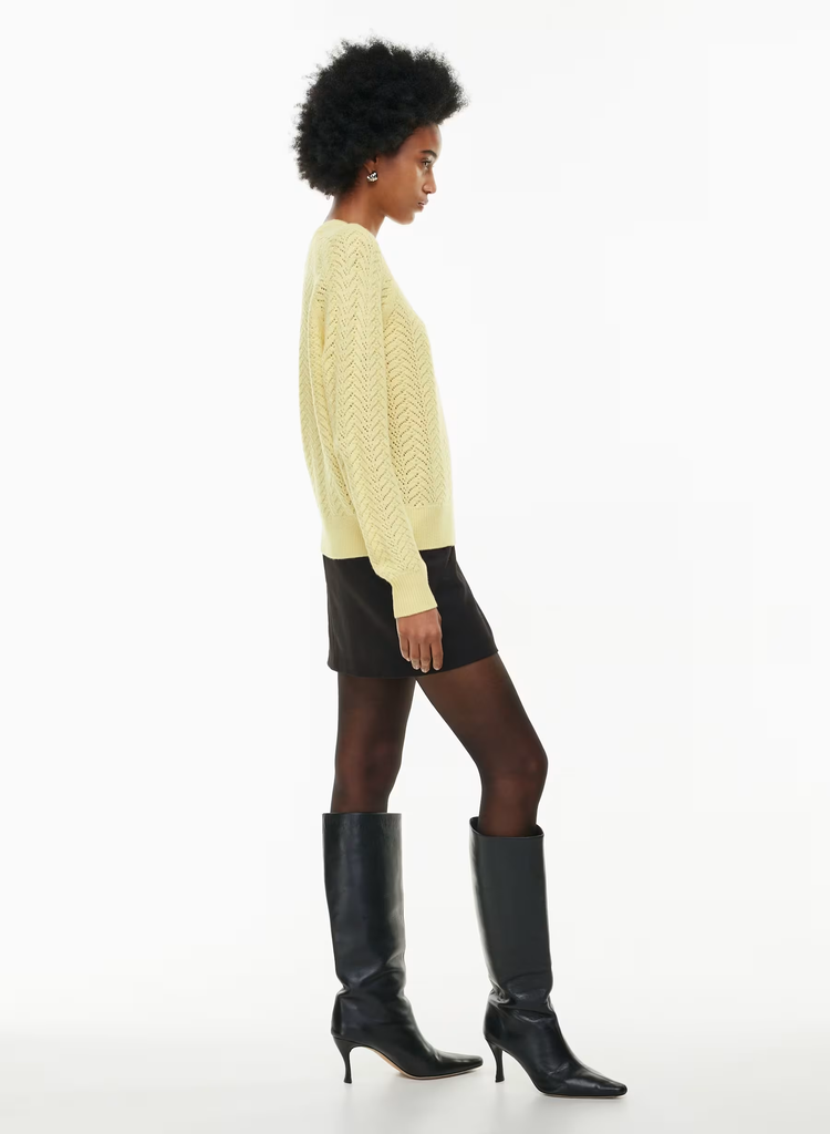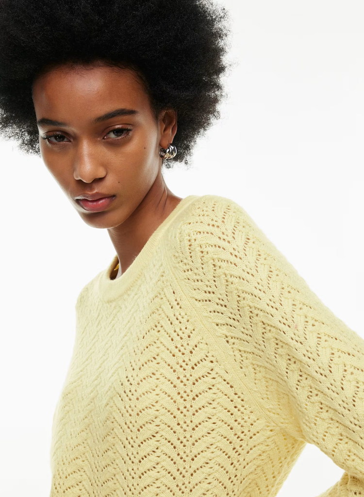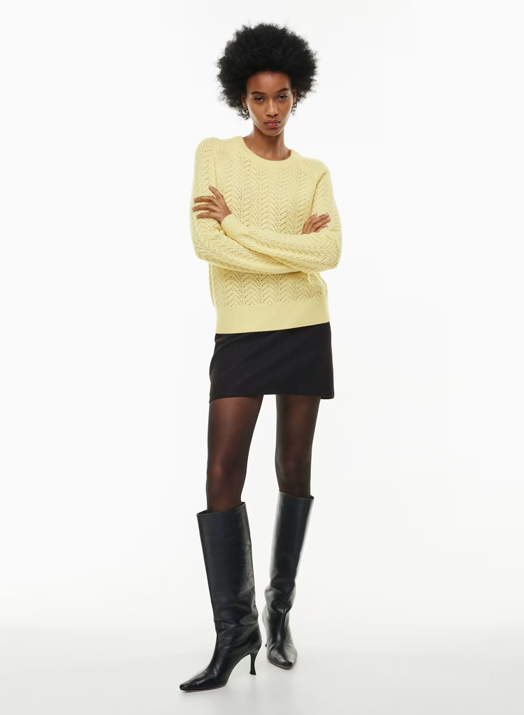 Details: This is a crewneck sweater with a relaxed silhouette, raglan sleeves and fully fashioned construction. It’s knit with Embrace Merino — extra-fine 100% merino wool yarn coveted for its natural warmth and super soft feel