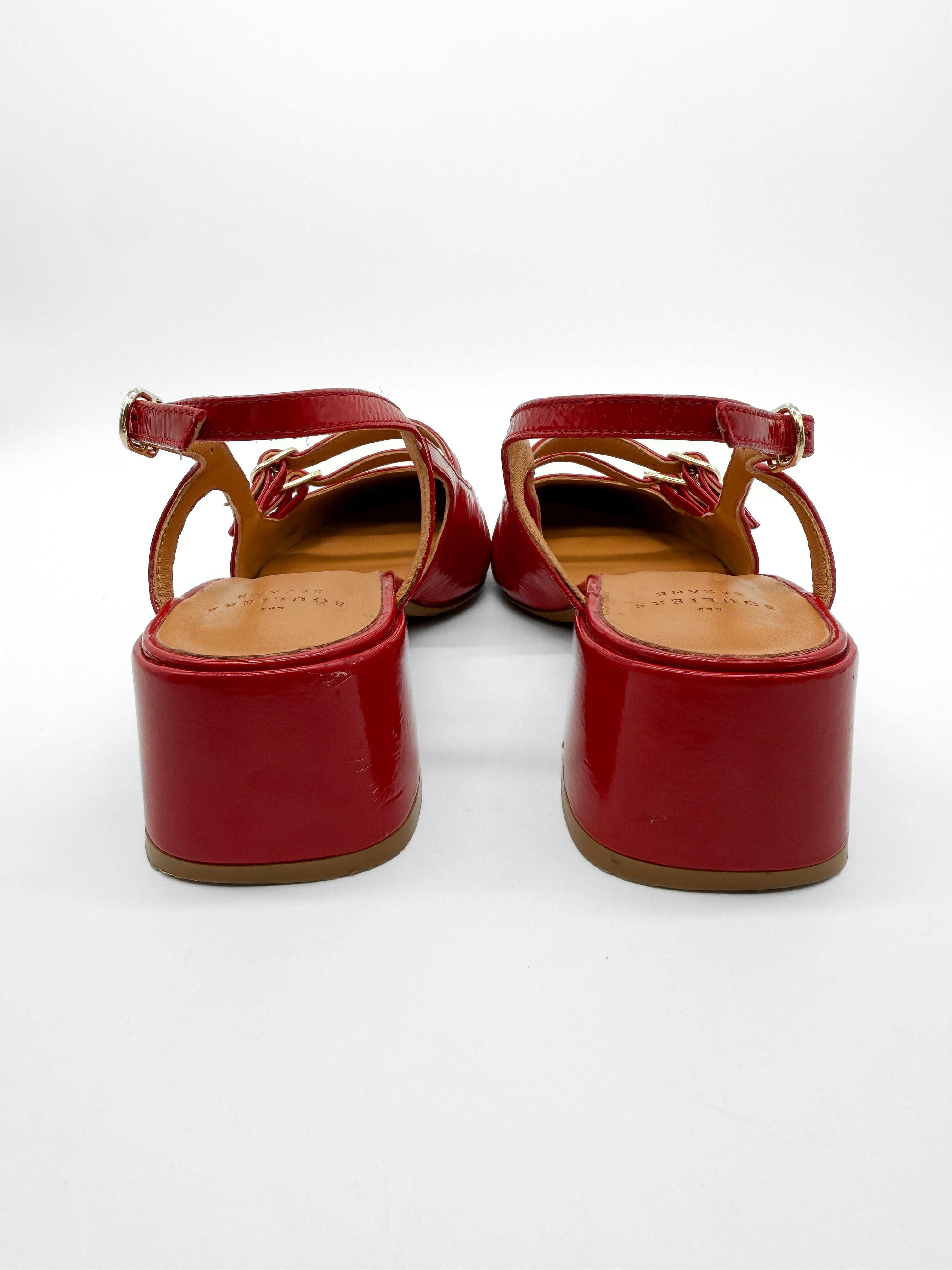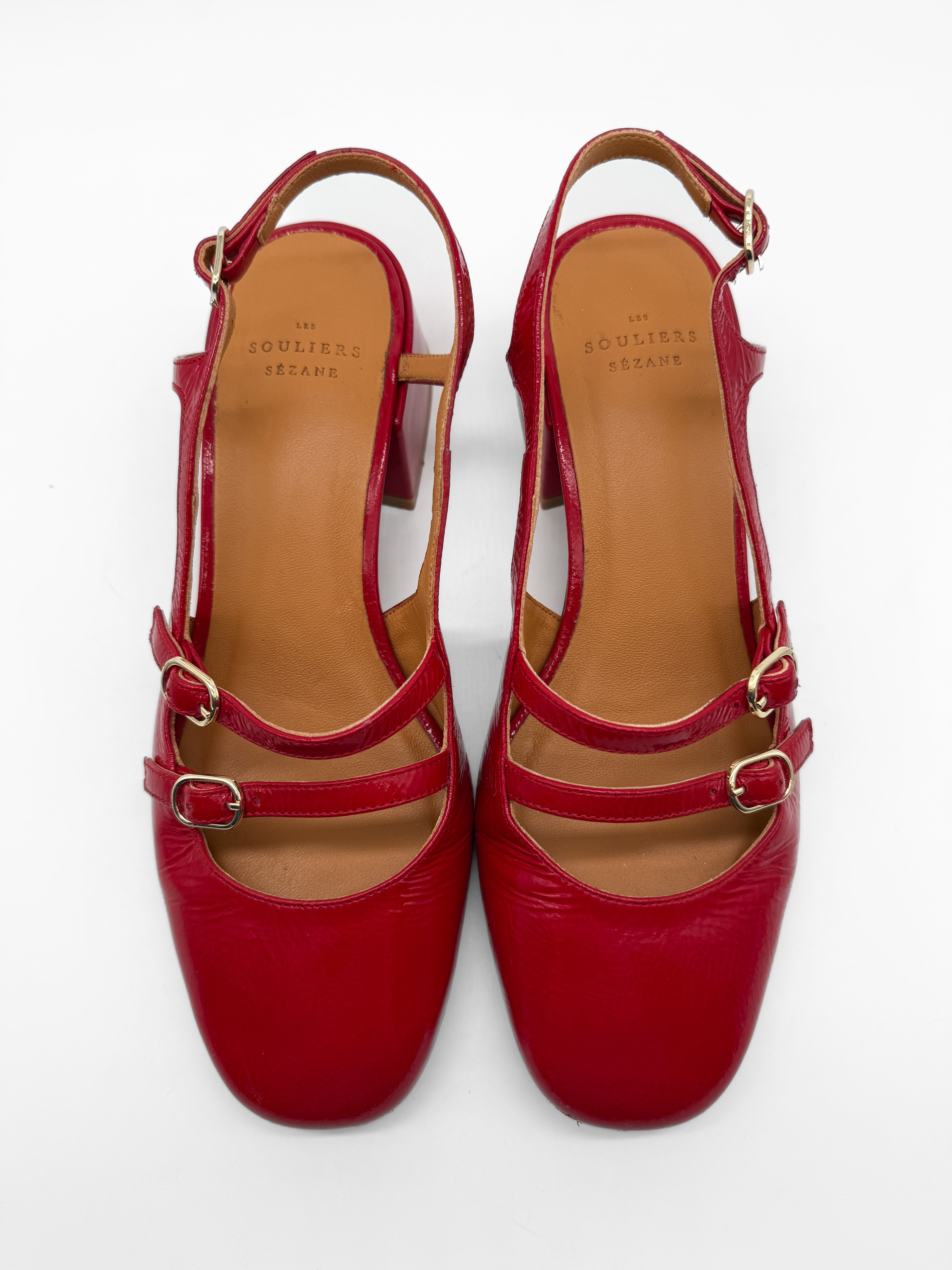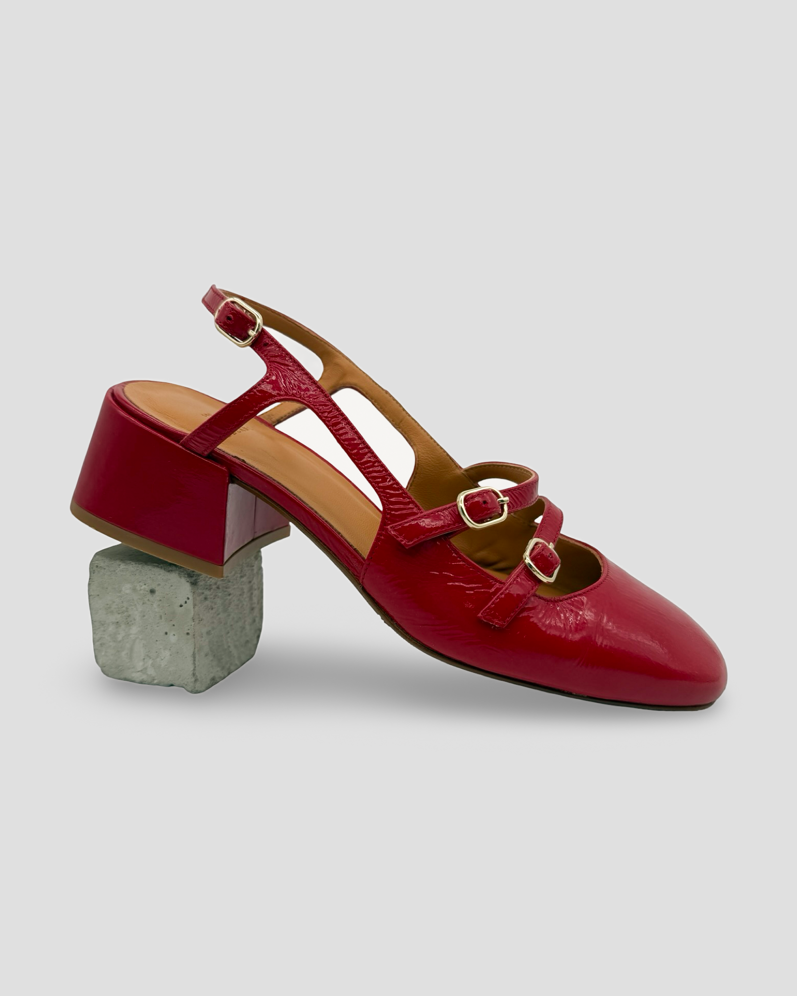 - Patent leather covered heel