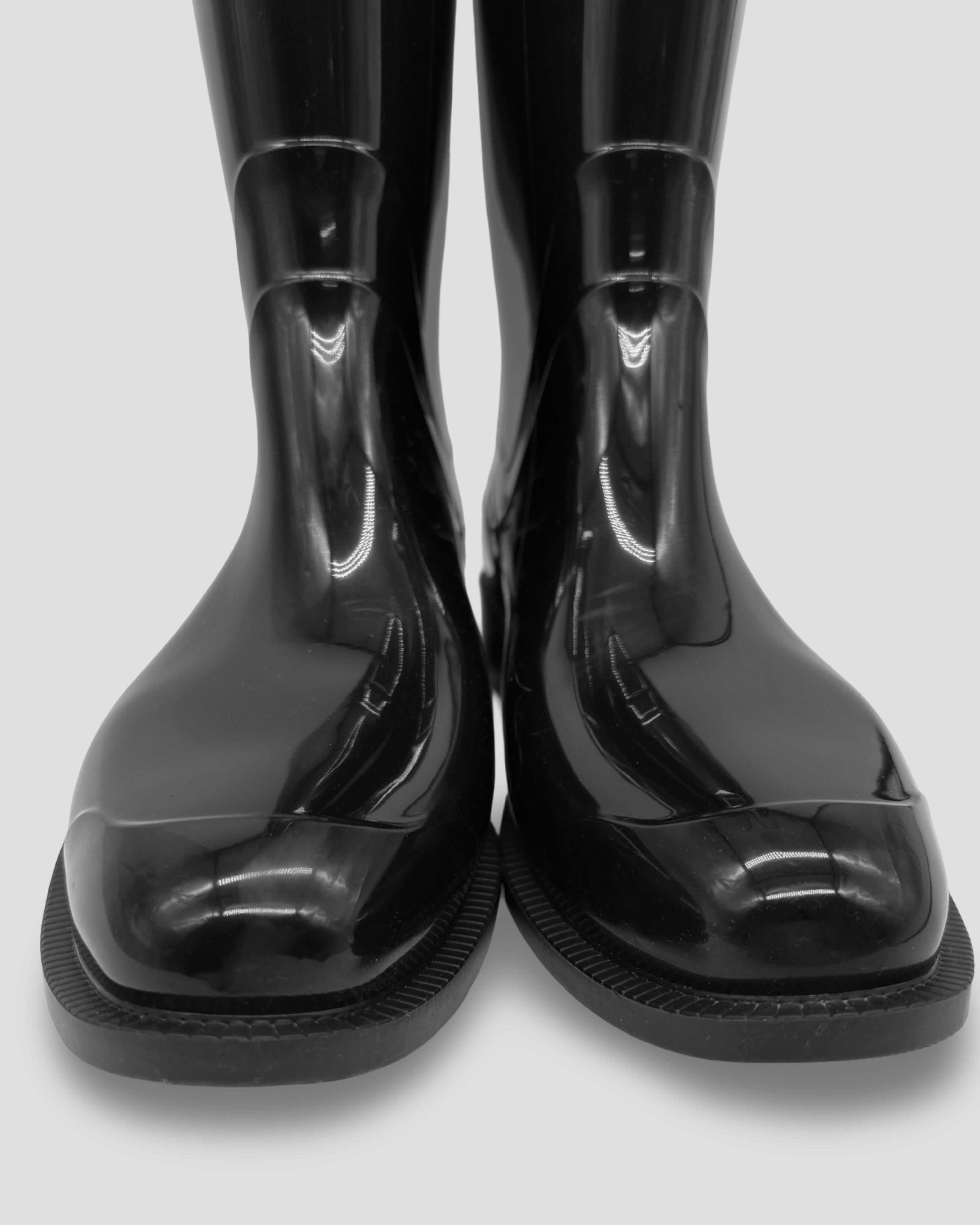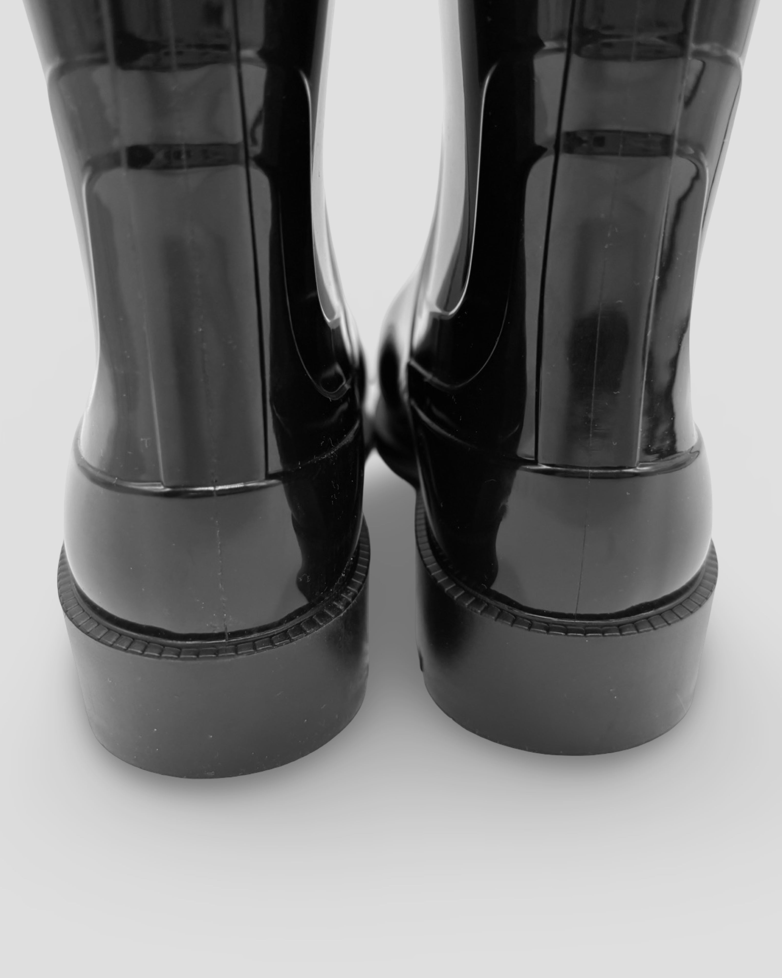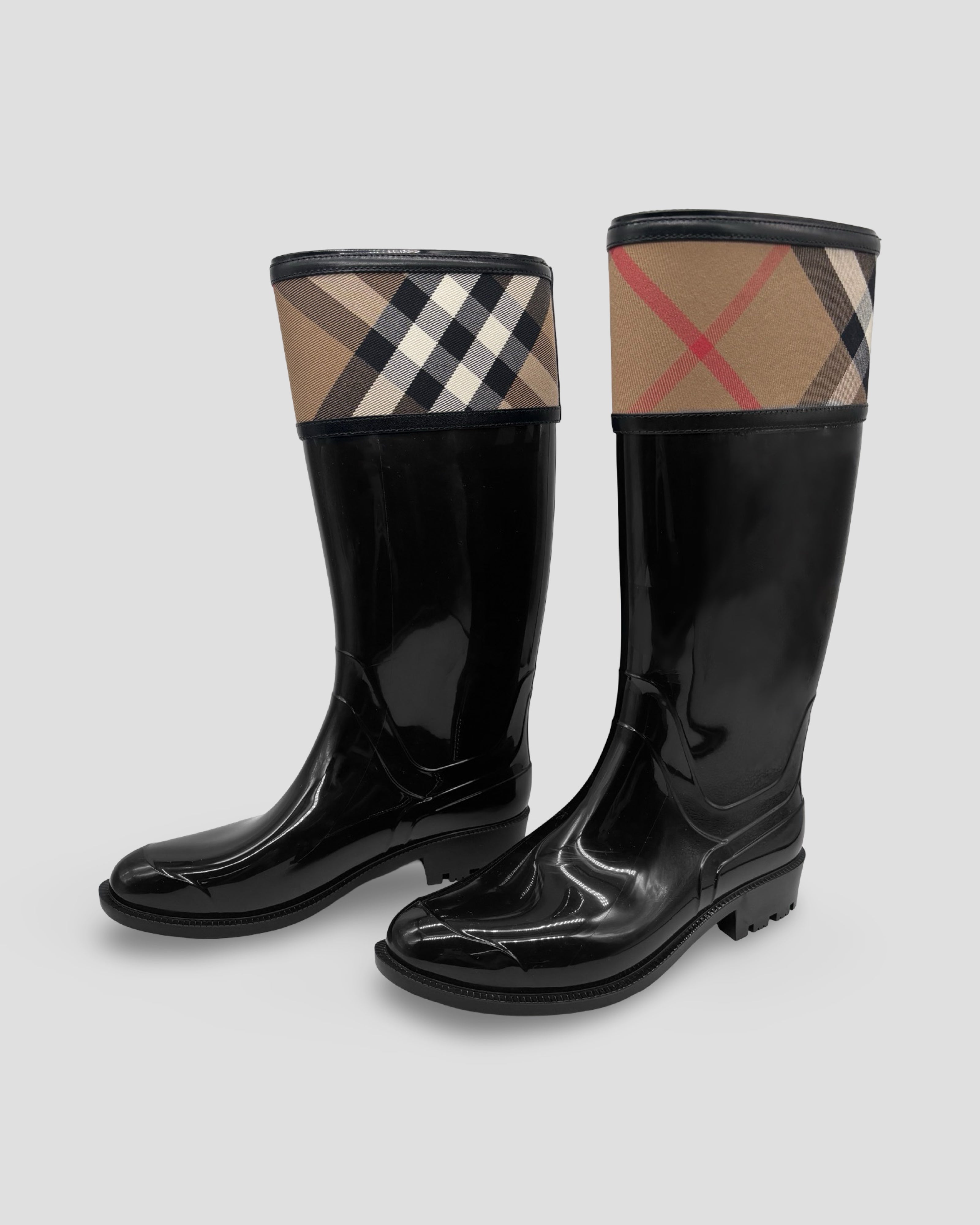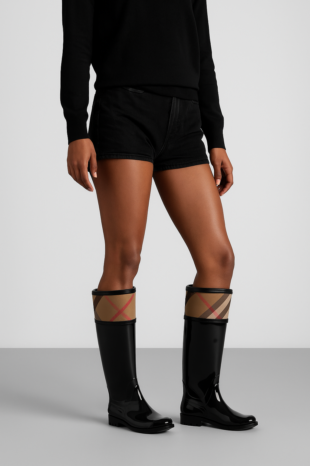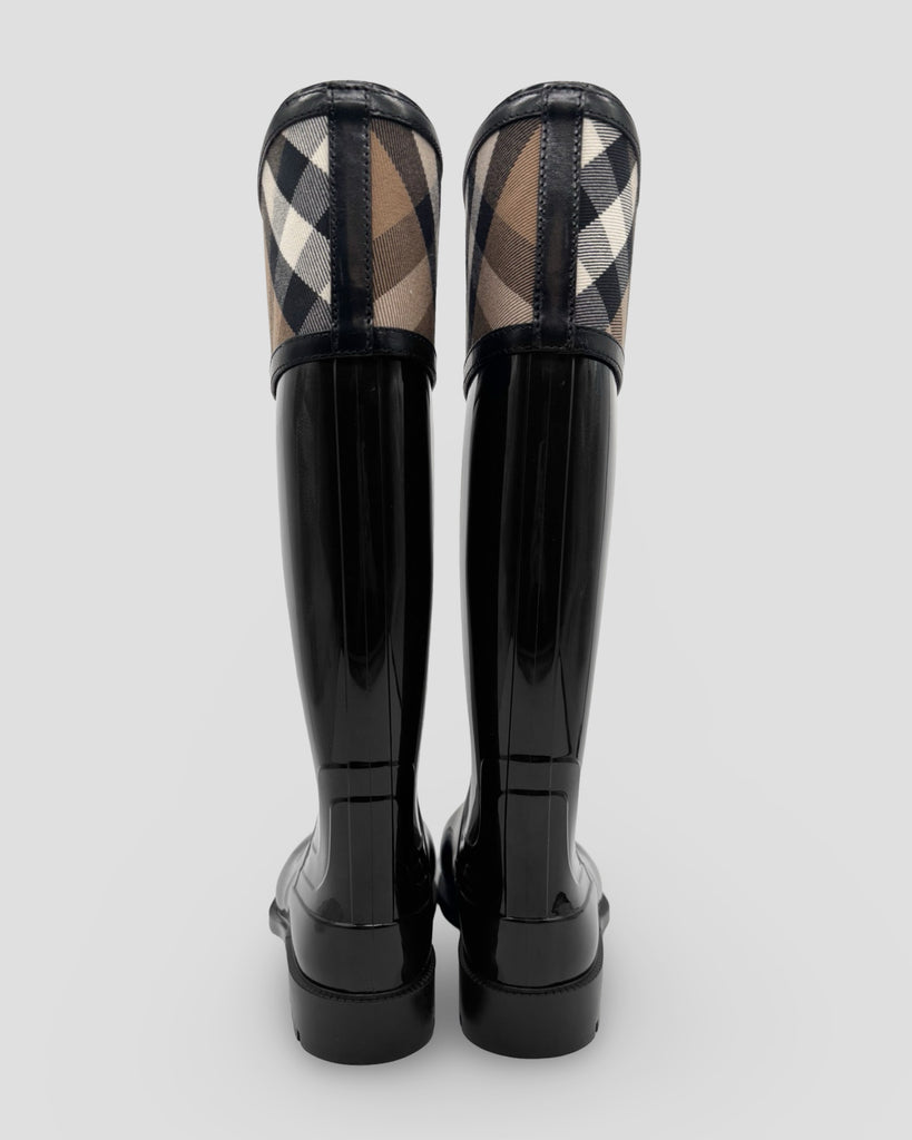 - Mid calf rain boots made of rubber and plaid printed cotton