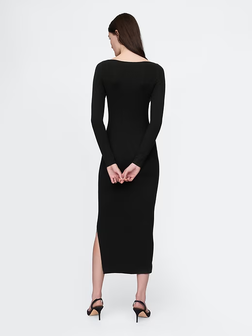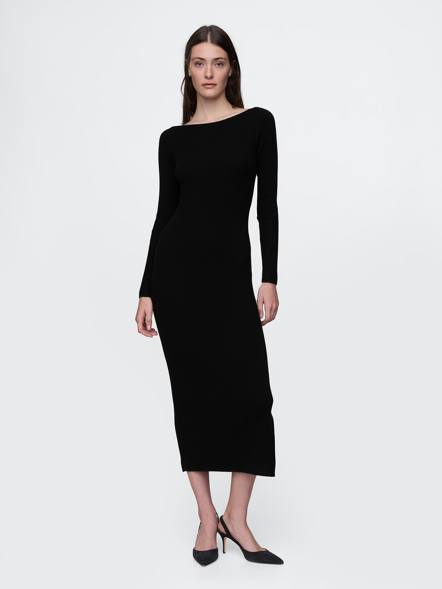 (L) NWT Boatneck Rib Sweater Midi Dress