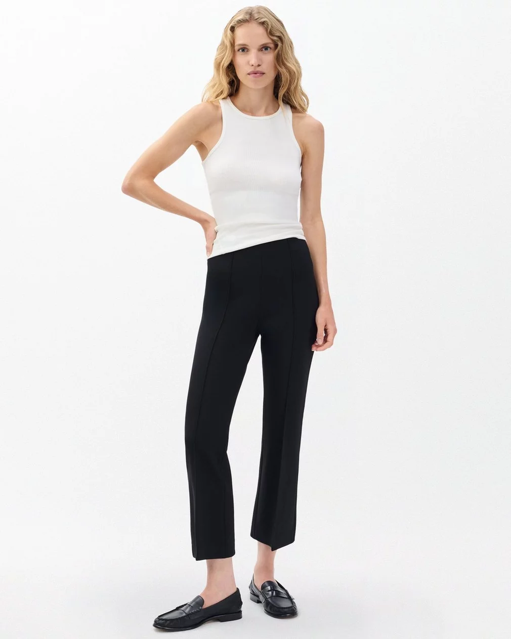Details: A new take on classic tailoring. These streamlined kick flare pants are cut entirely from ponte fabric, a stretch knit which balances structure and ease for around-the-clock polish at work and beyond. An elastic waistband with a hidden zipper ensures they're as comfortable as they are sophisticated. And an added bonus? The trousers are machine washable, making them an easy choice for any occasion.